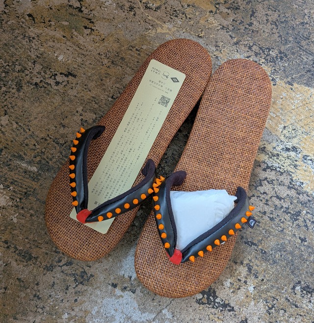SLADKY スラドキー / ビーサン型草履LADYS 厚底タイプ / ブラウン×オレンジスタッズ