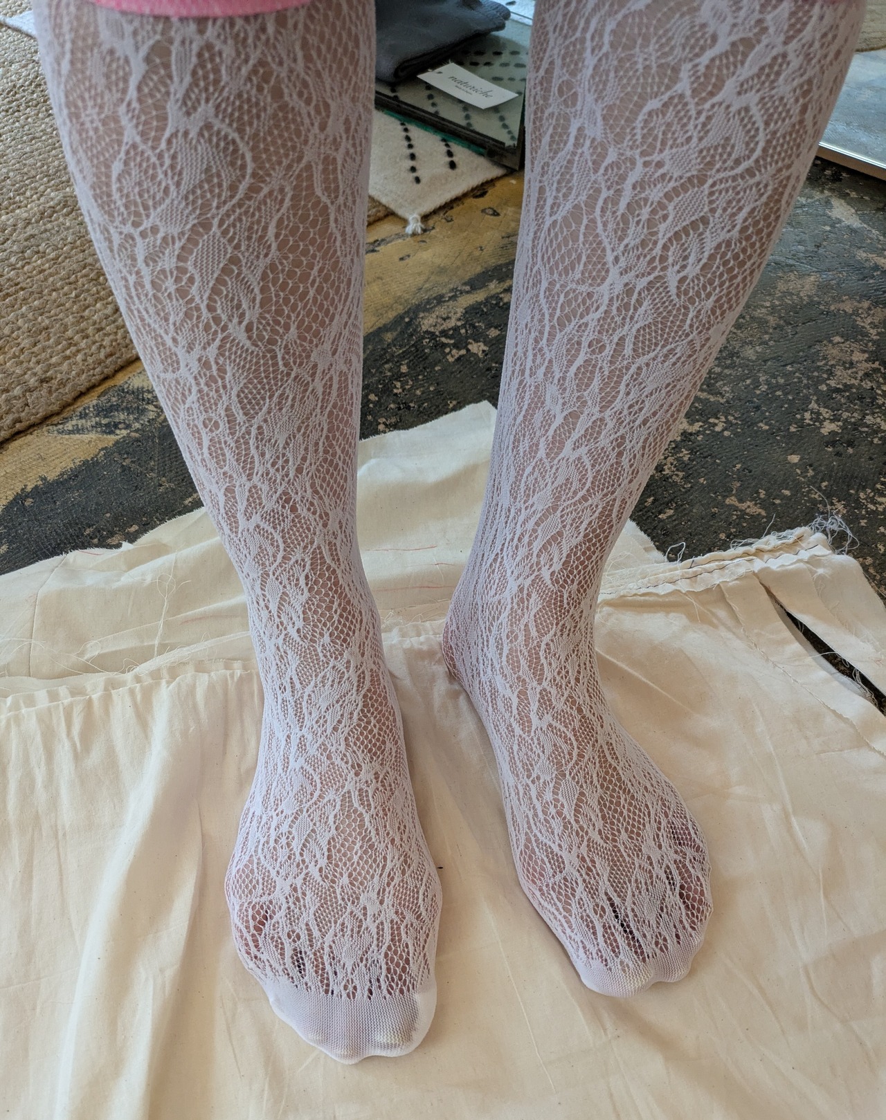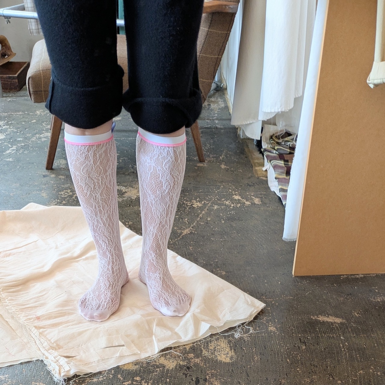 umeoriginal膝下丈レースソックス / ホワイト / ナイロン素材