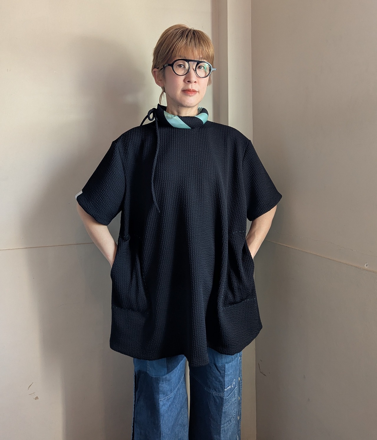 UV遮へい率90% waffle knit[ AKIRAFURUKAWA ]Candy Tee / Black