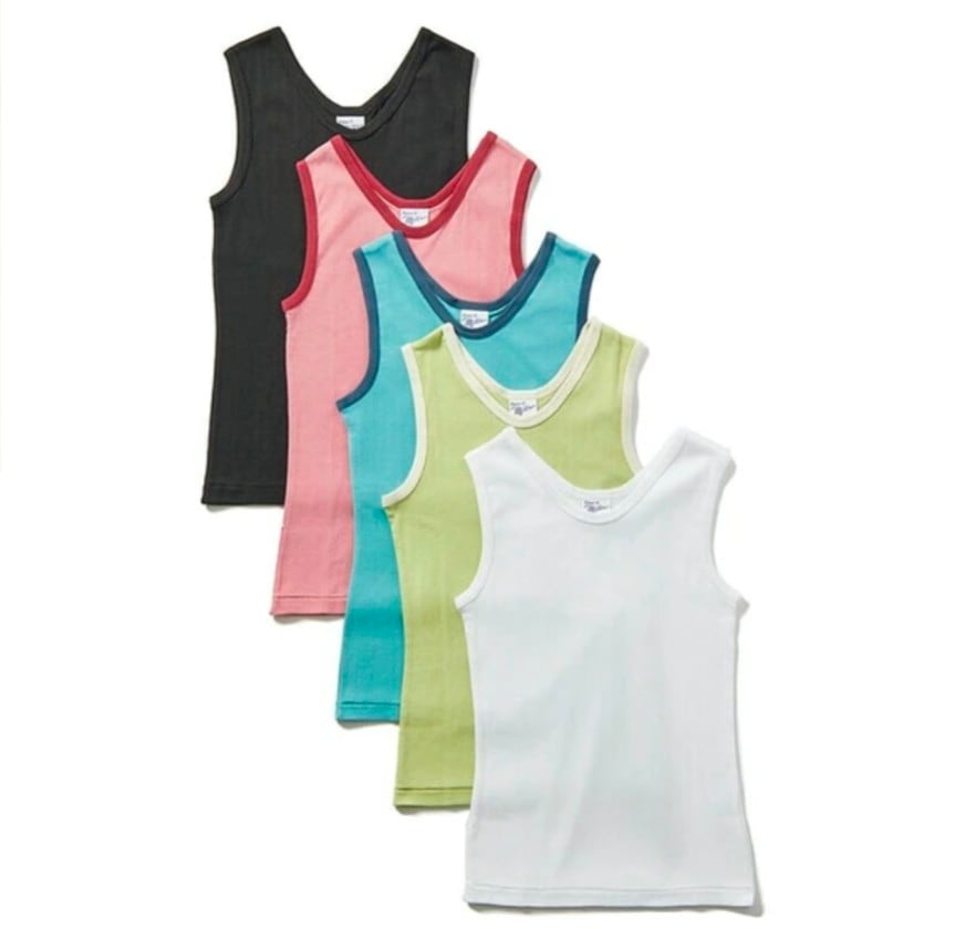 ゆるやかなVネックデザインが特長のタンクトップ。