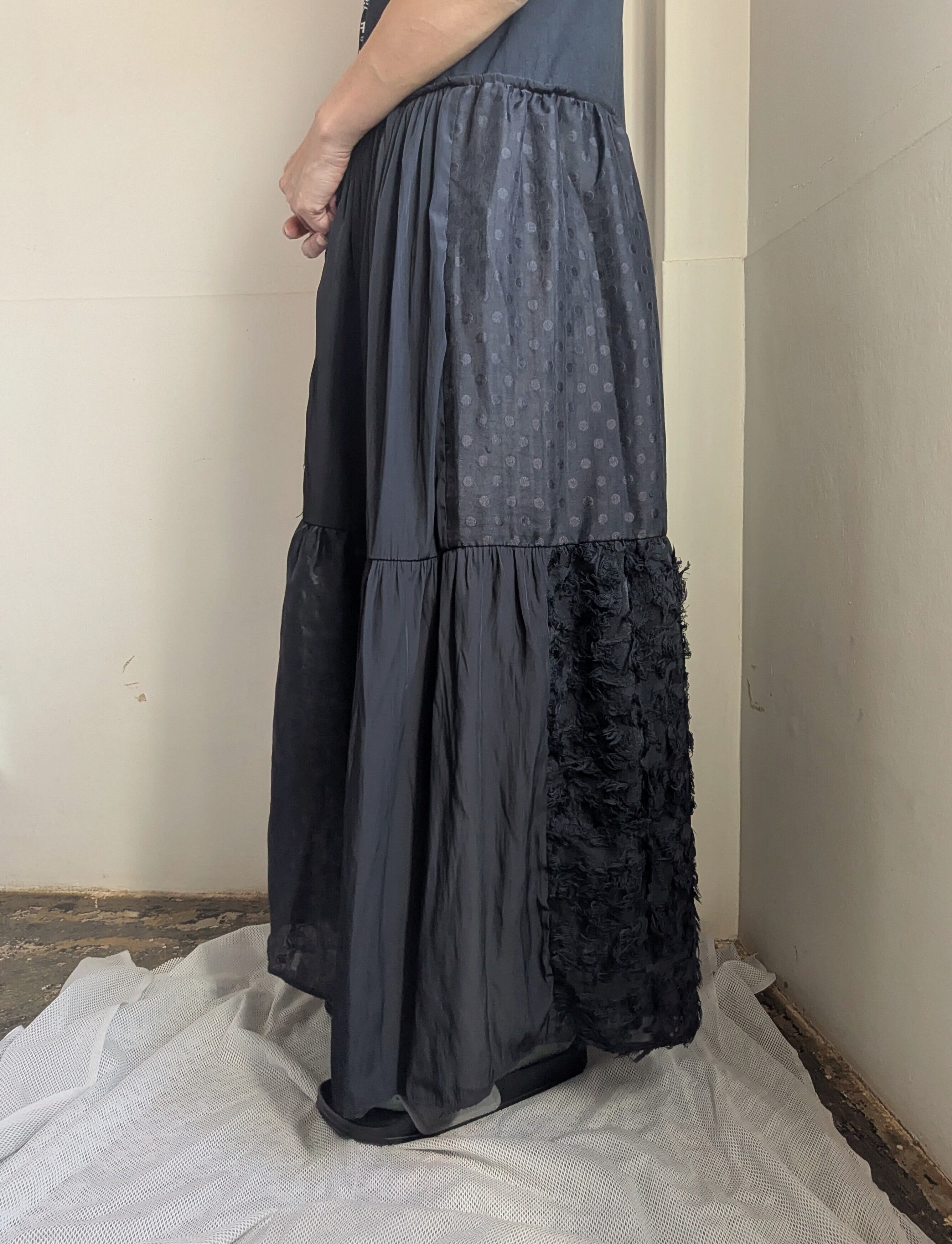 ◇ume別注◇[ REHERSALL ]リハーズオール / リメイク 一点物 / パッチティアードブラウジングワンピース