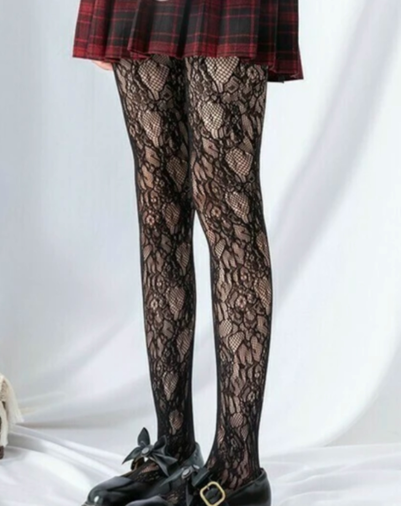 ナイロン素材のレースストッキング。
