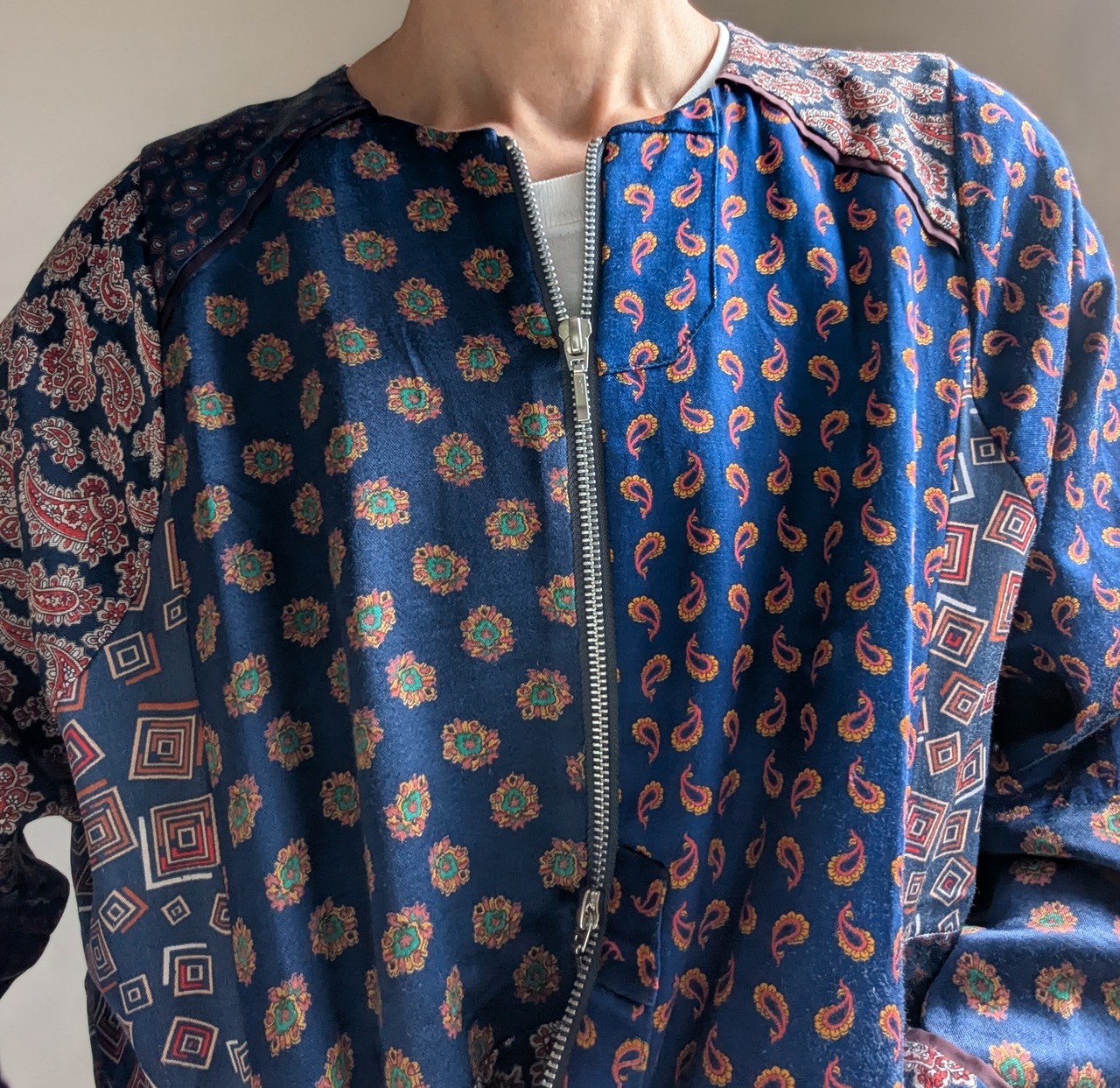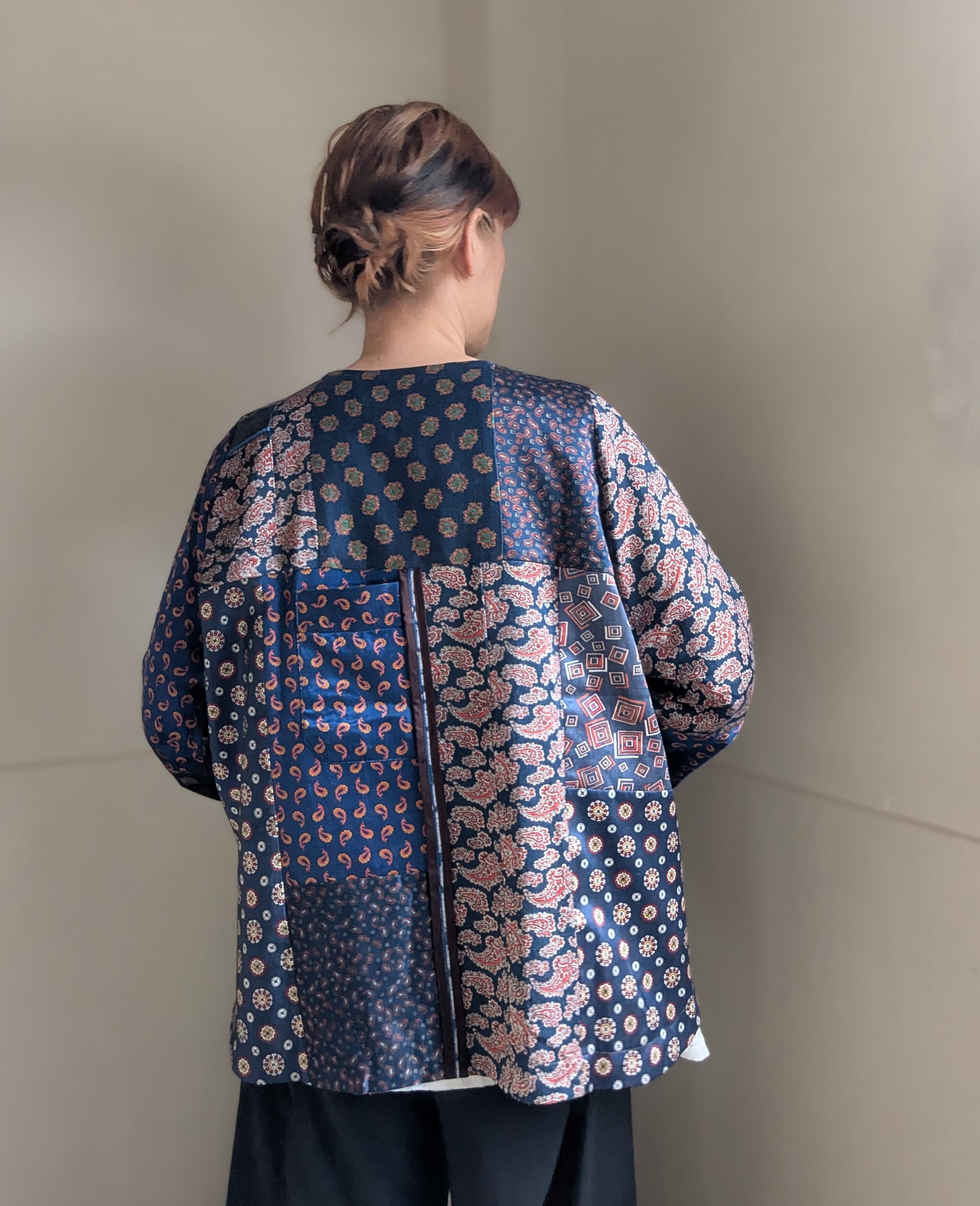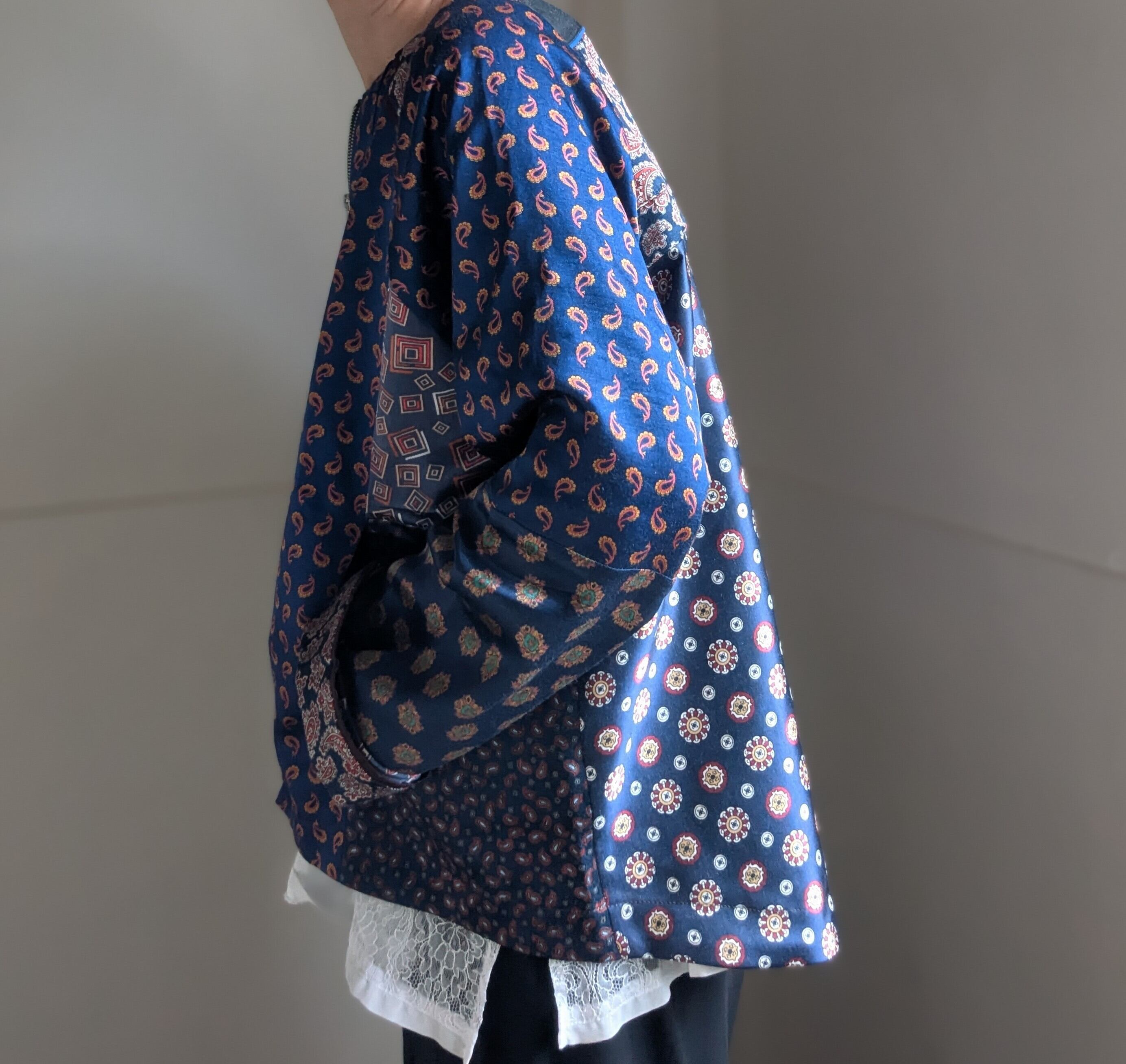 古着のパジャマ生地を使用し、パッチワークした
