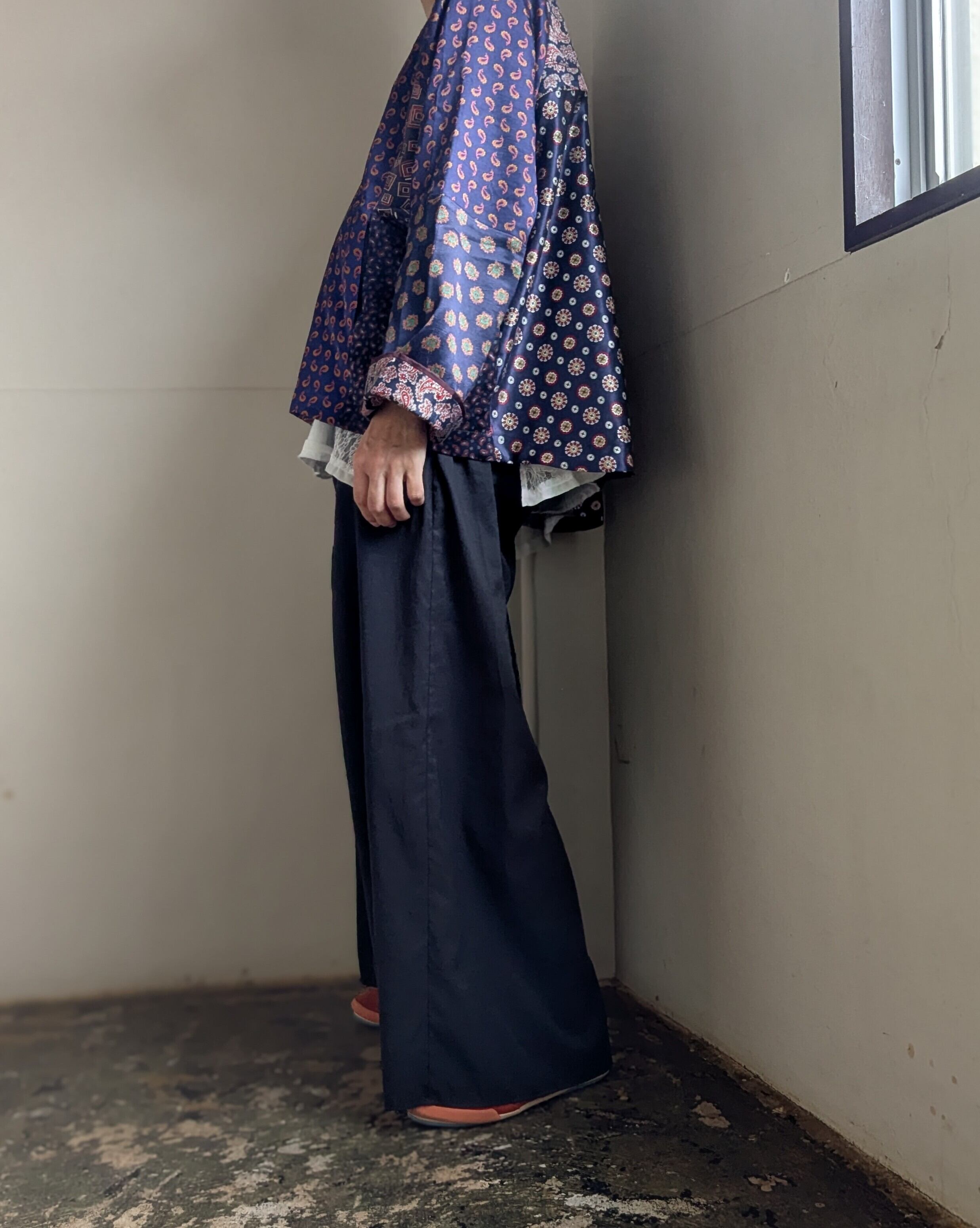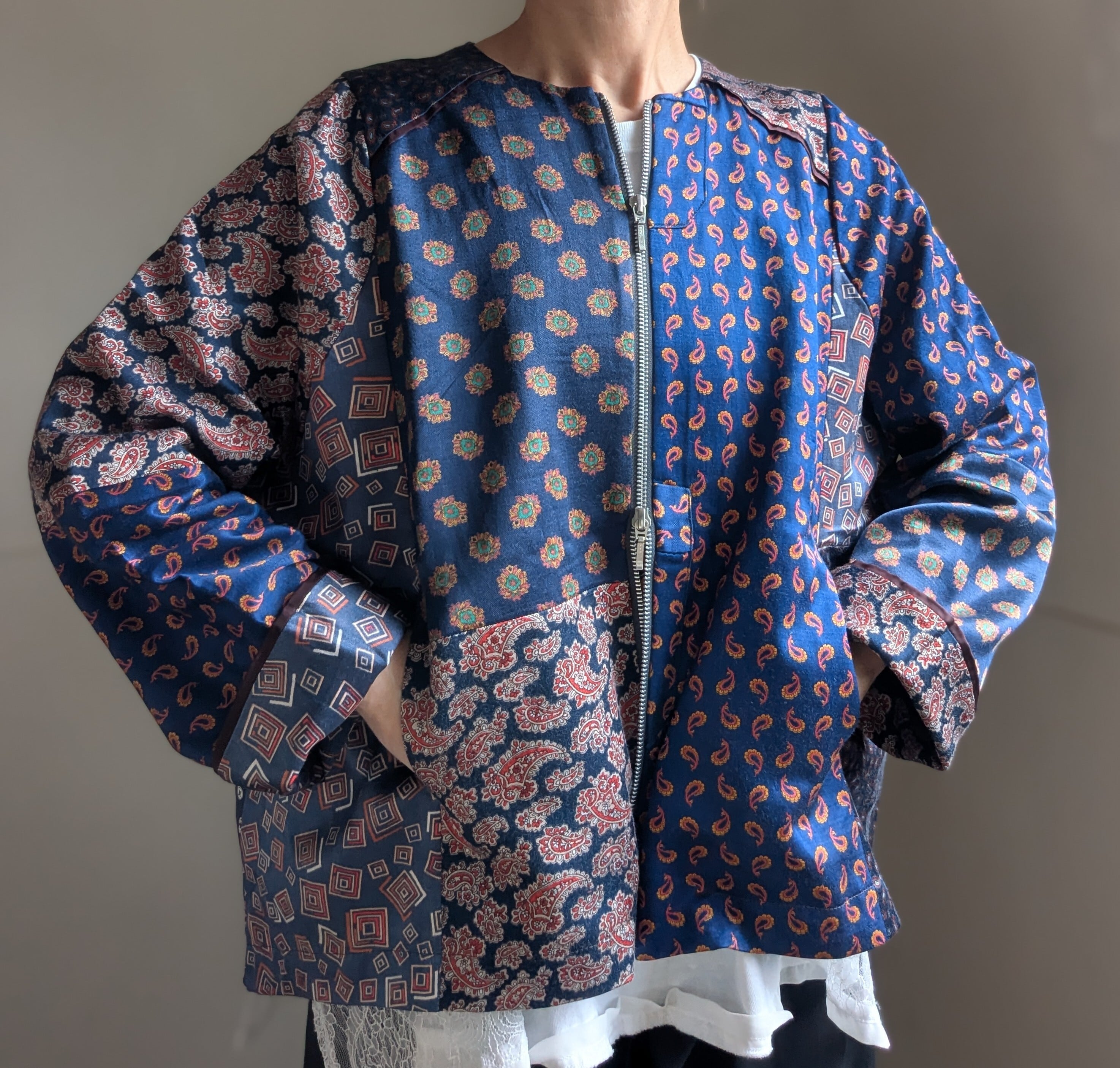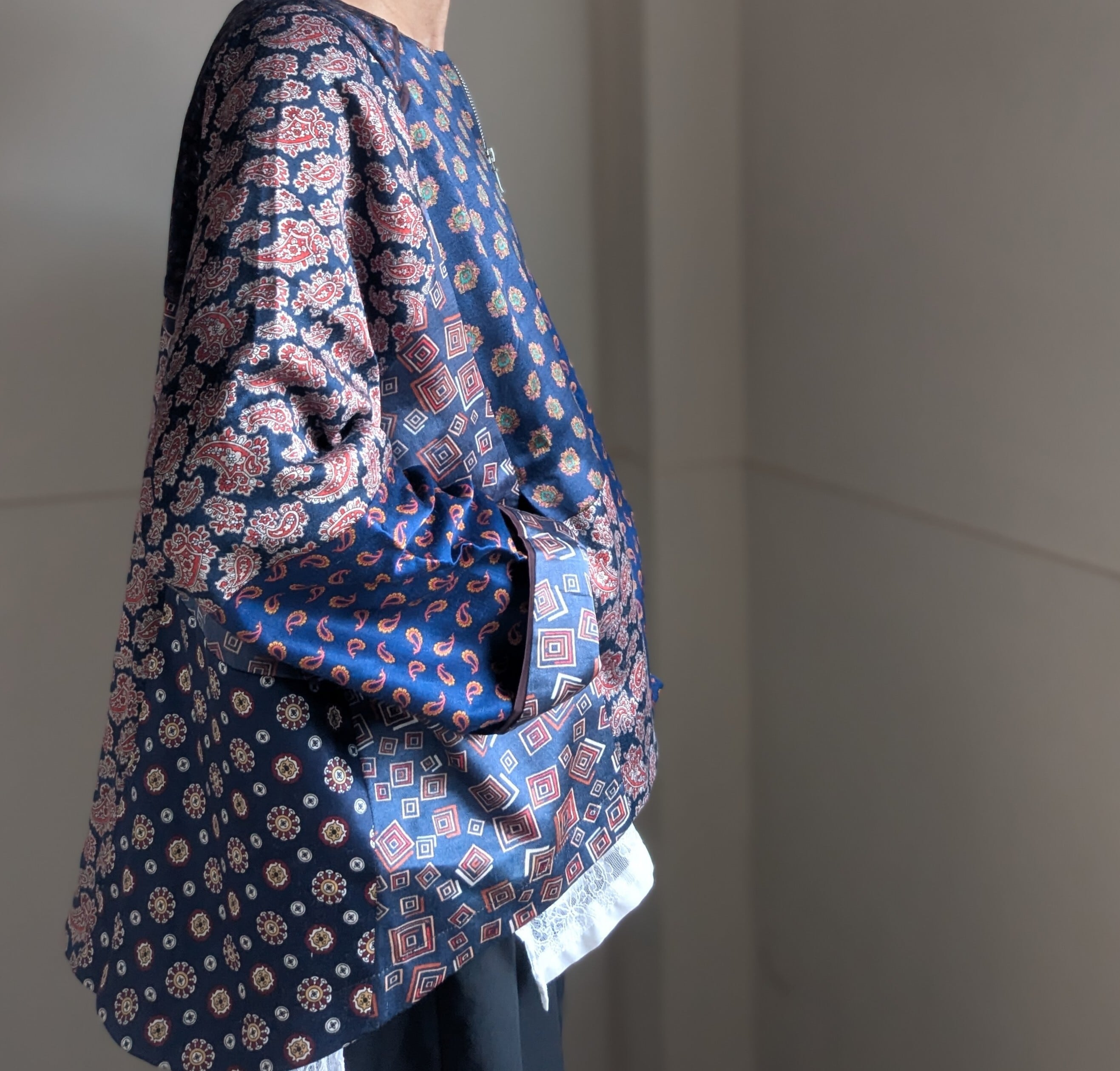 古着のパジャマ生地を使用し、パッチワークした