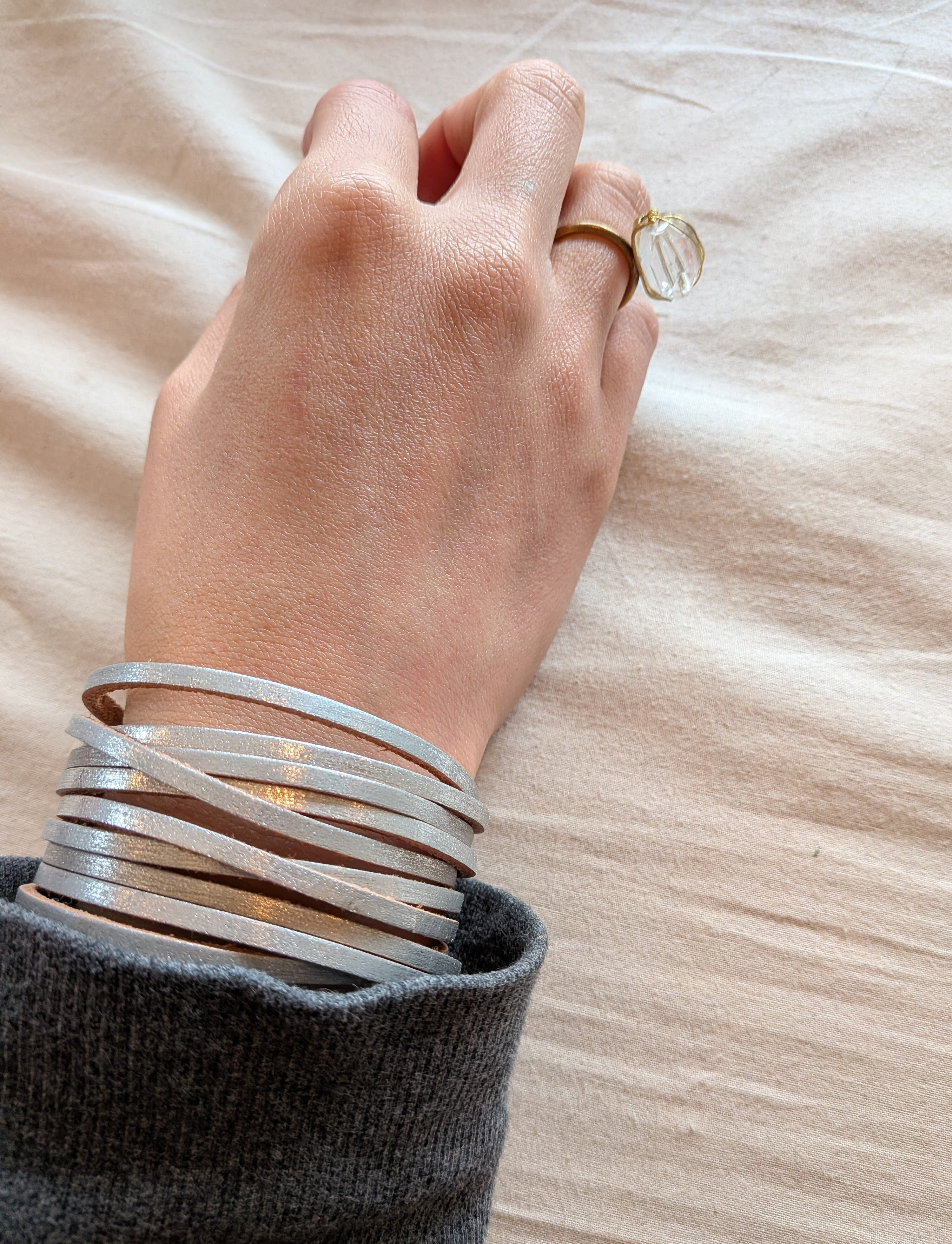 革なのに金属の何連かのブレスレットのように