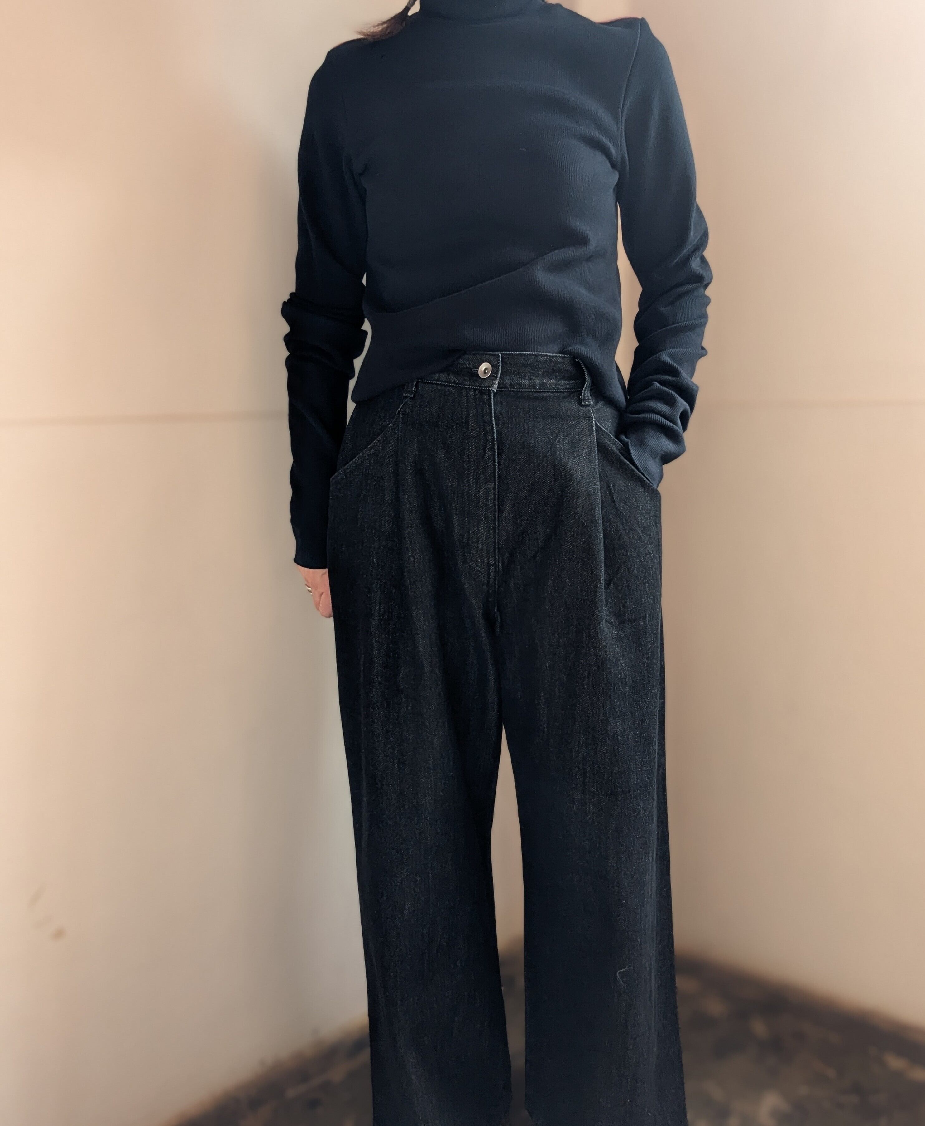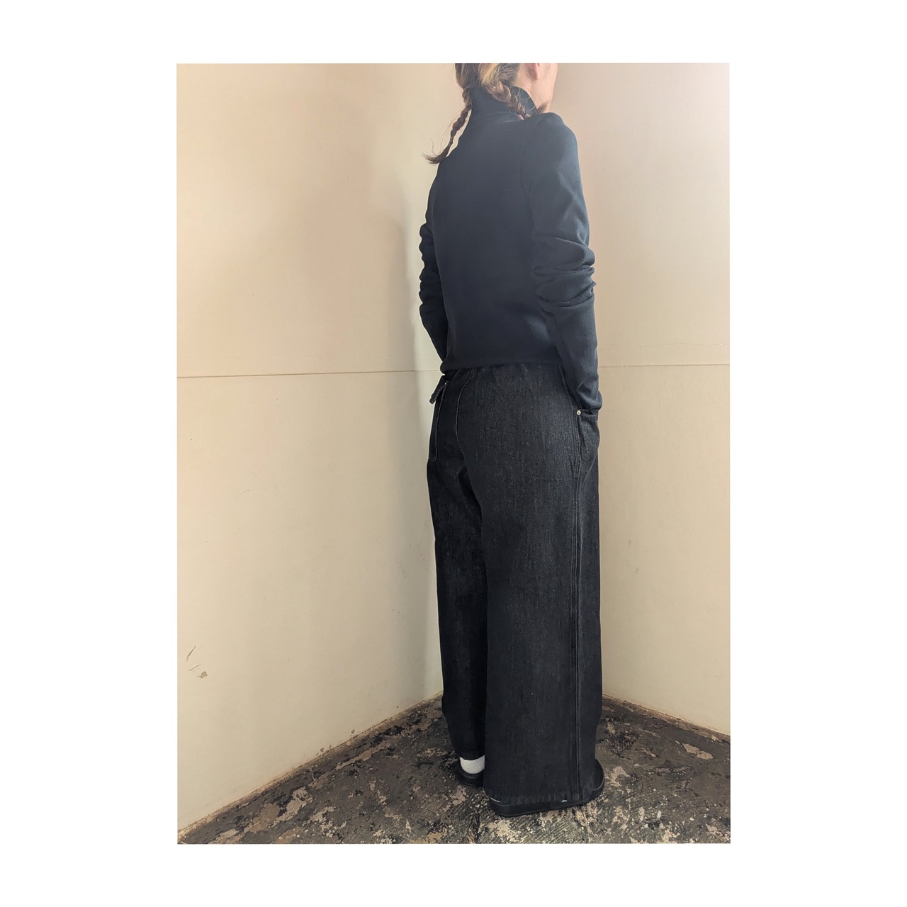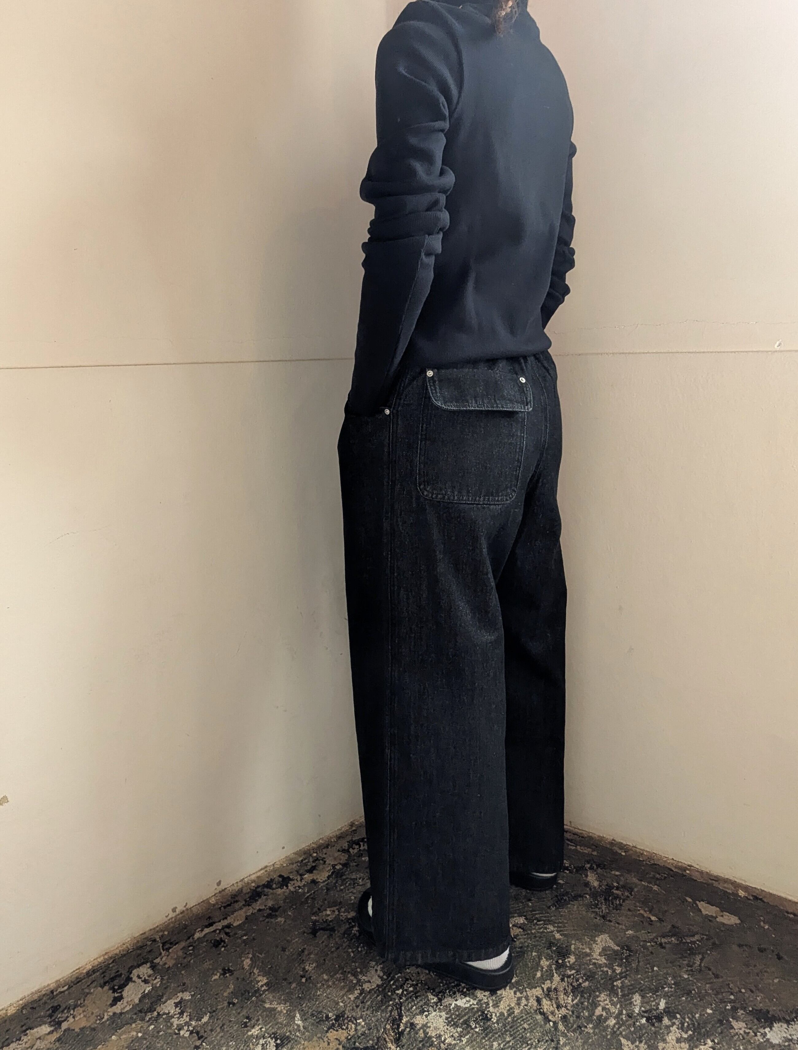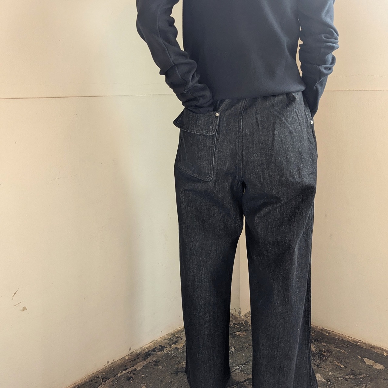 ブラックデニムですと、スラックス見えするのも