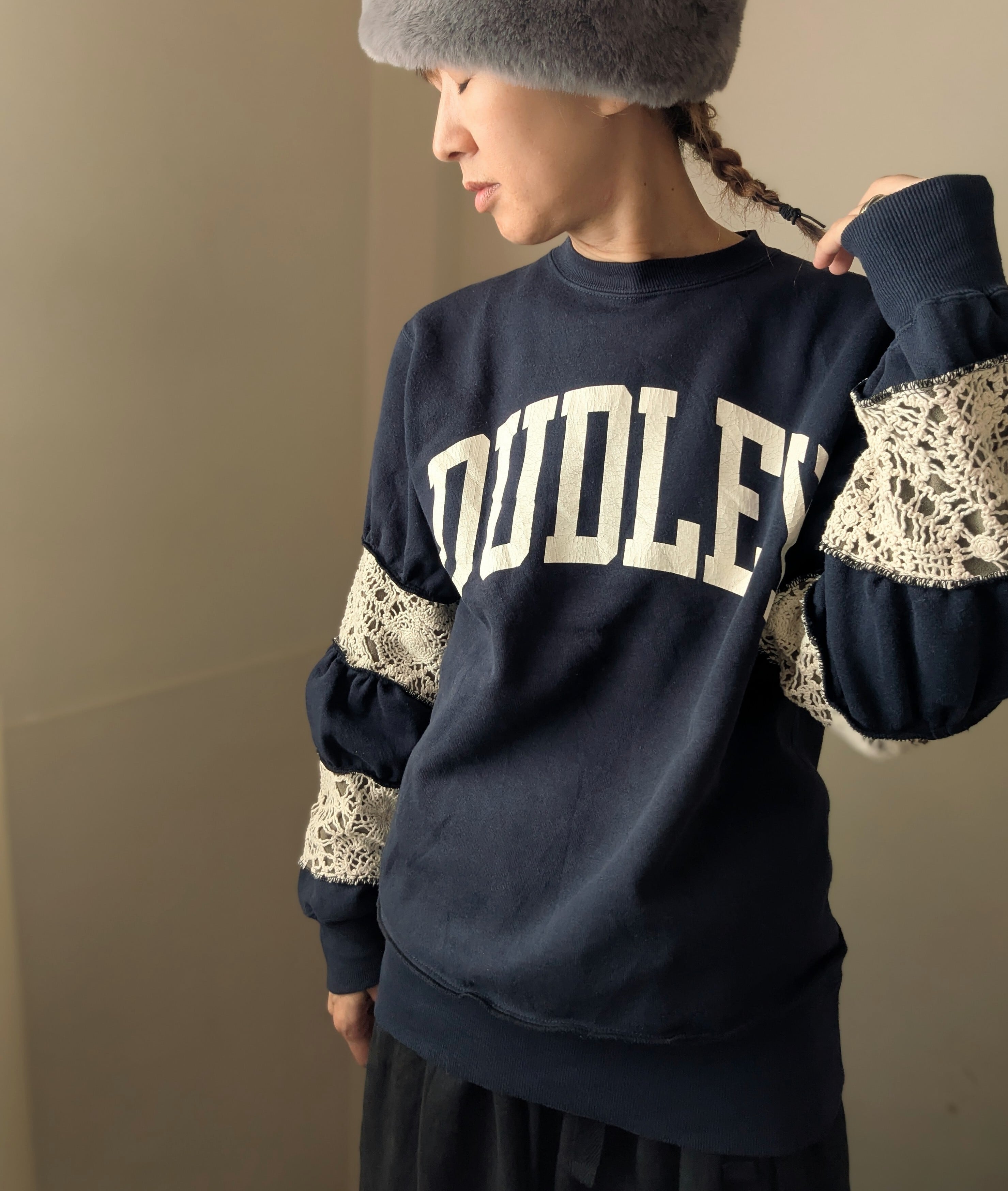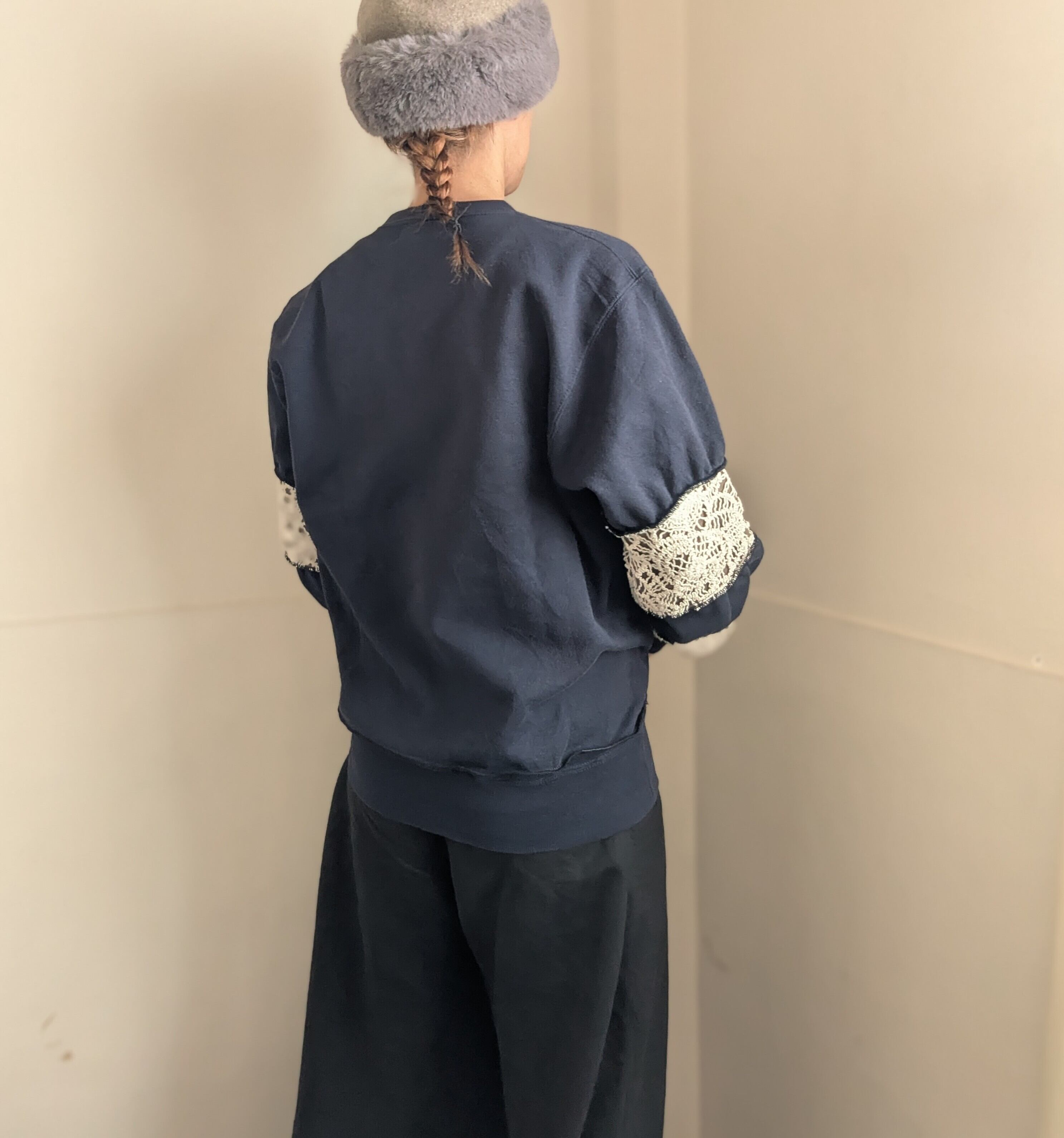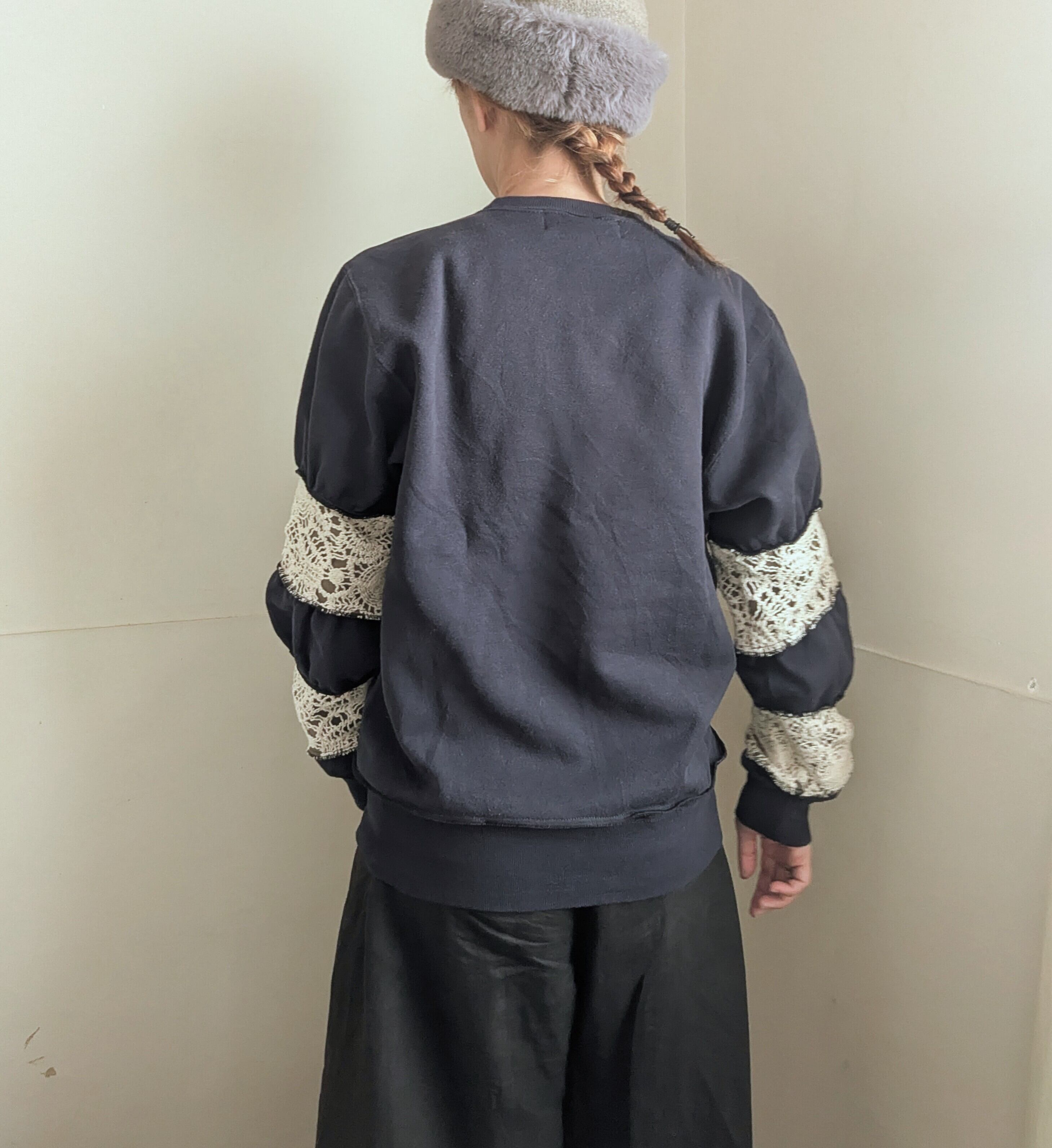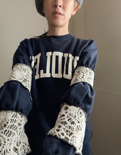 古着スウェットをリメイクしたアイテム。