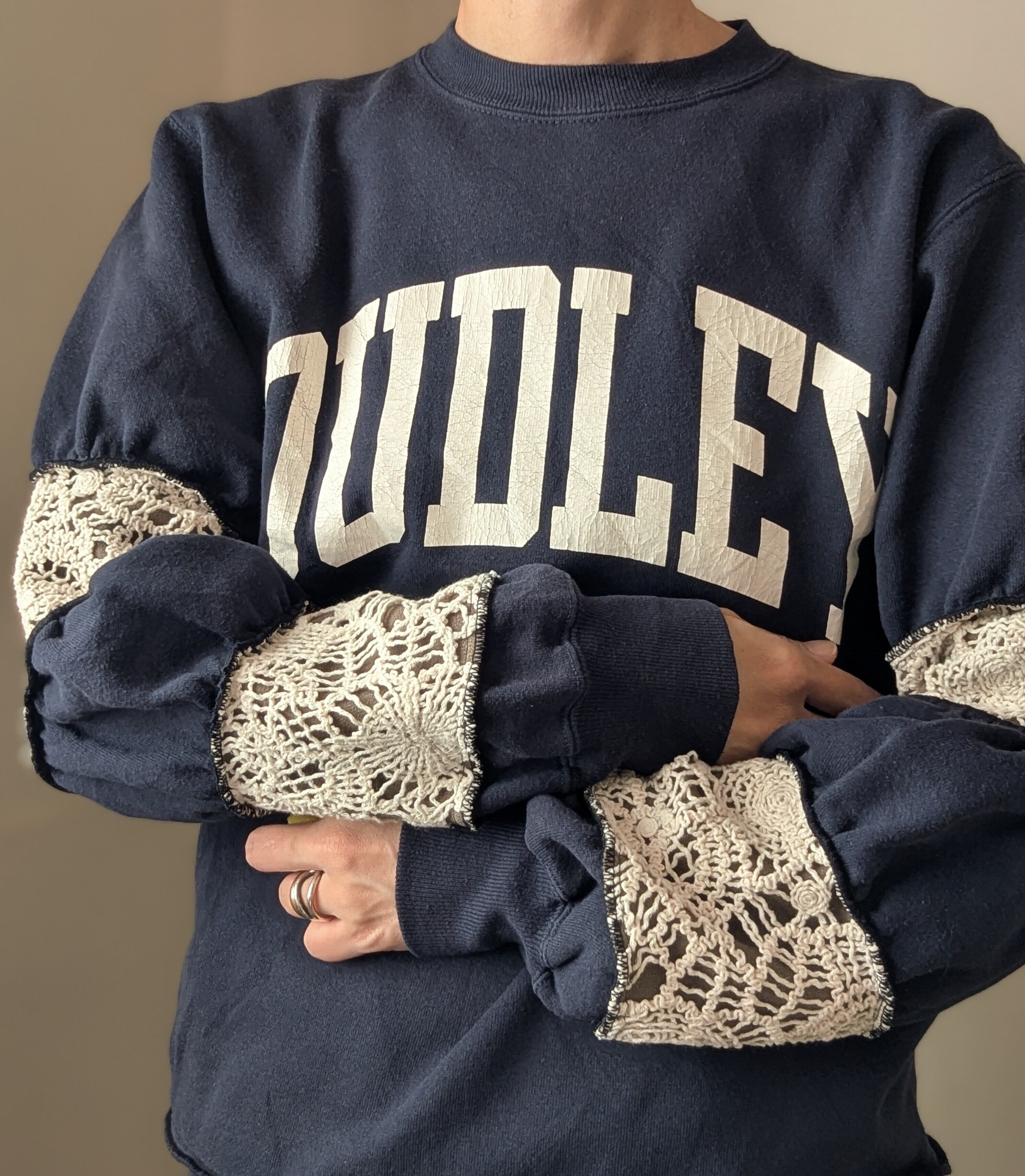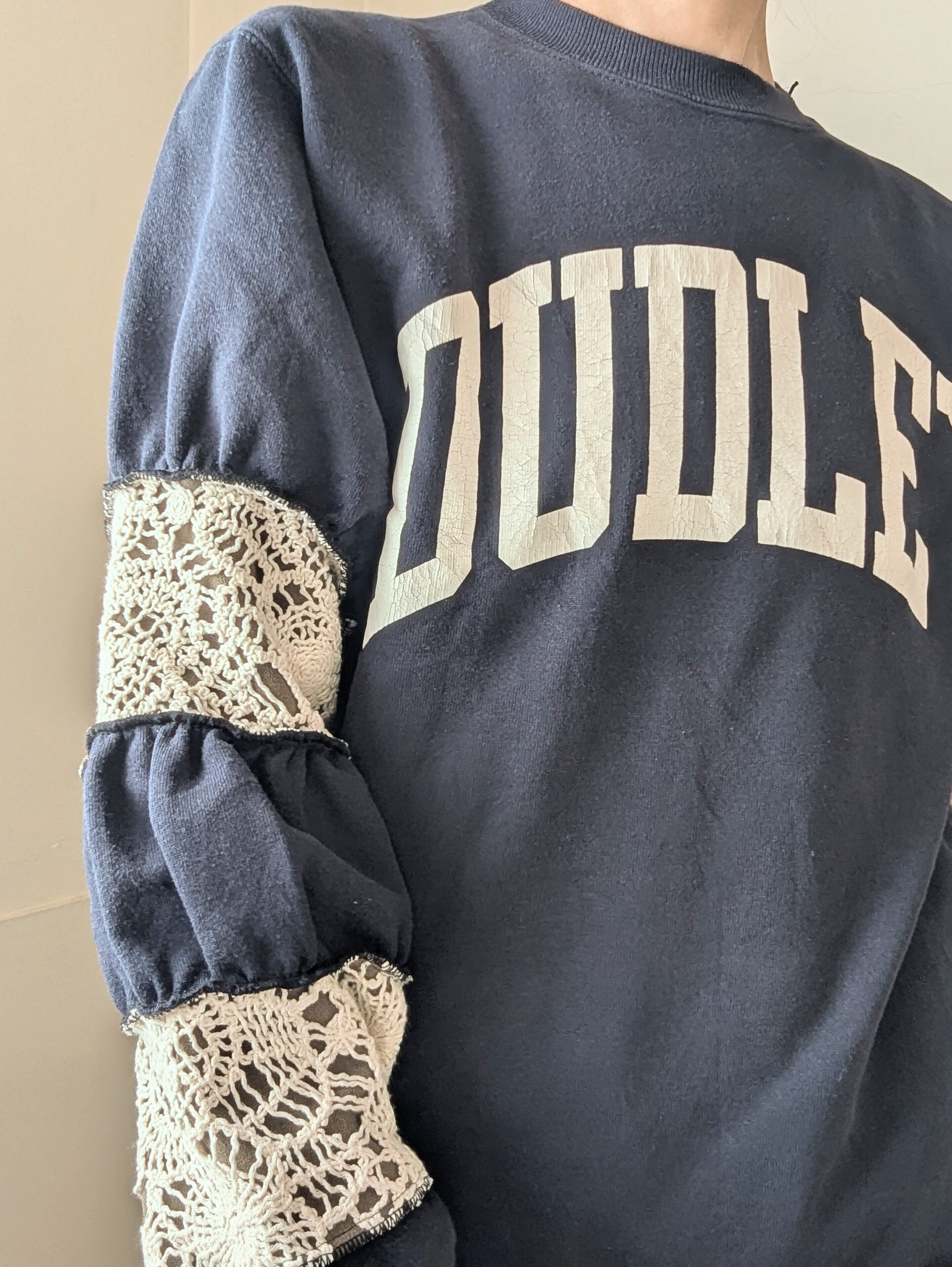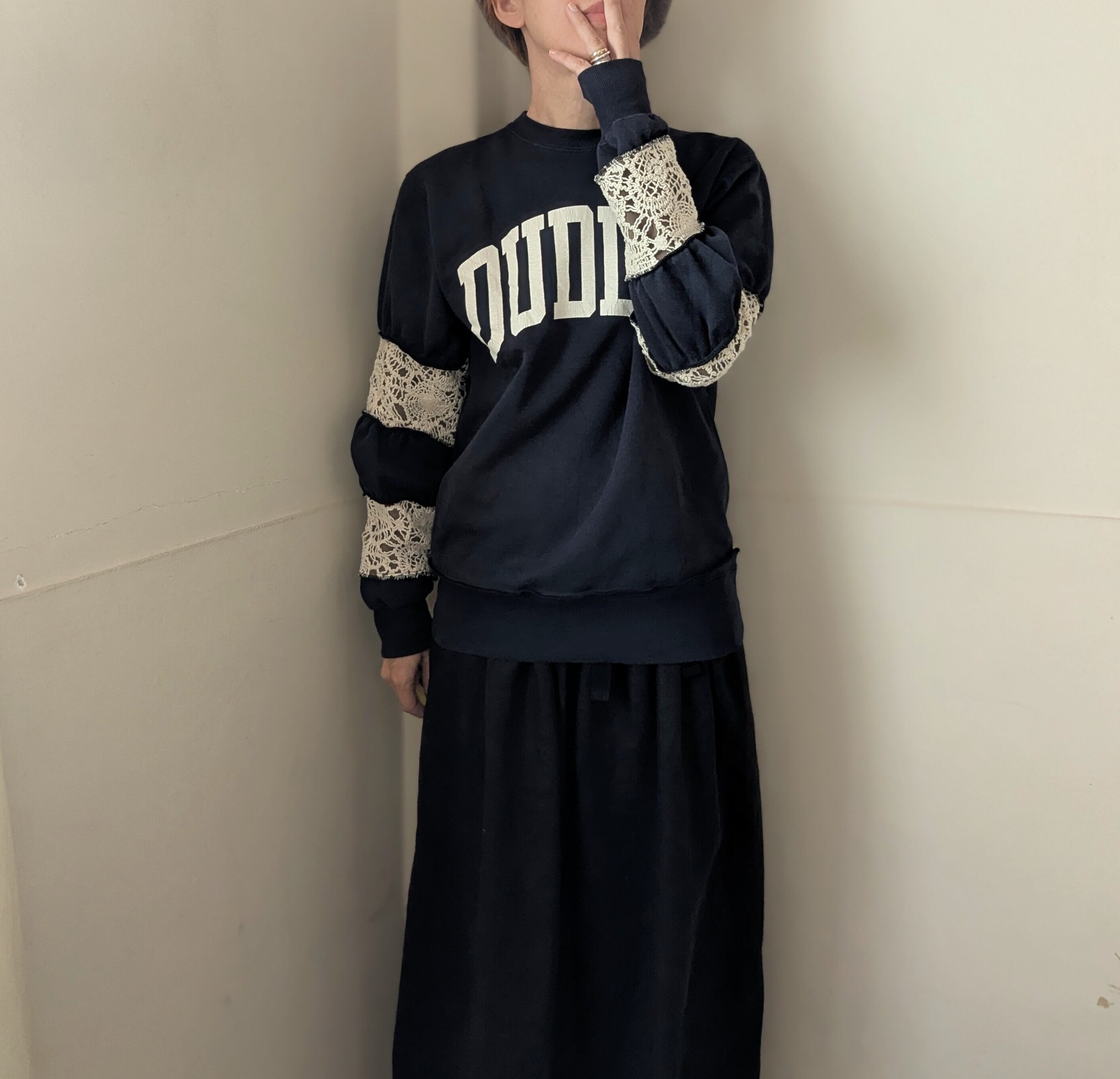 古着スウェットをリメイクしたアイテム。