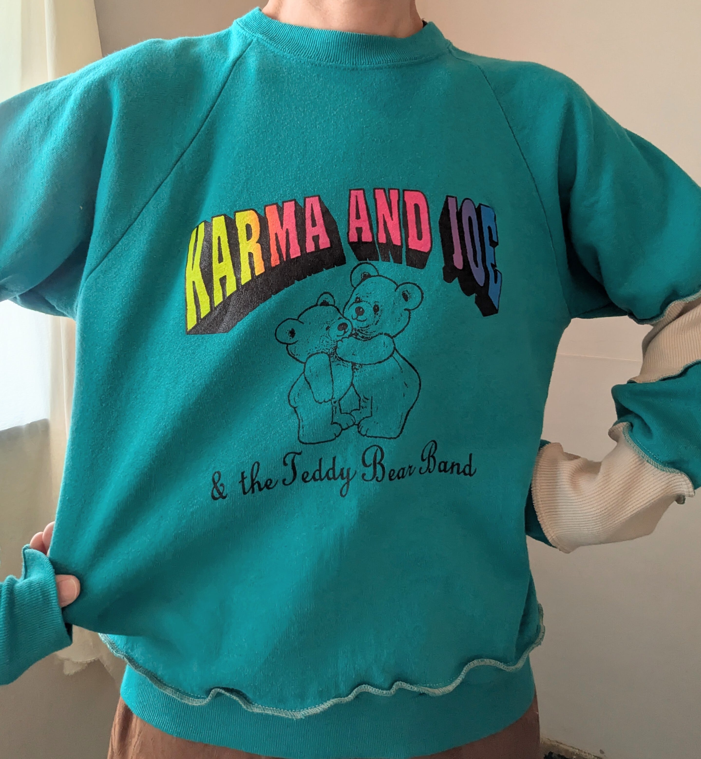 古着スウェットをリメイクしたアイテム。