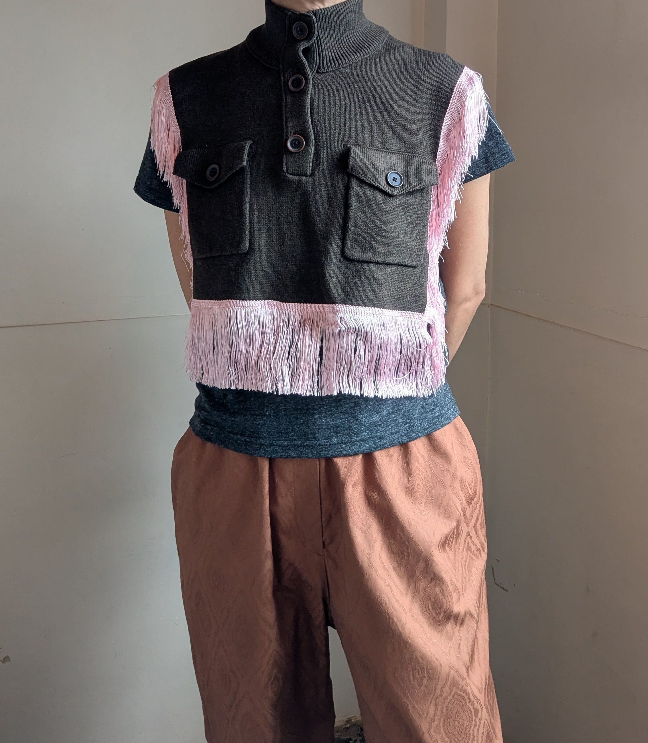 一点物[ REHERSALL ]リハーズオール / フリンジベスト / BROWN×PINK