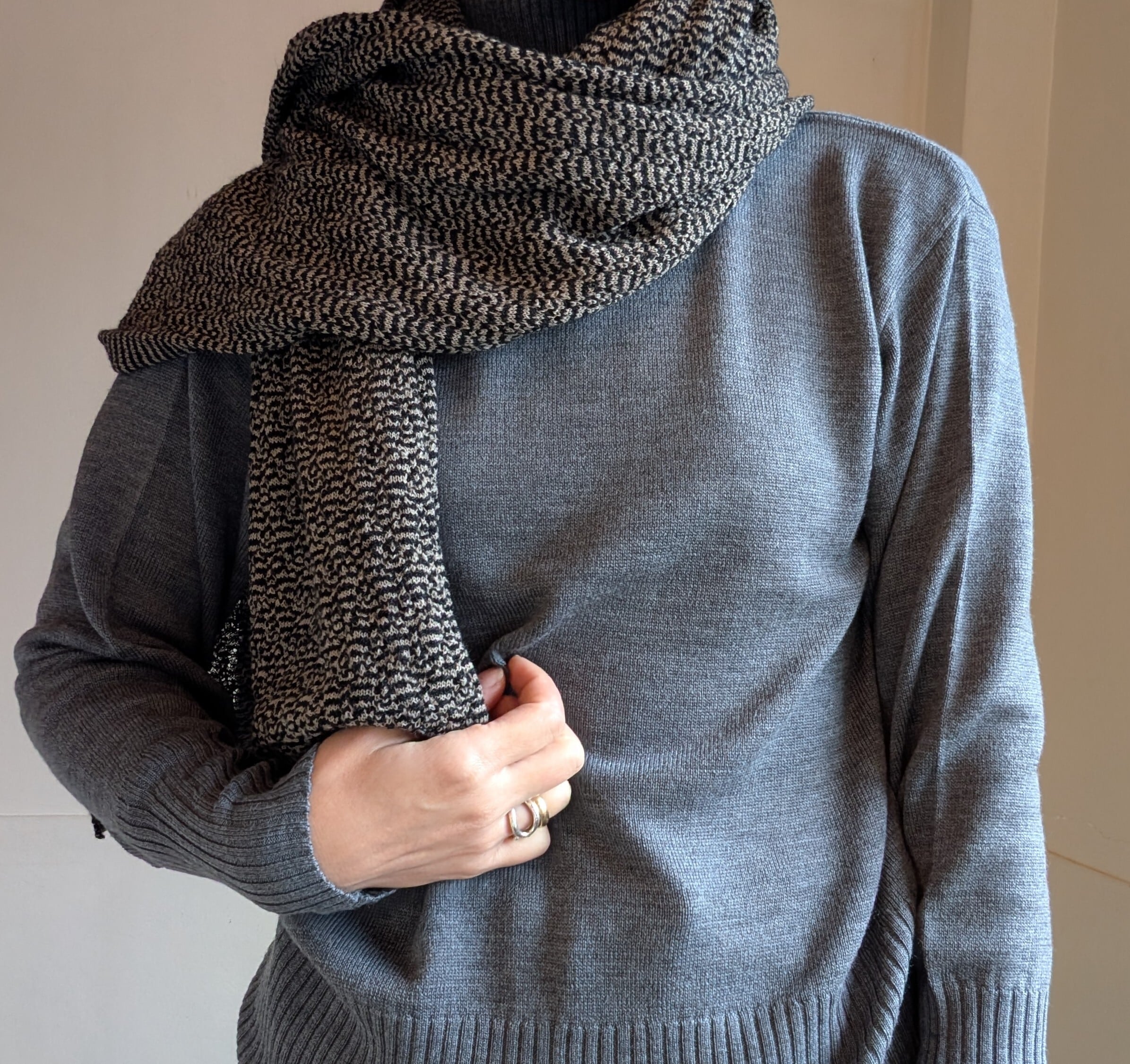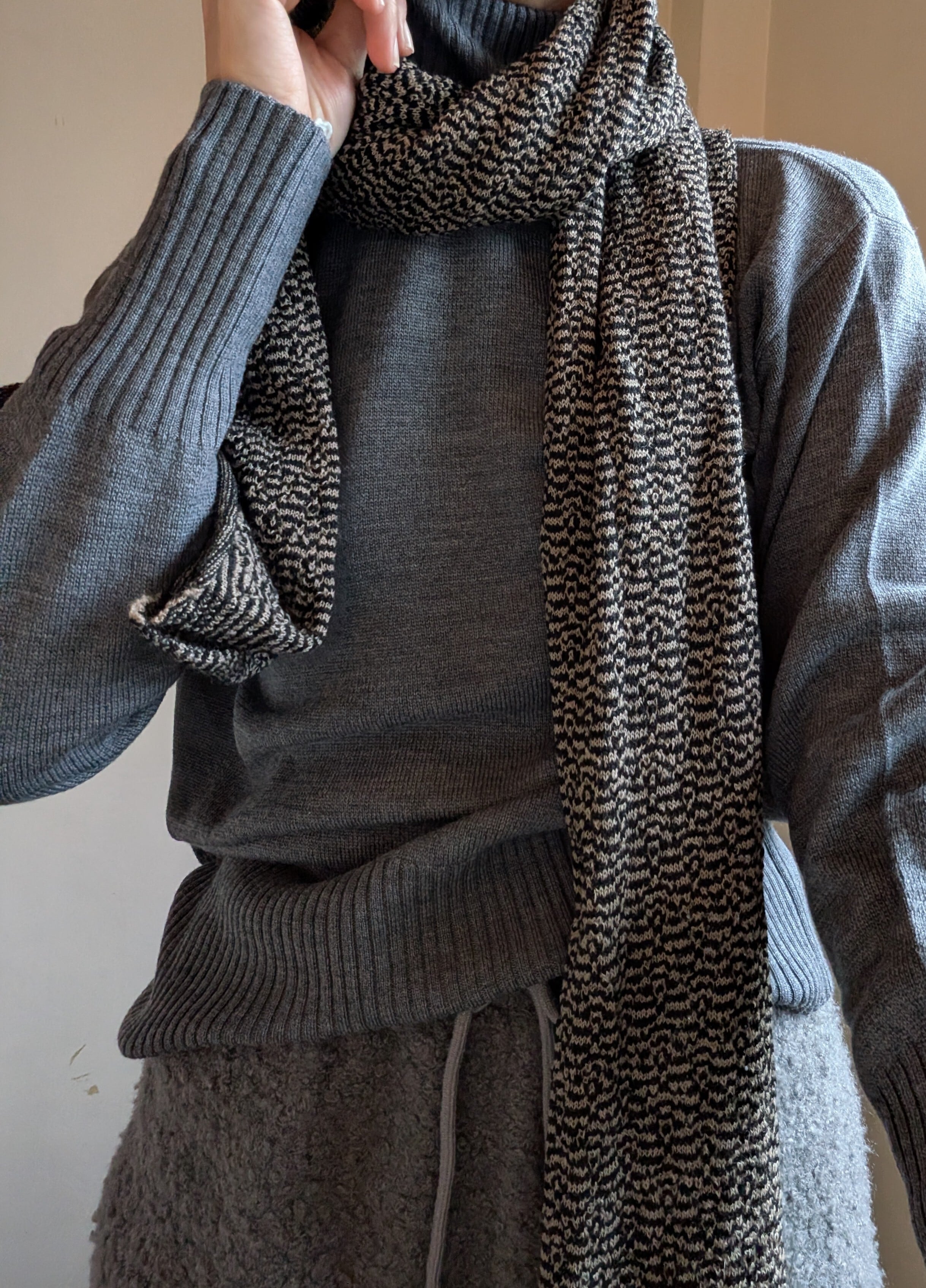 [ L'ANIT ]ラニット / ウェーブロングストール / WOOL100% / BLACK×MOCHA