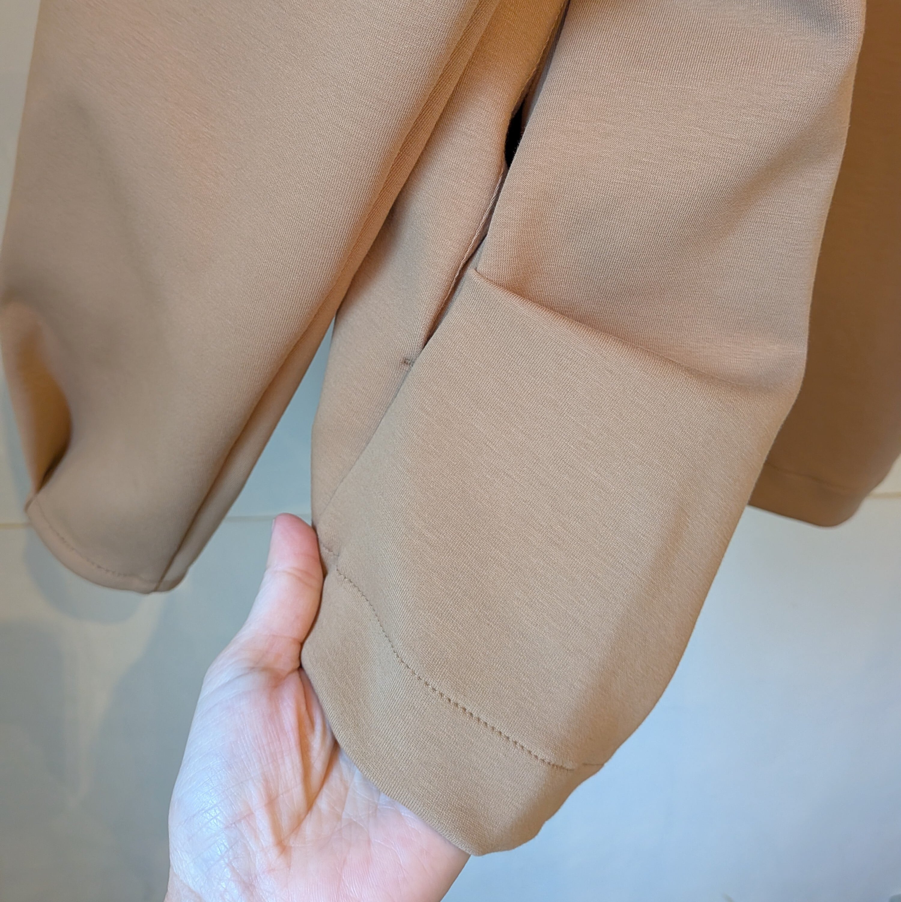 とても綺麗です。袖口、裾もリブ無しとなります。