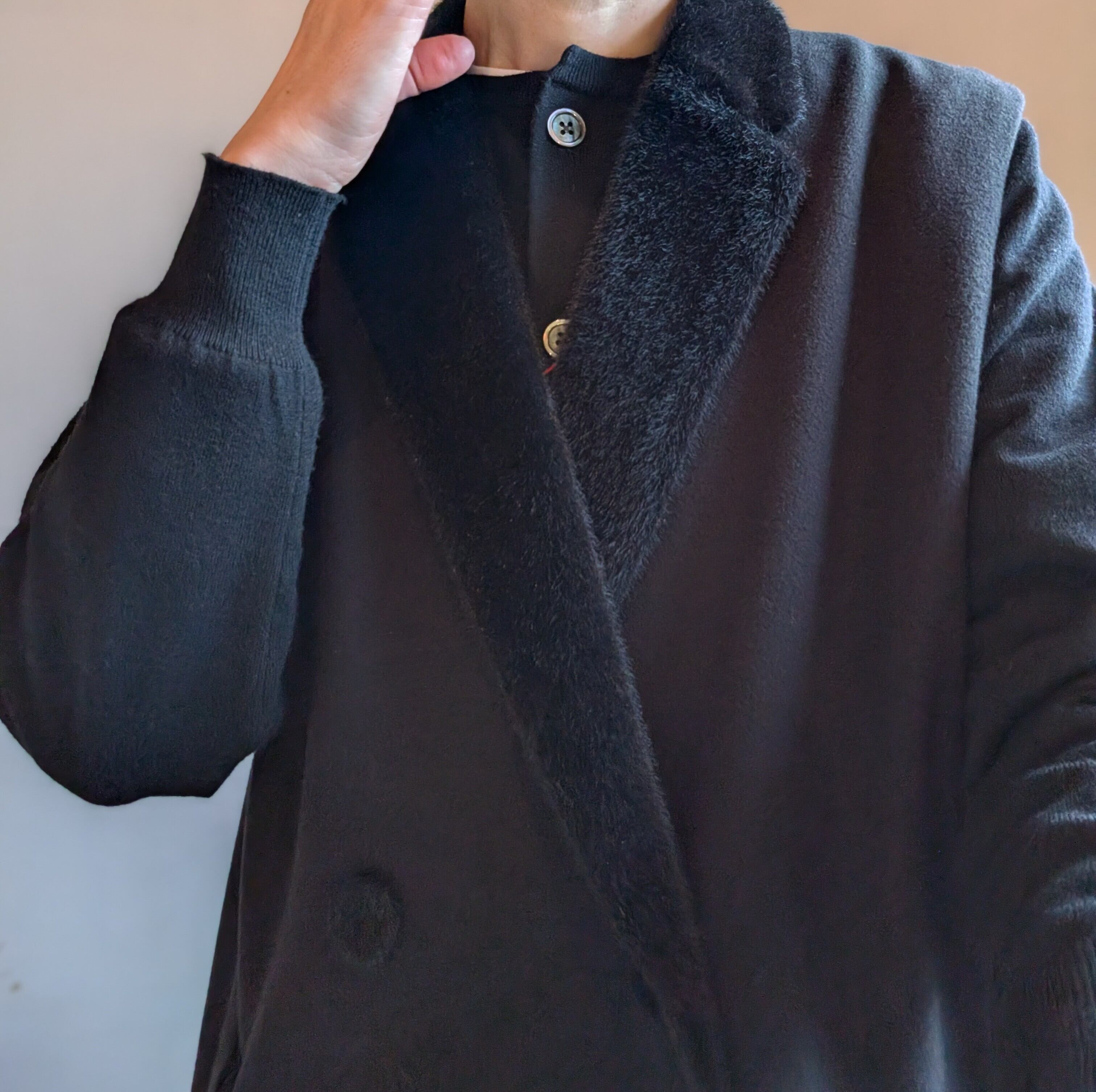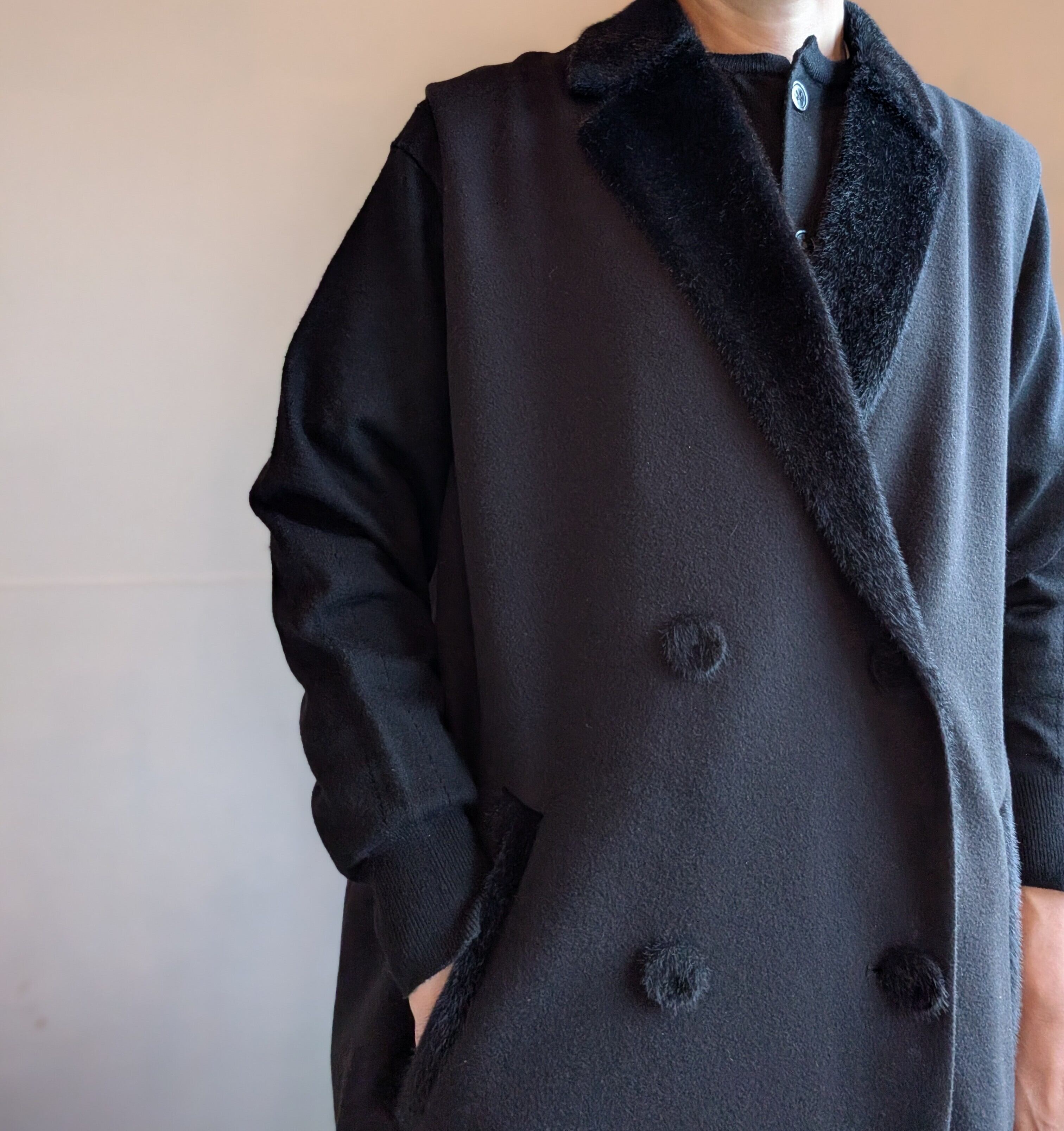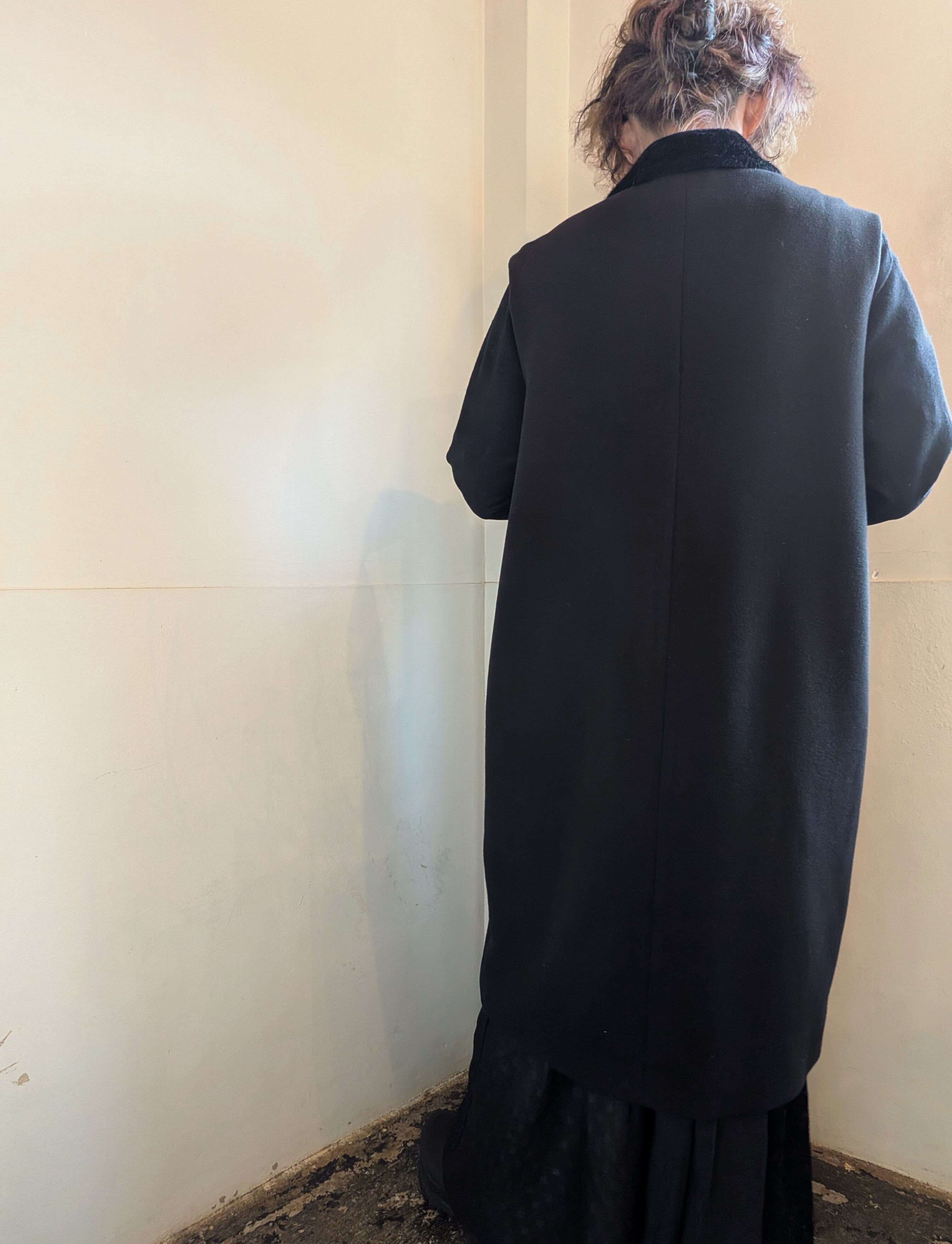 表現している生地を使用したコクーンシルエットの