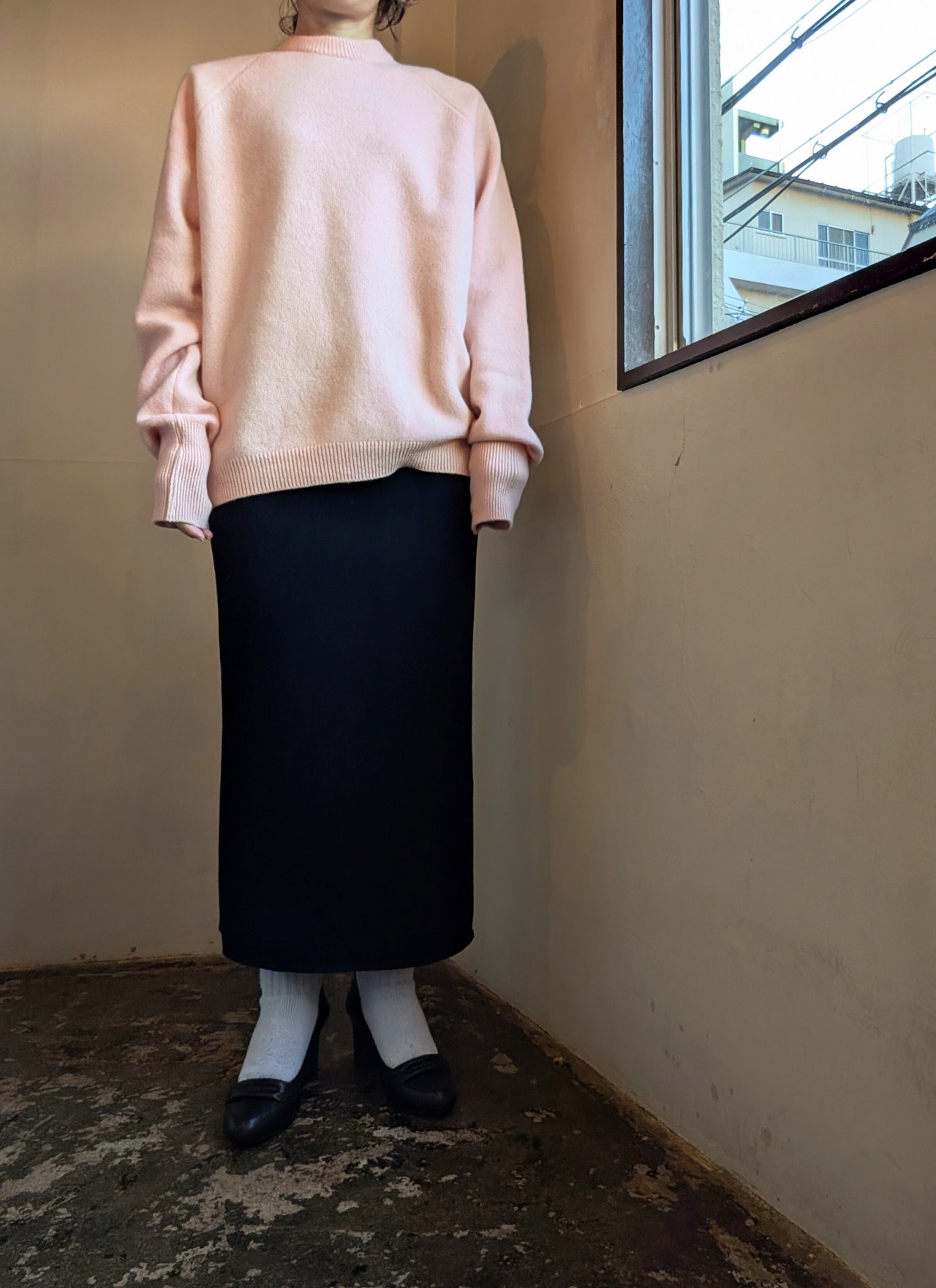 ペンシル型ニットスカートを