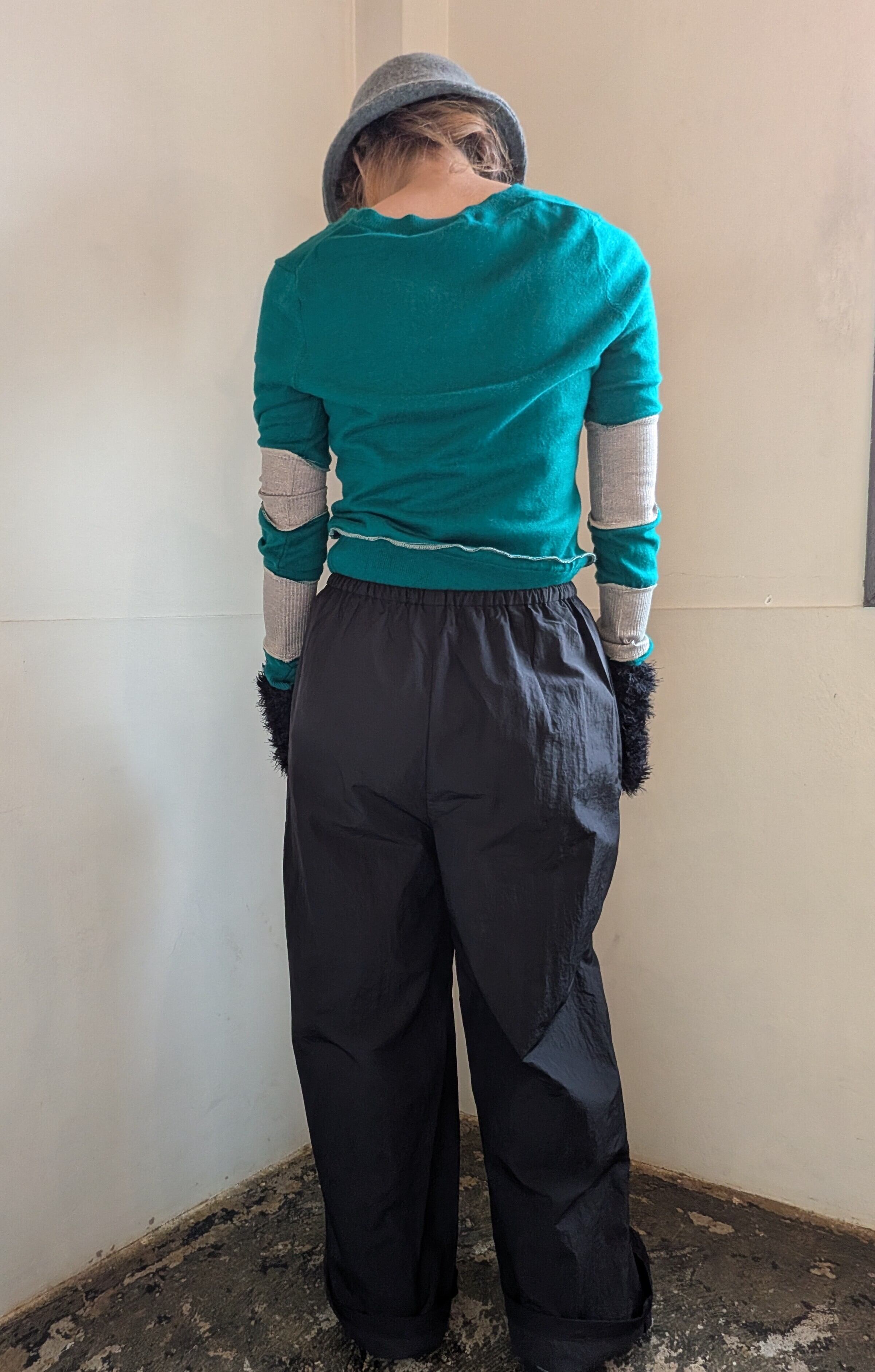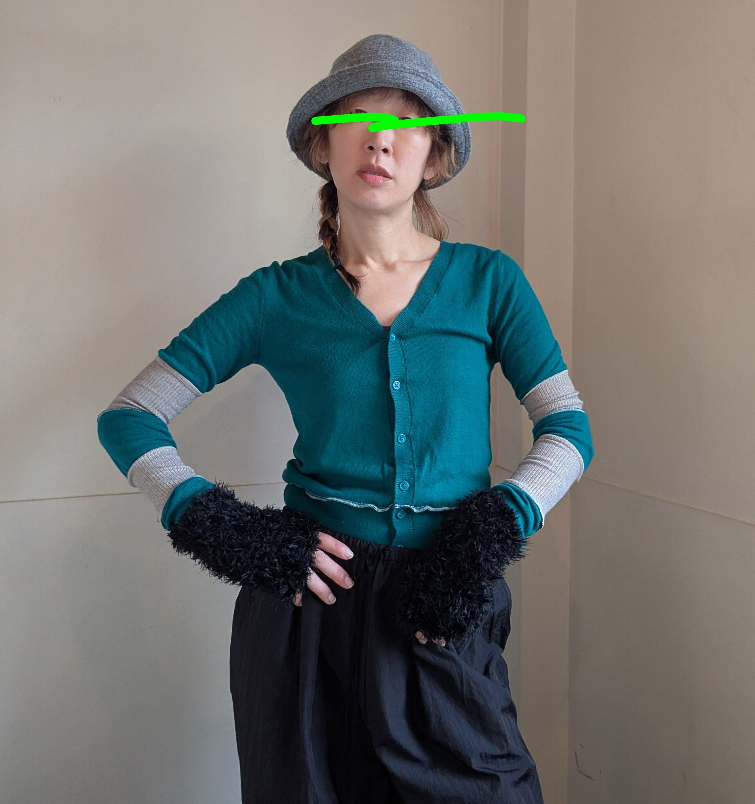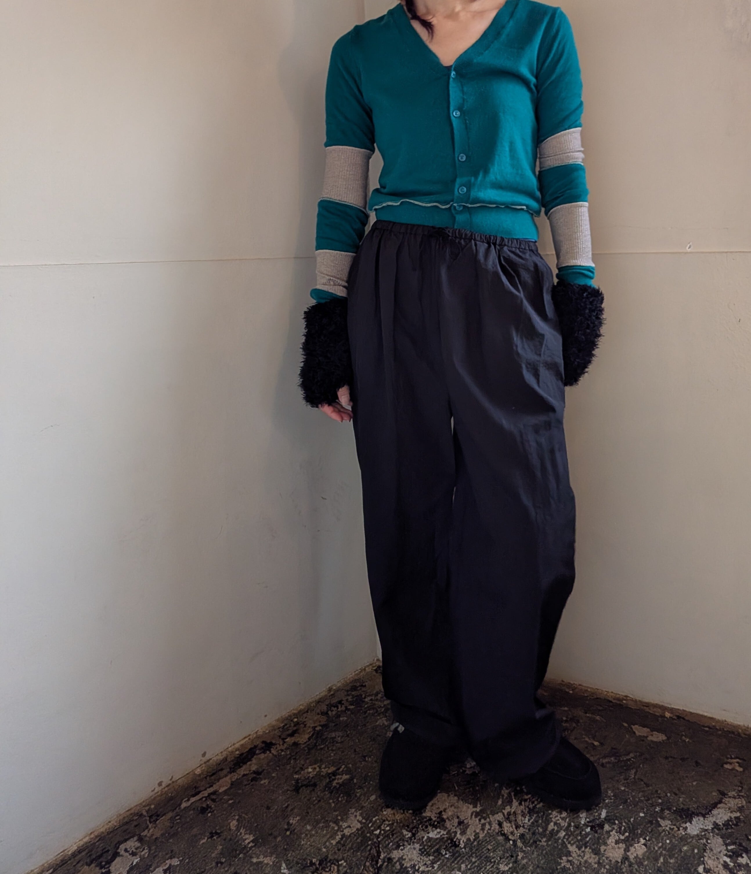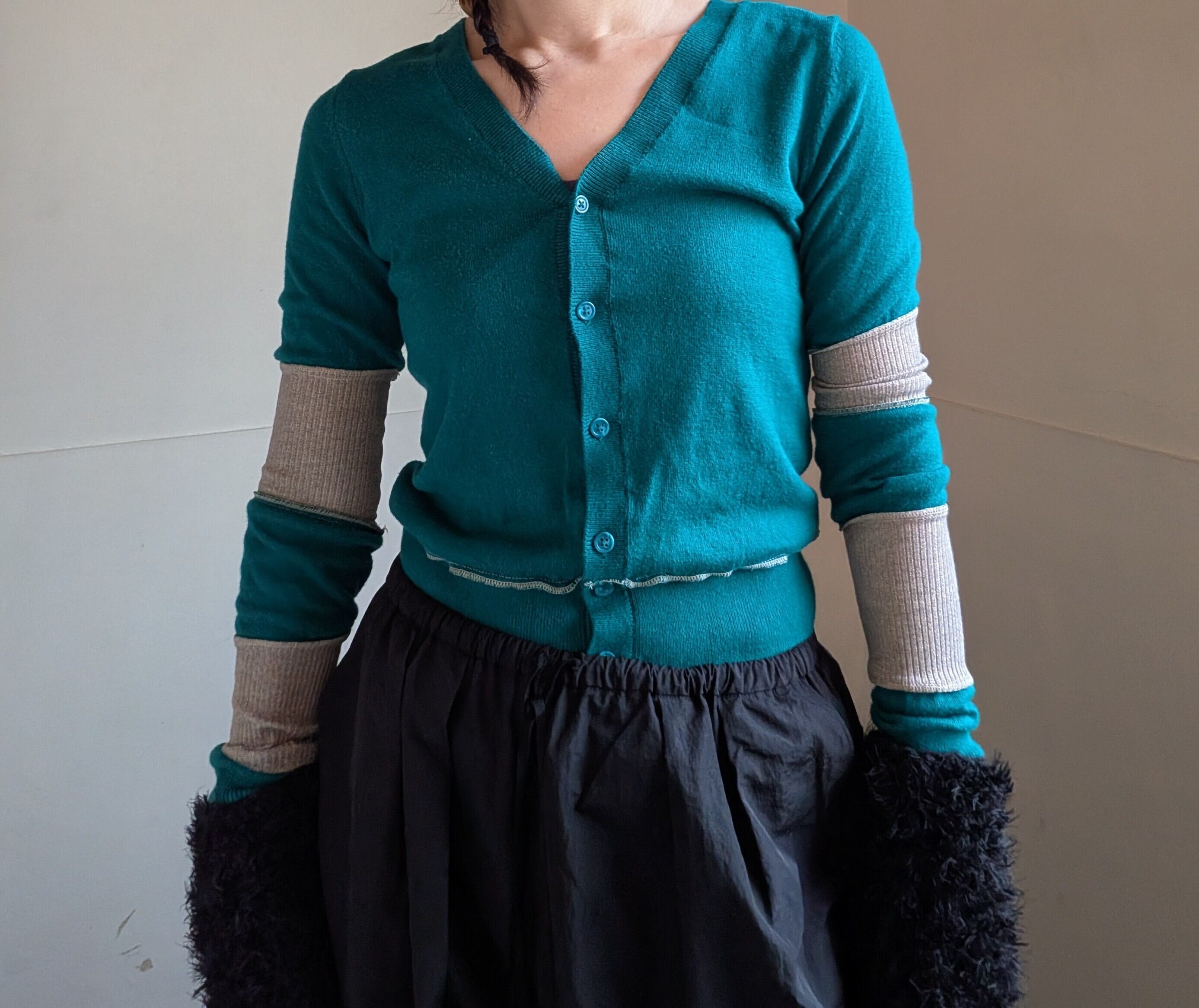 [ REHERSALL ]リハーズオール / リメイク 一点物 / リブボーダーニットカーディガン / GREEN