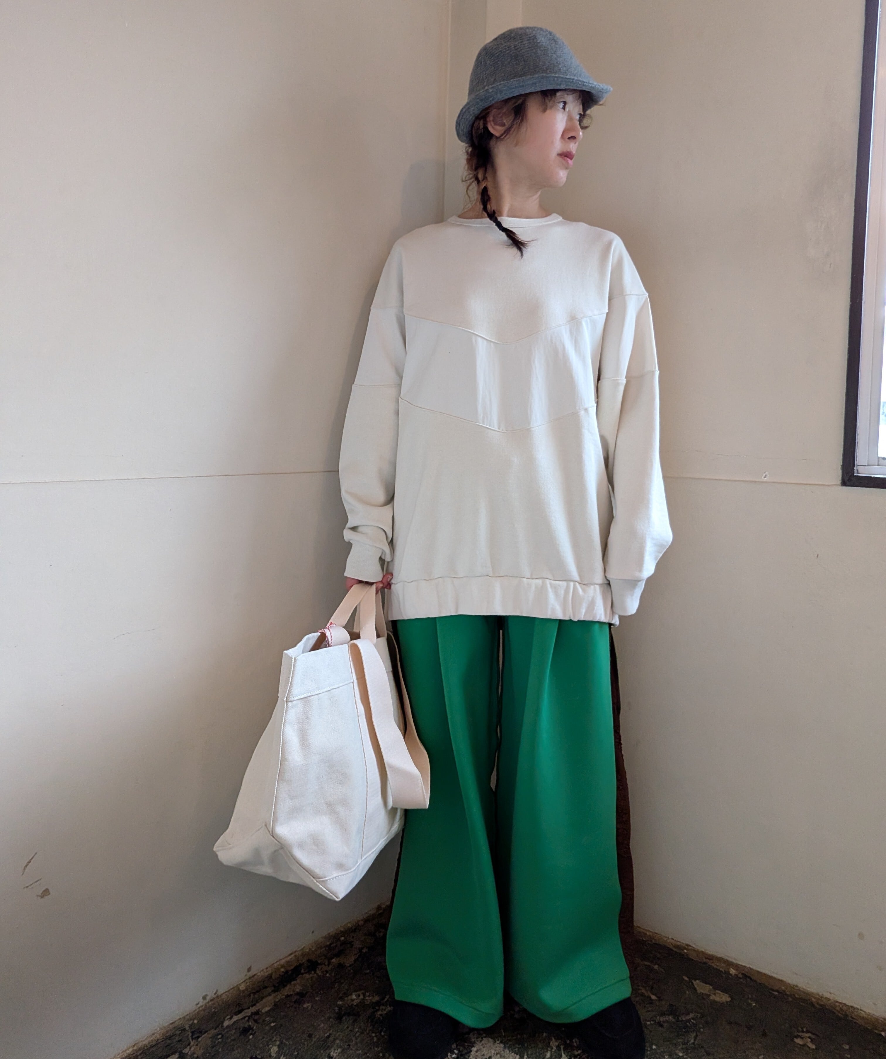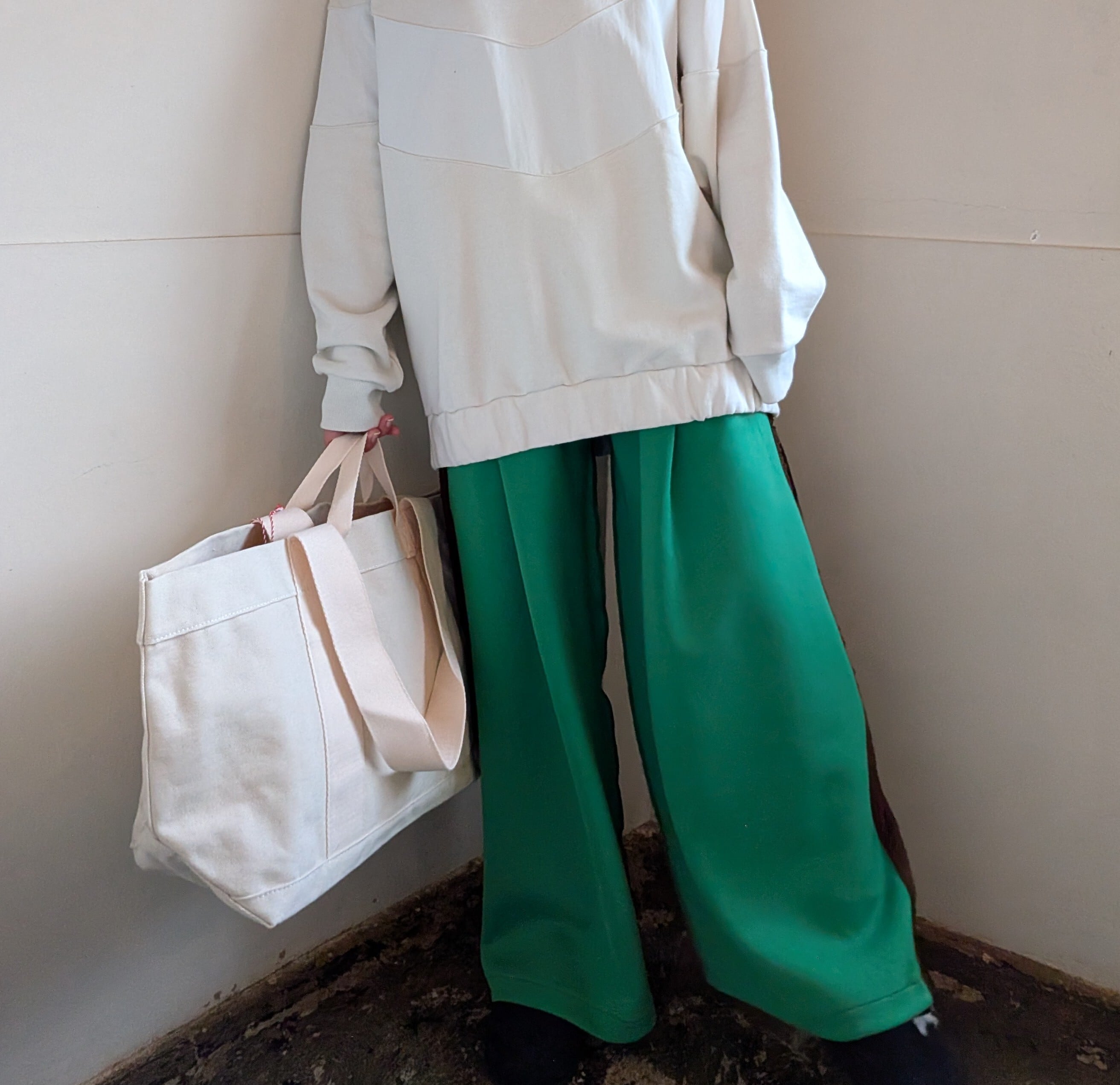 ストレッチ感、ハリ感のあるワイドパンツです。