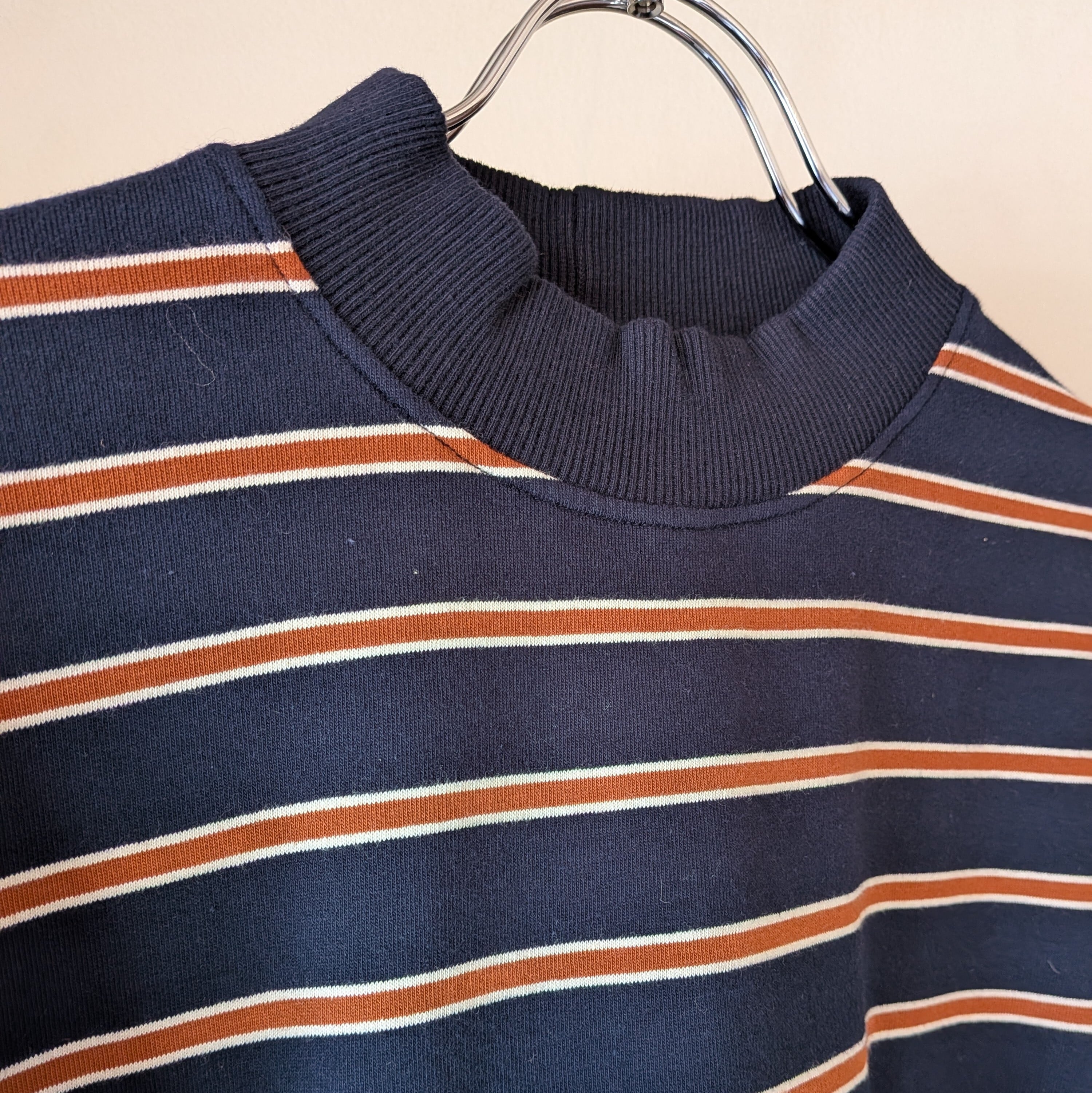 色 ネイビーにホワイトとオレンジのボーダー柄