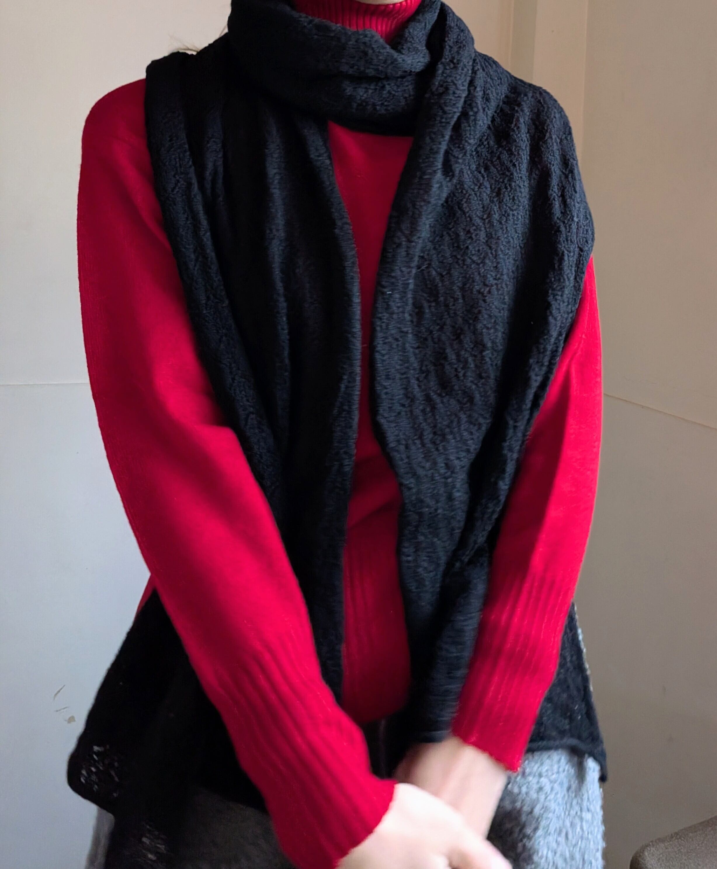 [ L'ANIT ]ラニット / ウェーブロングストール / WOOL100% / BLACK