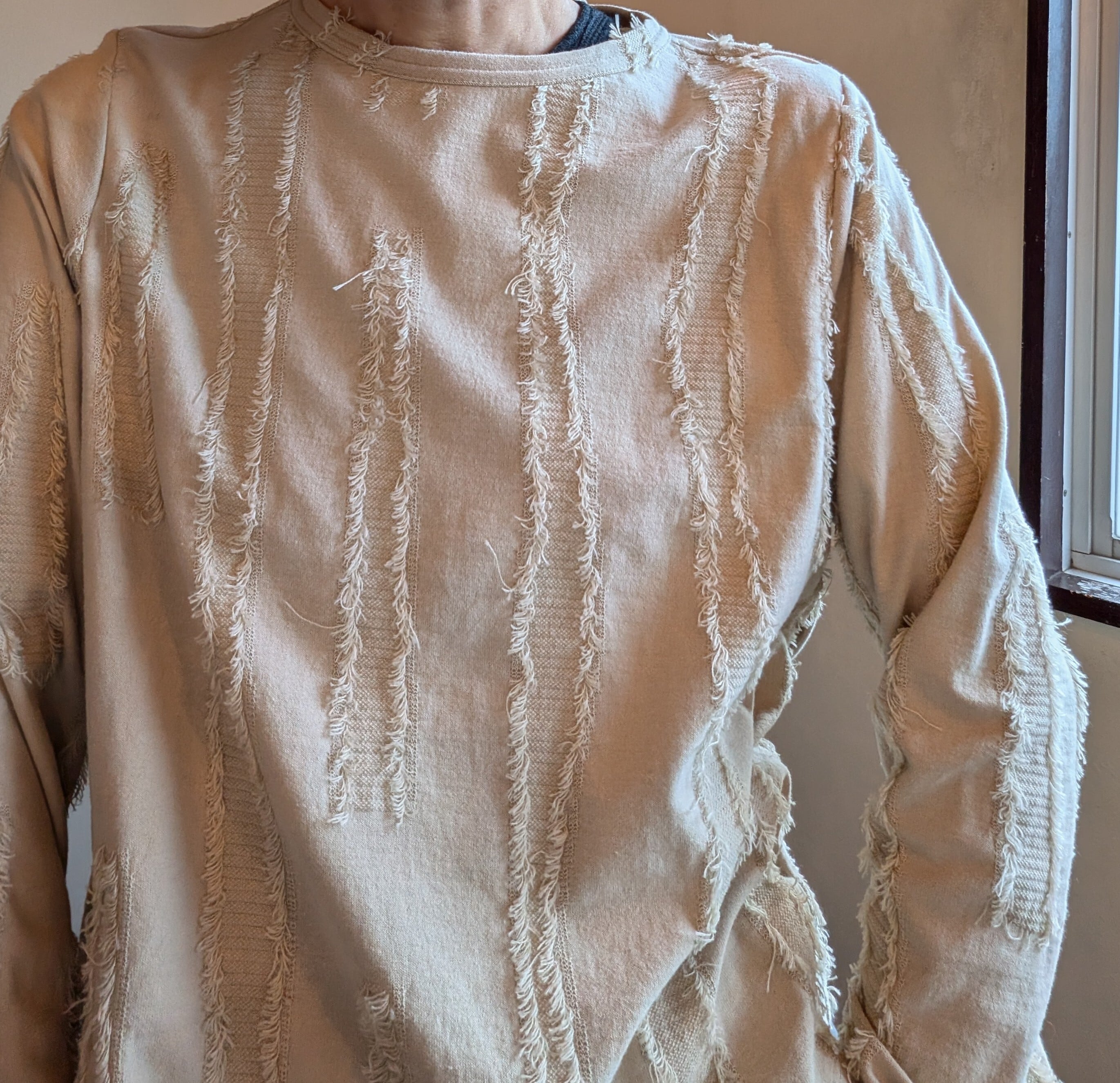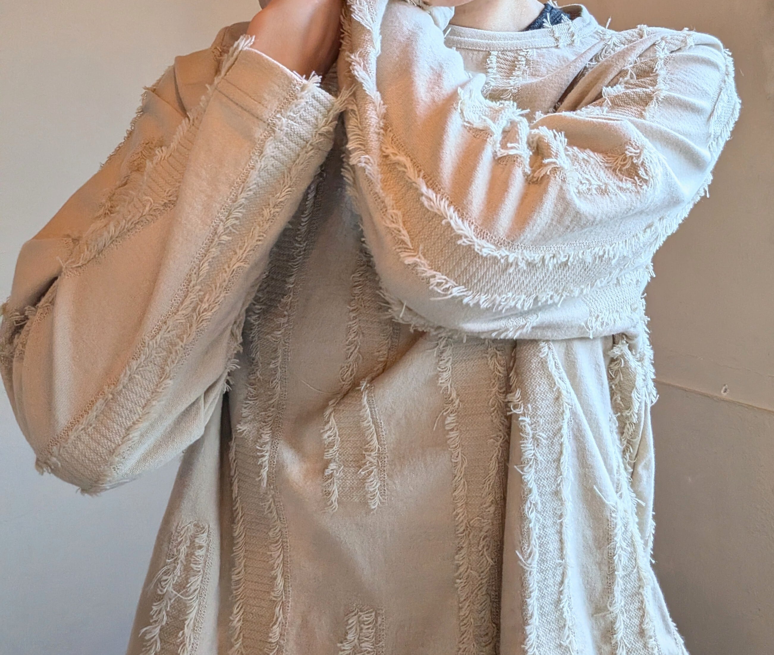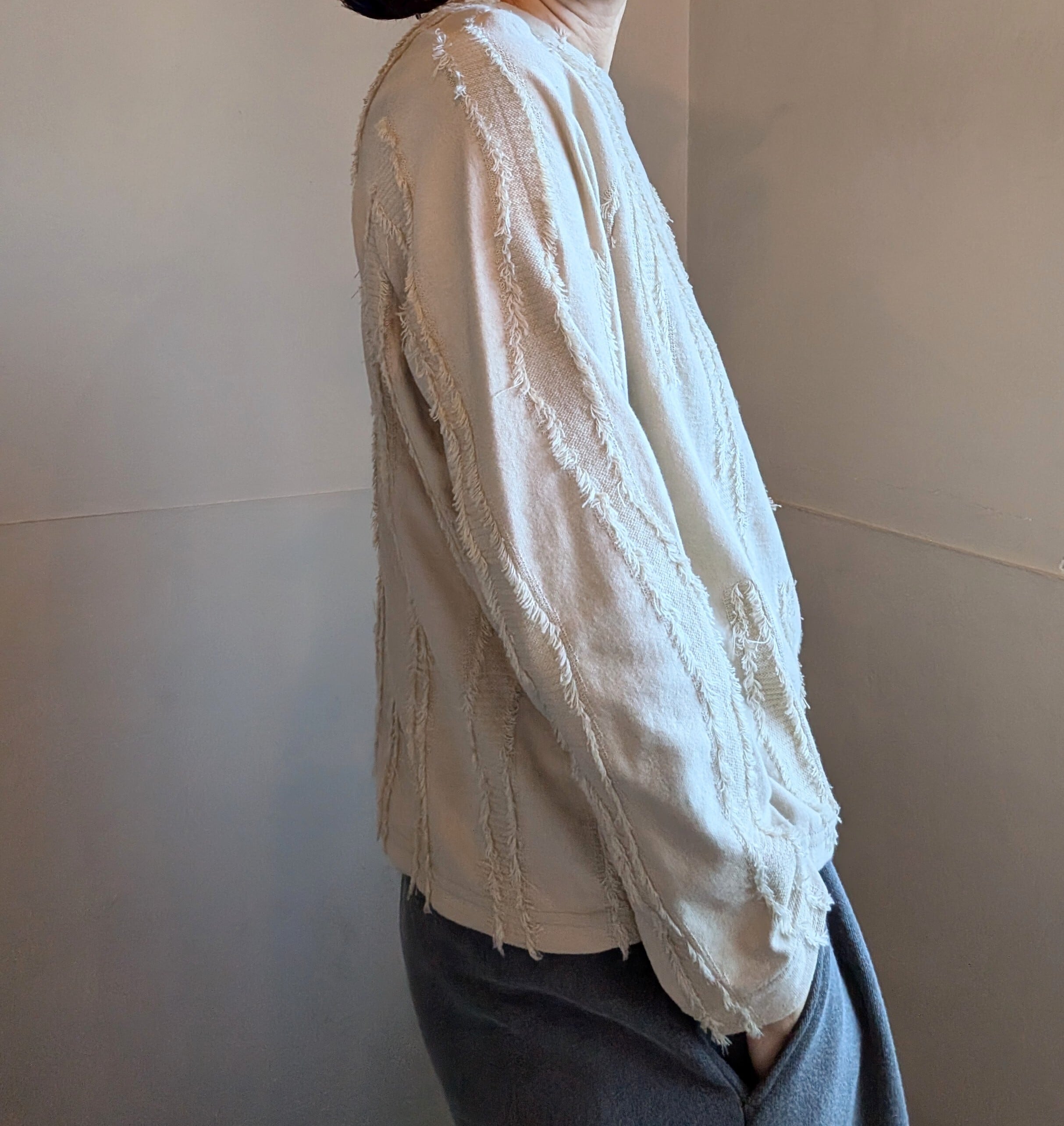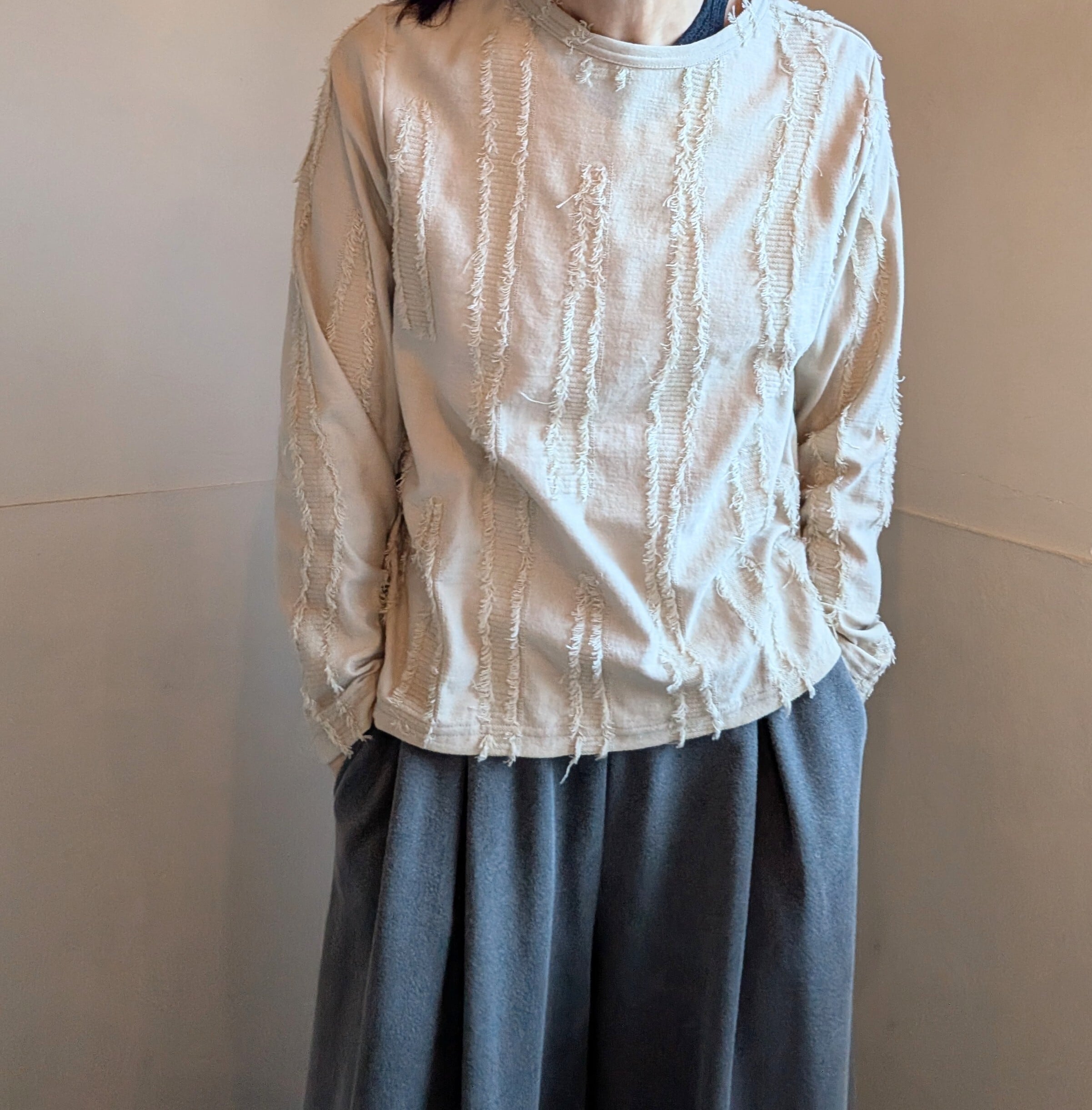 Cotton100%フリンジジャガードストライプ プルオーバー