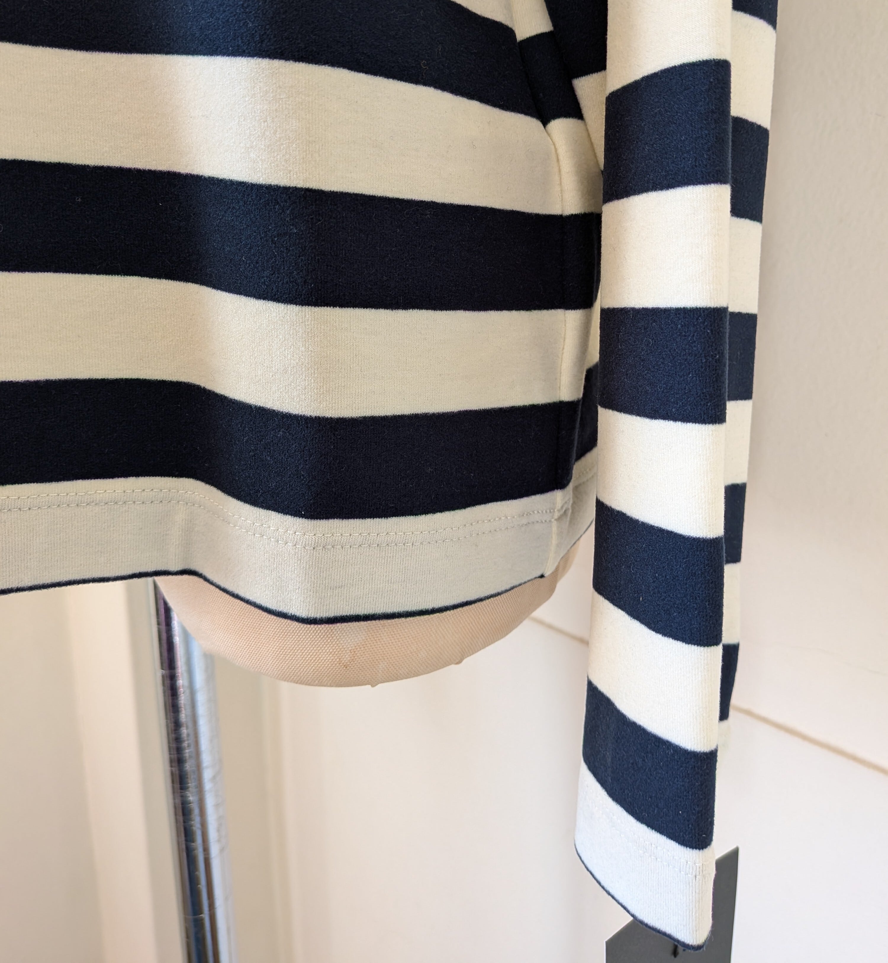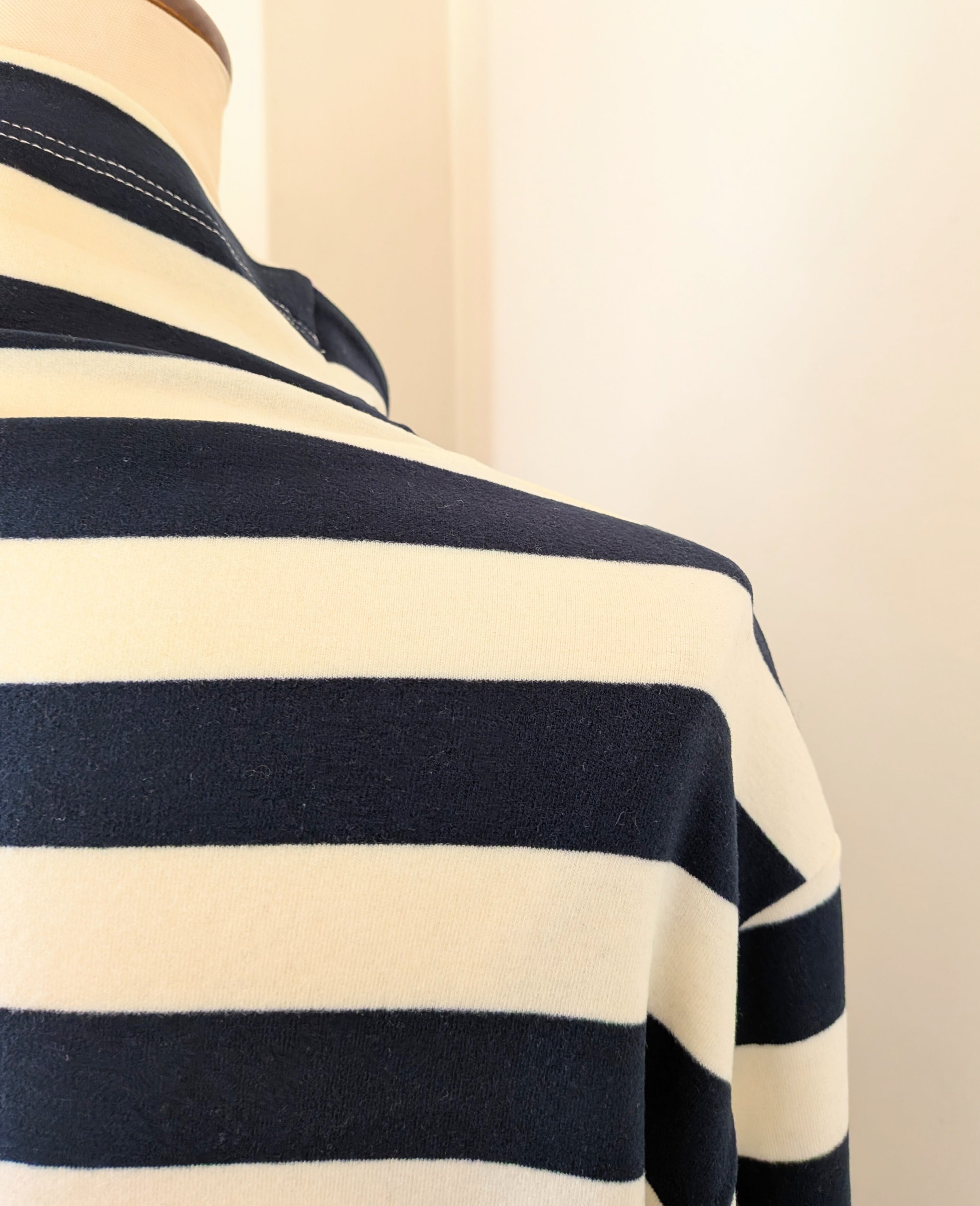 ストレッチ起毛ボーダー / モックネックプルオーバー / オフホワイト×ブラック