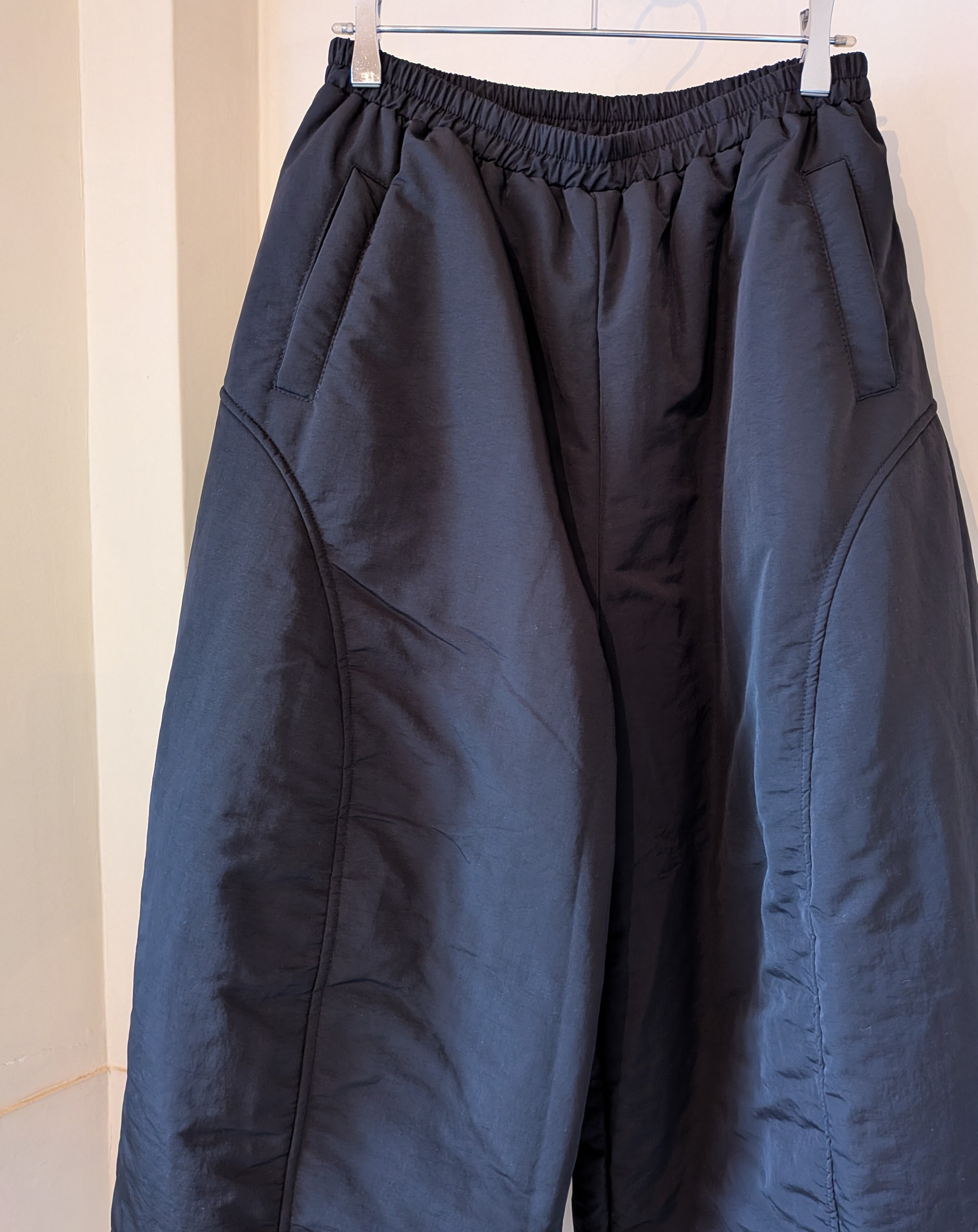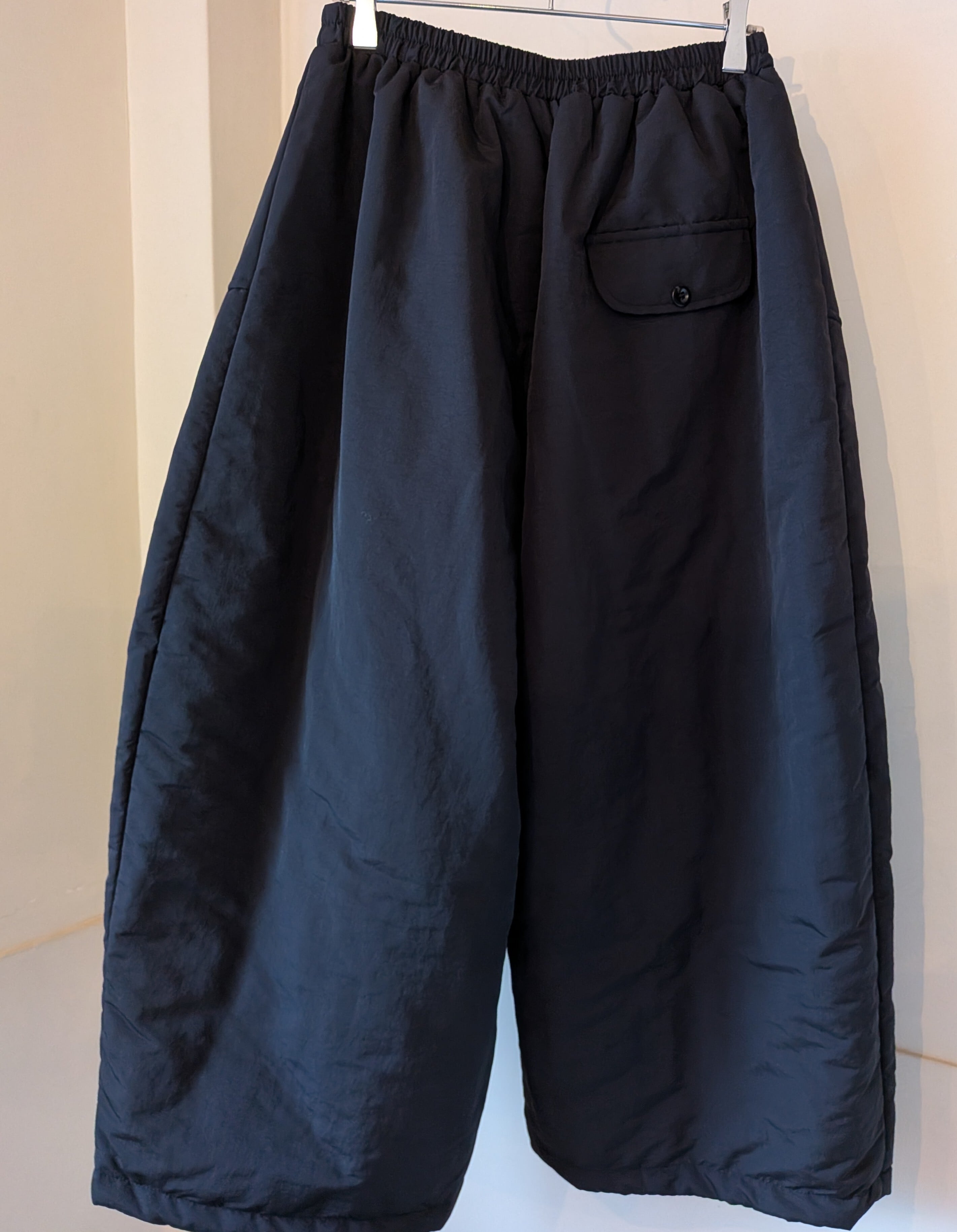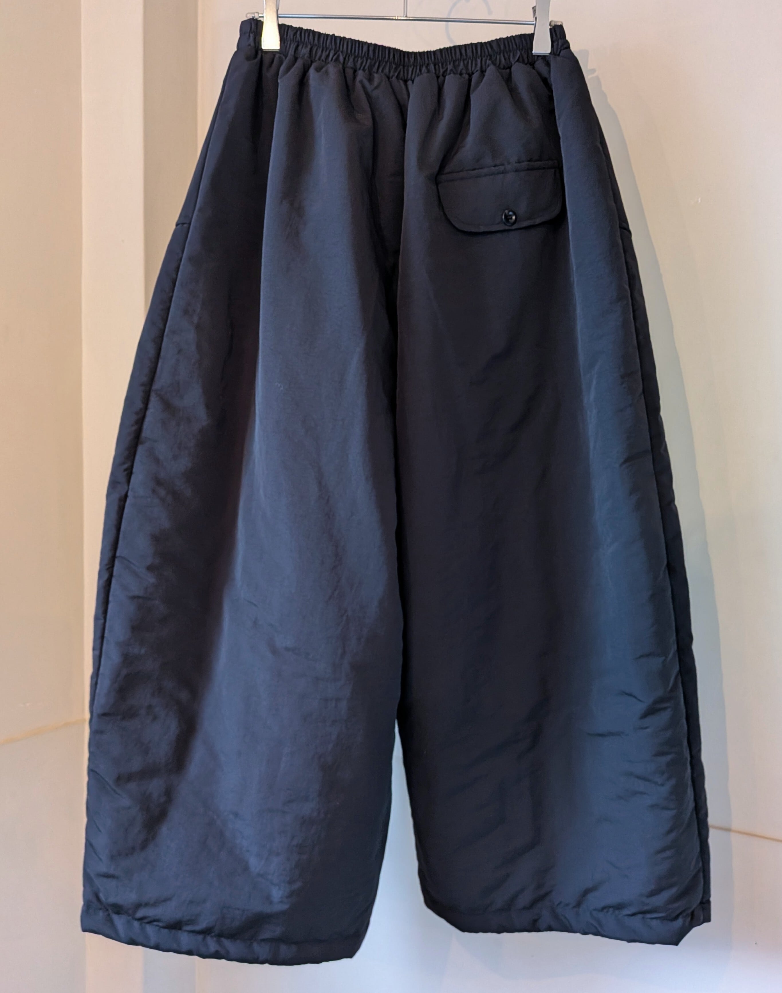ポリエステル中綿の入ったワイドパンツです。
