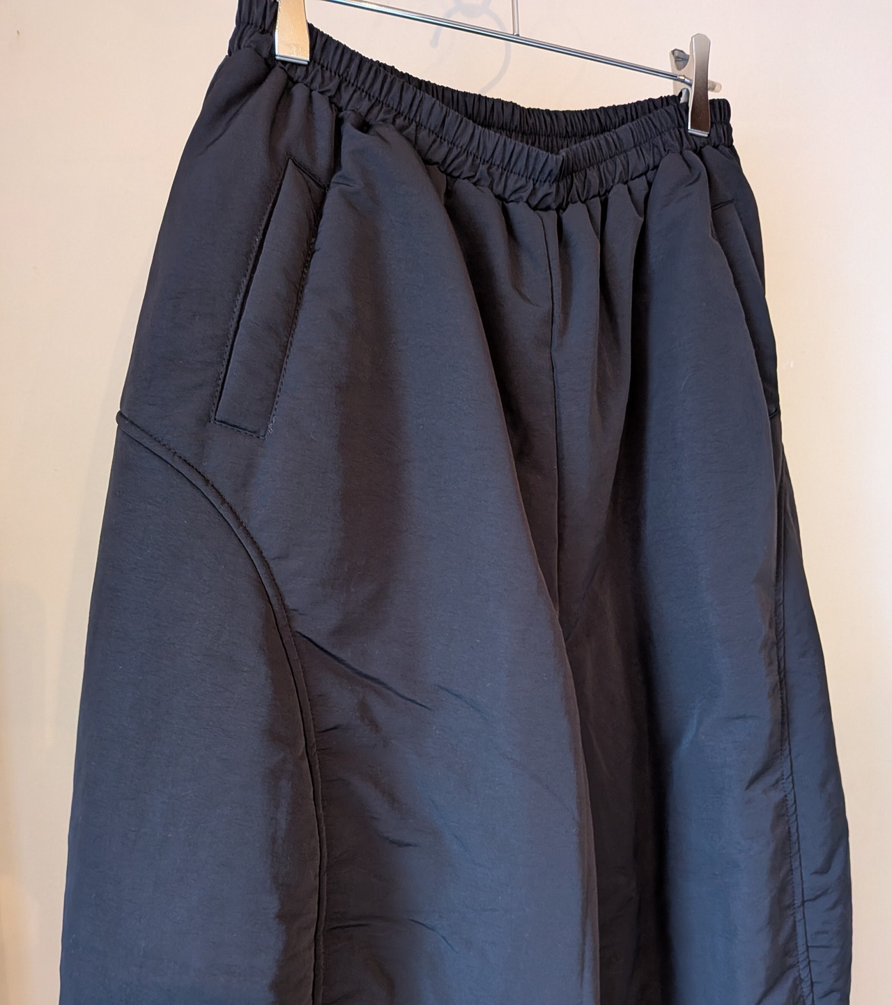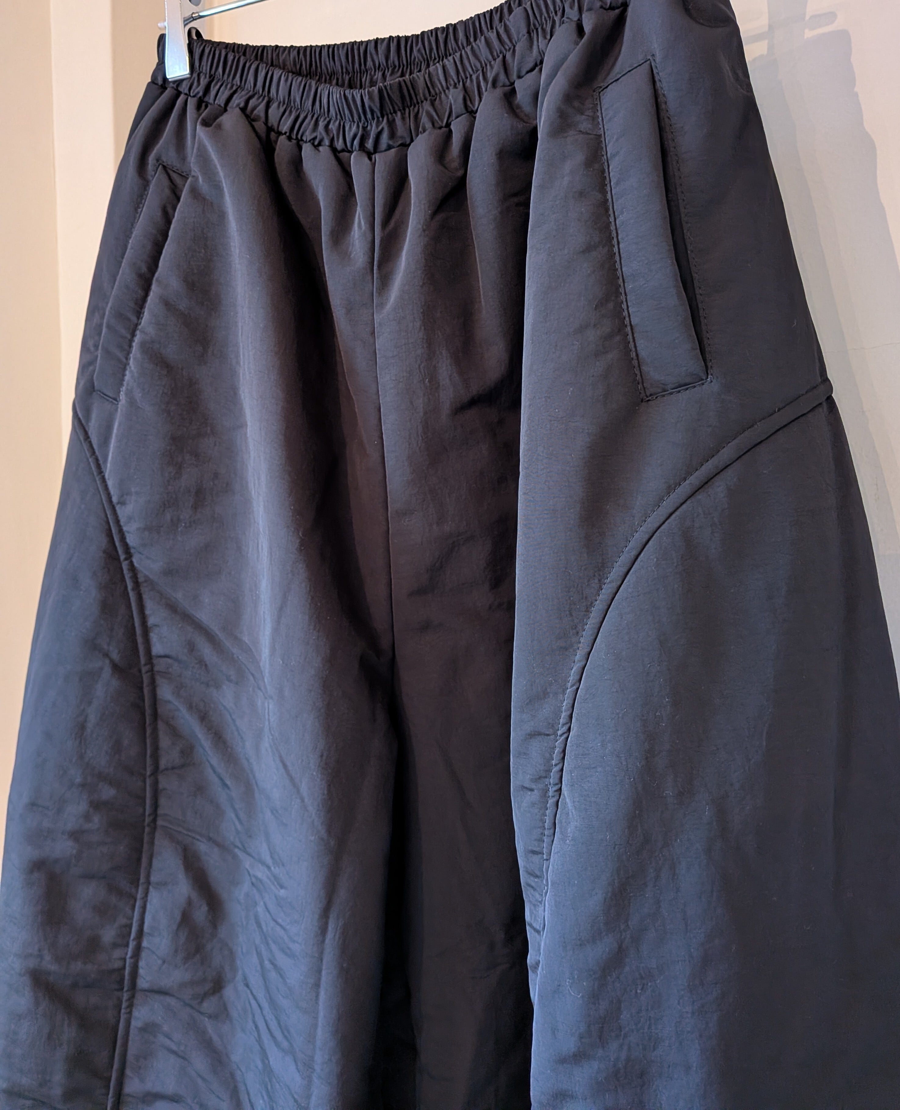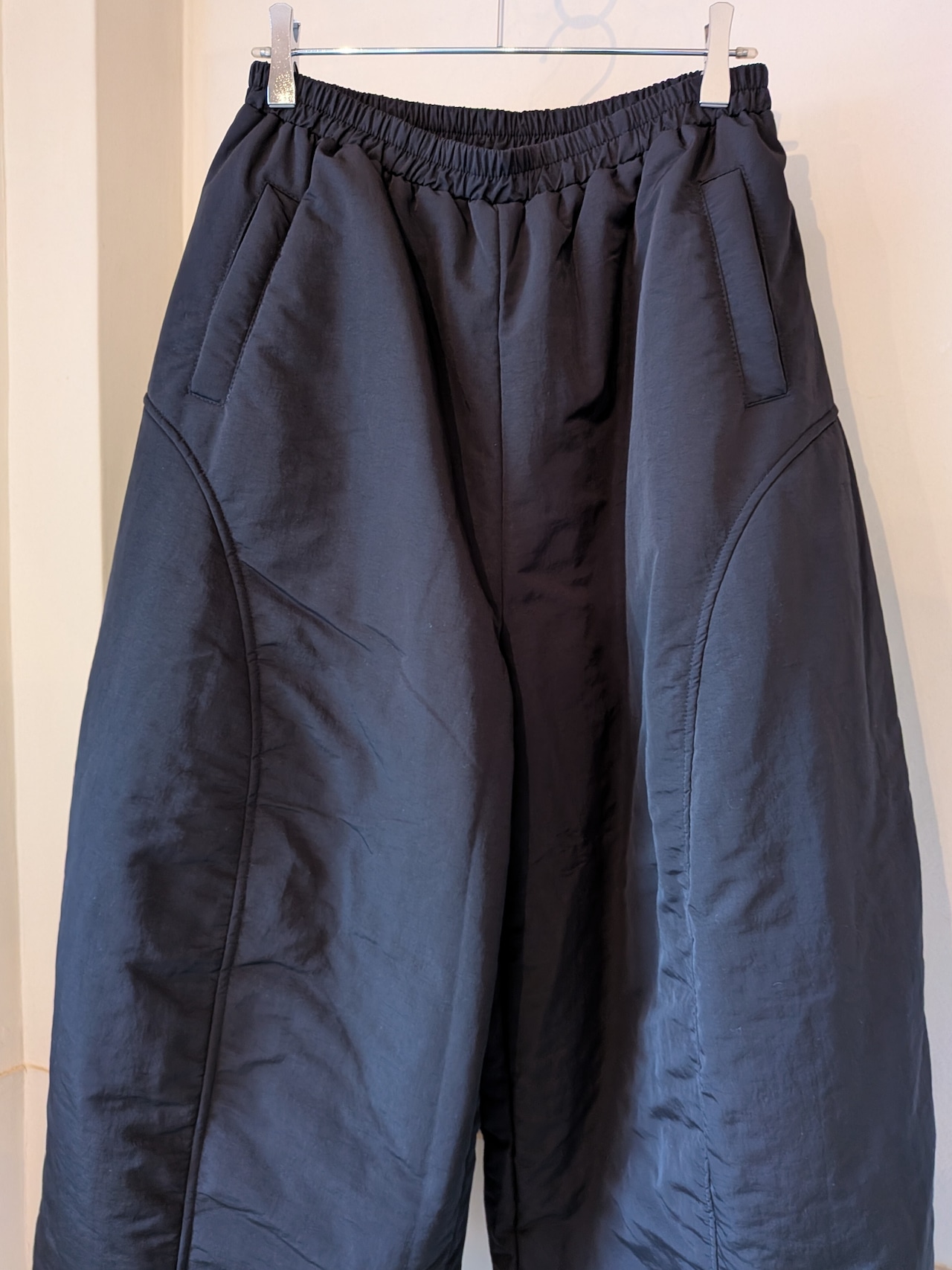 ポリエステル中綿の入ったワイドパンツです。