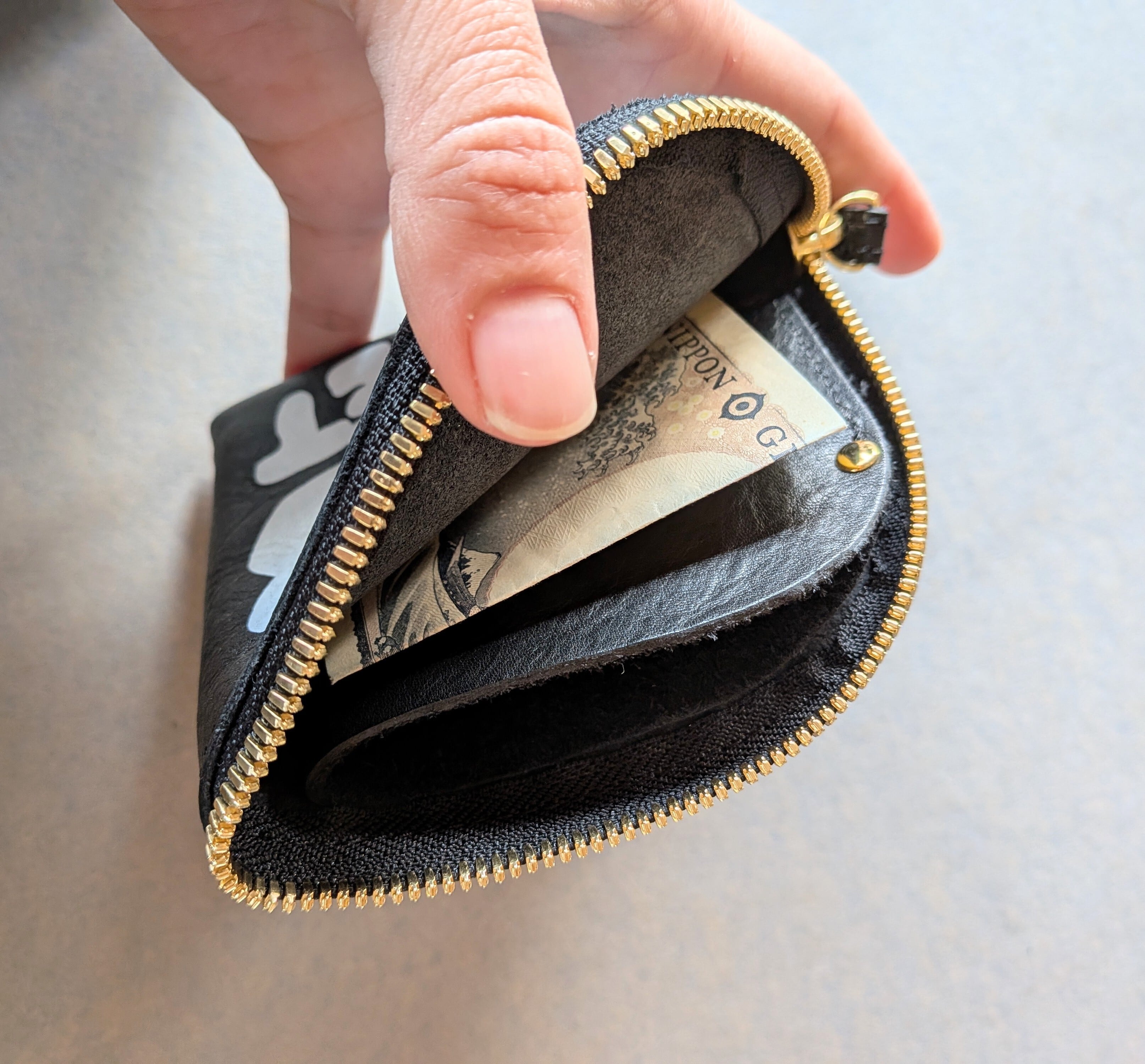 シンプルなデザインのジップのお財布です。