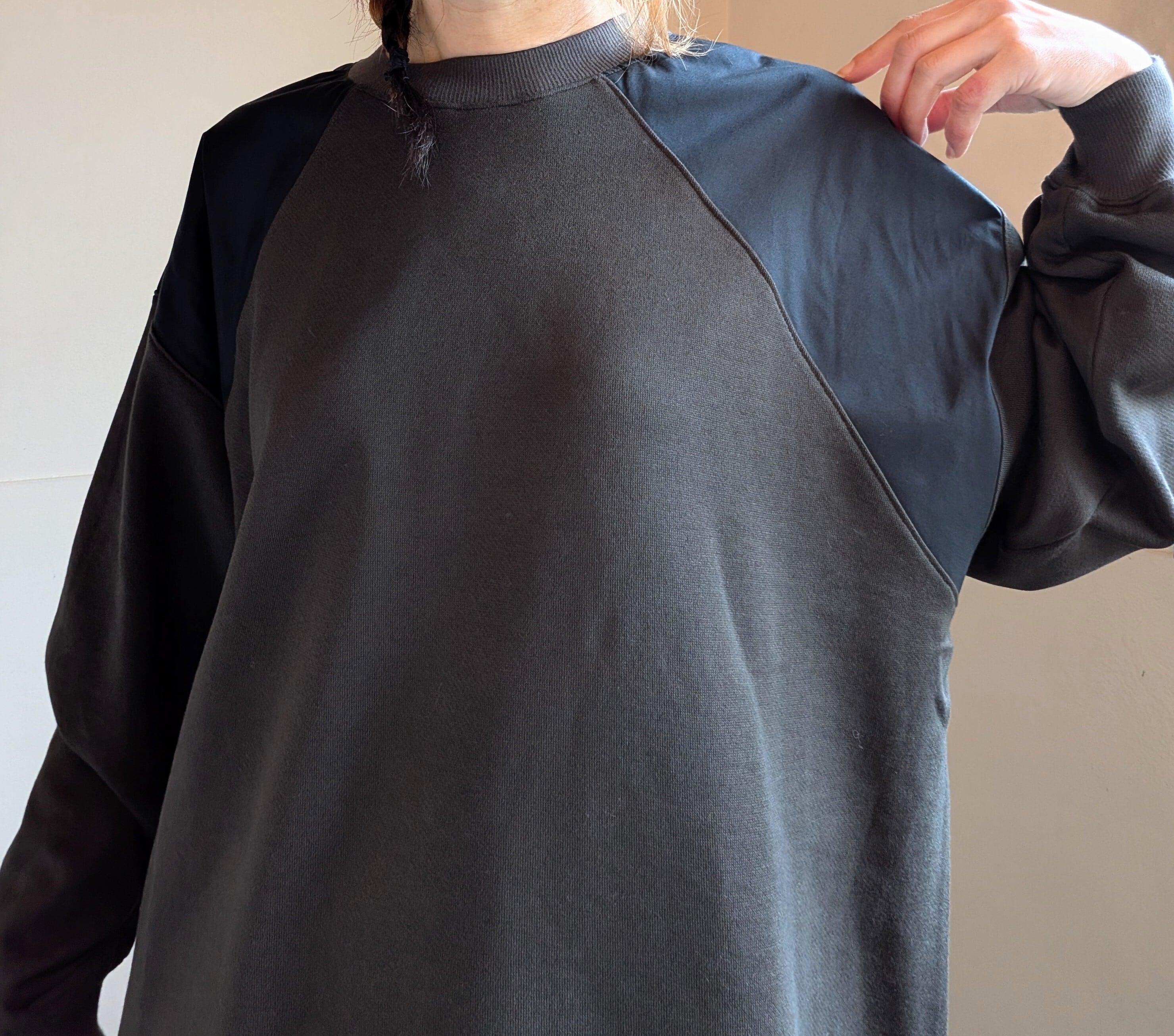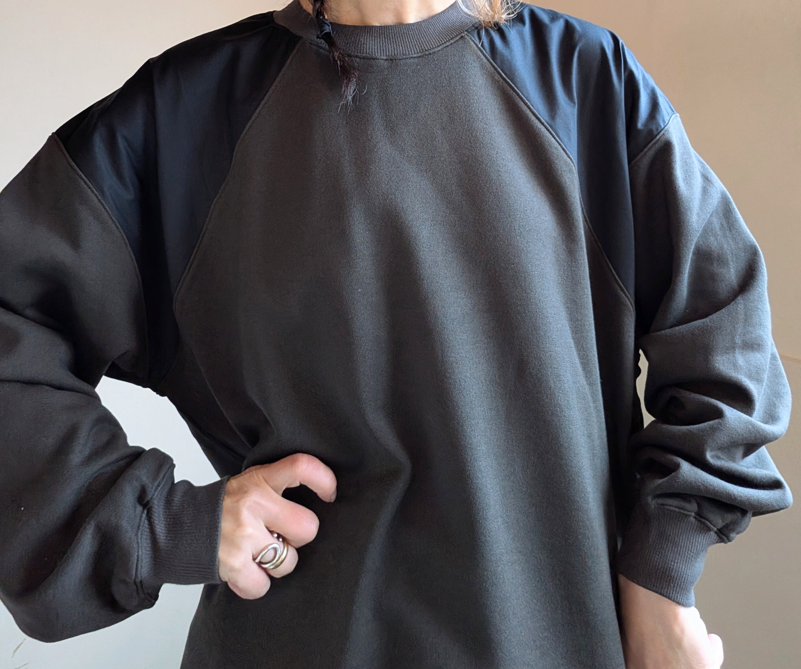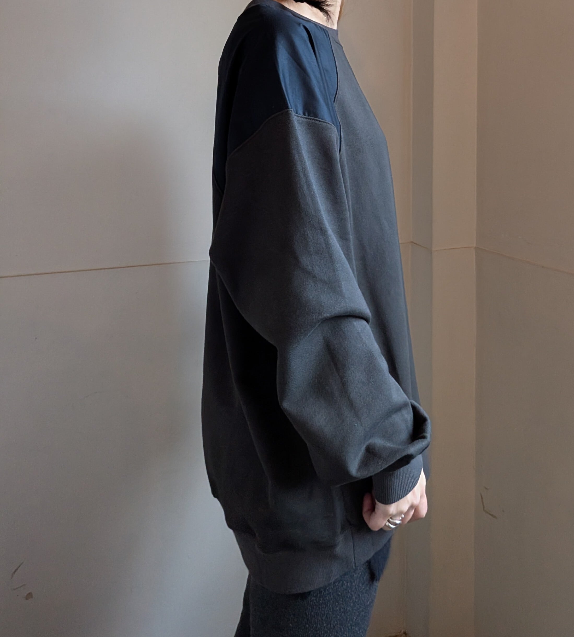 [ oto ]オト / 裏毛布帛切替プルオーバー / チャコール