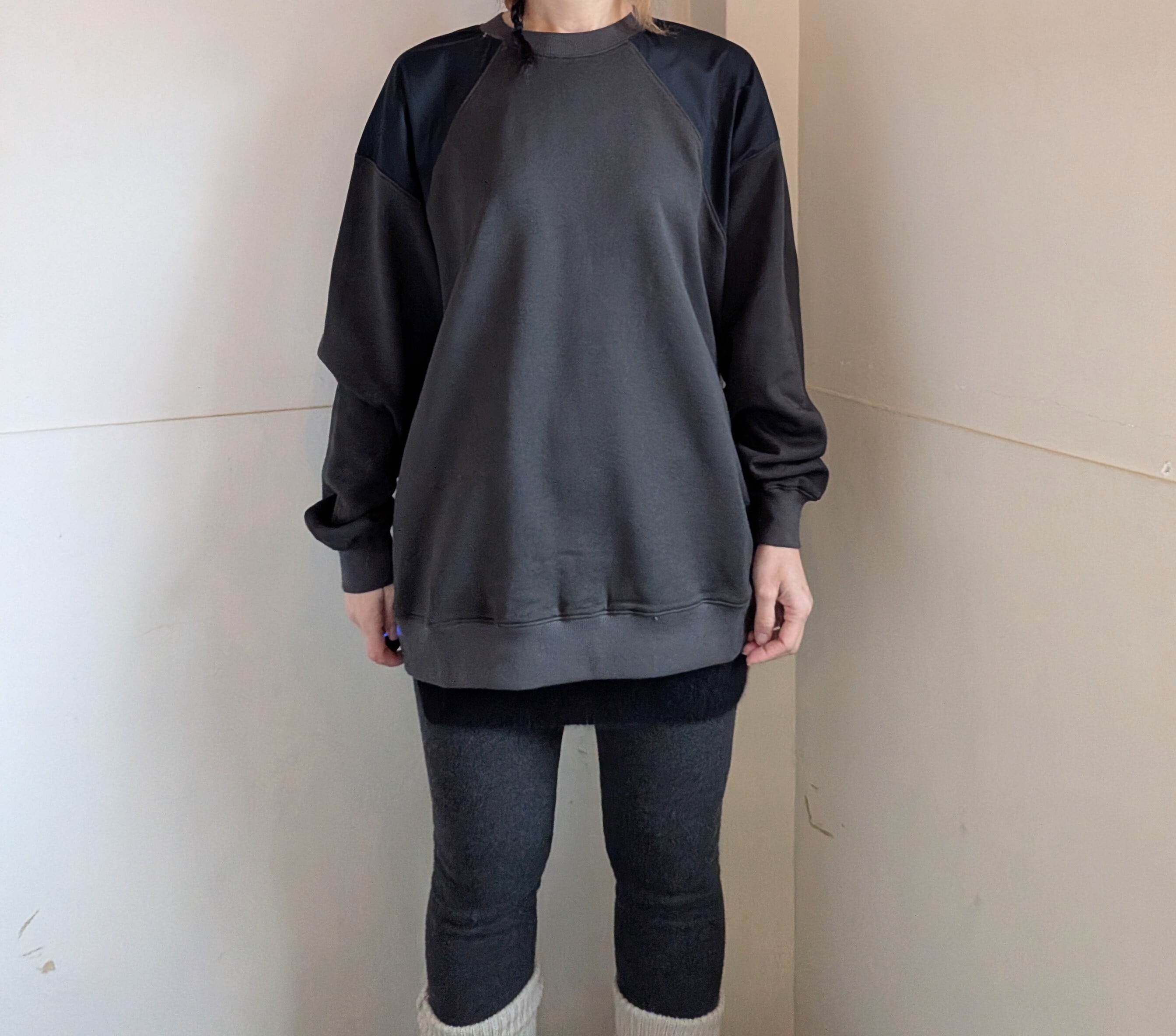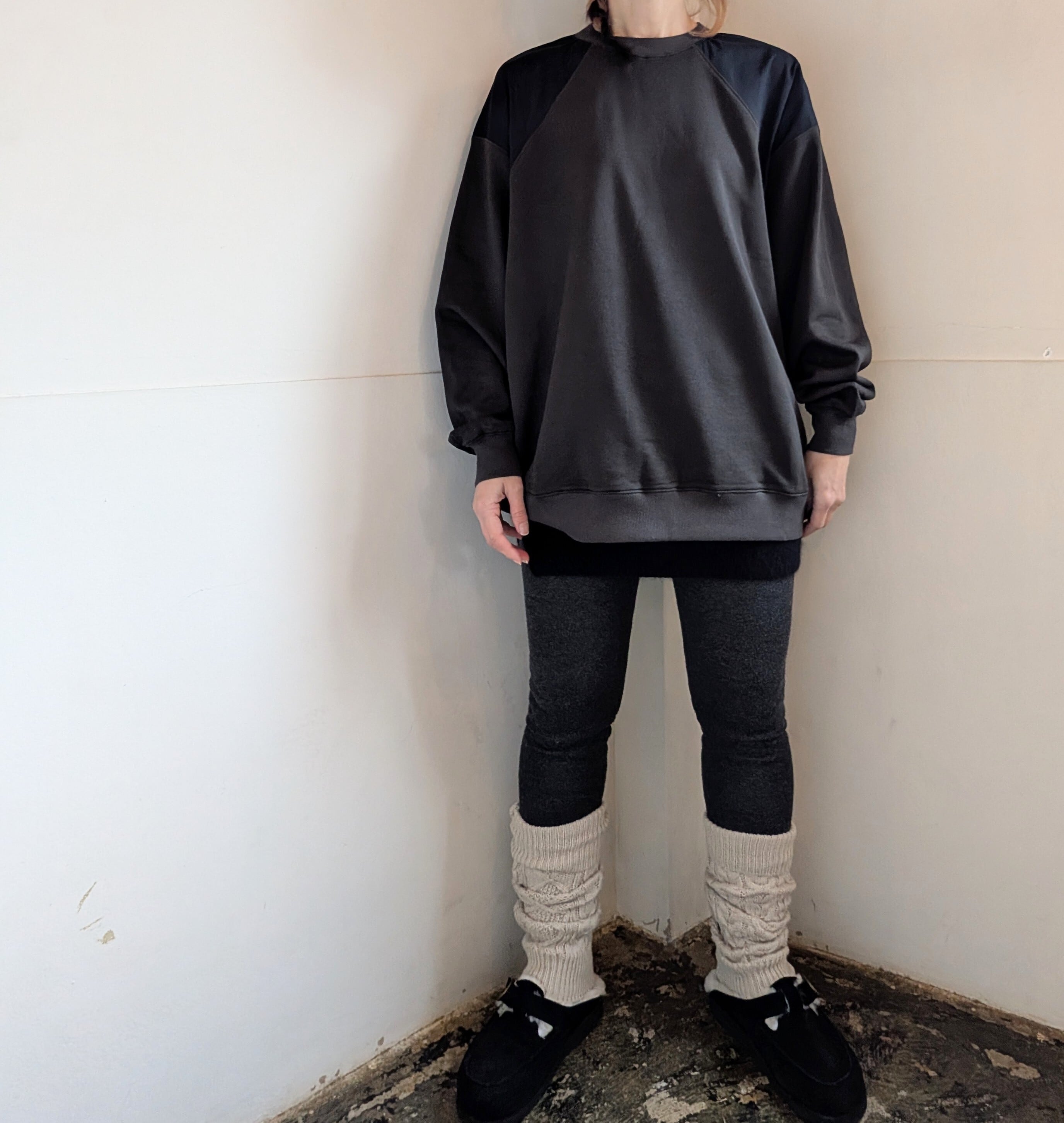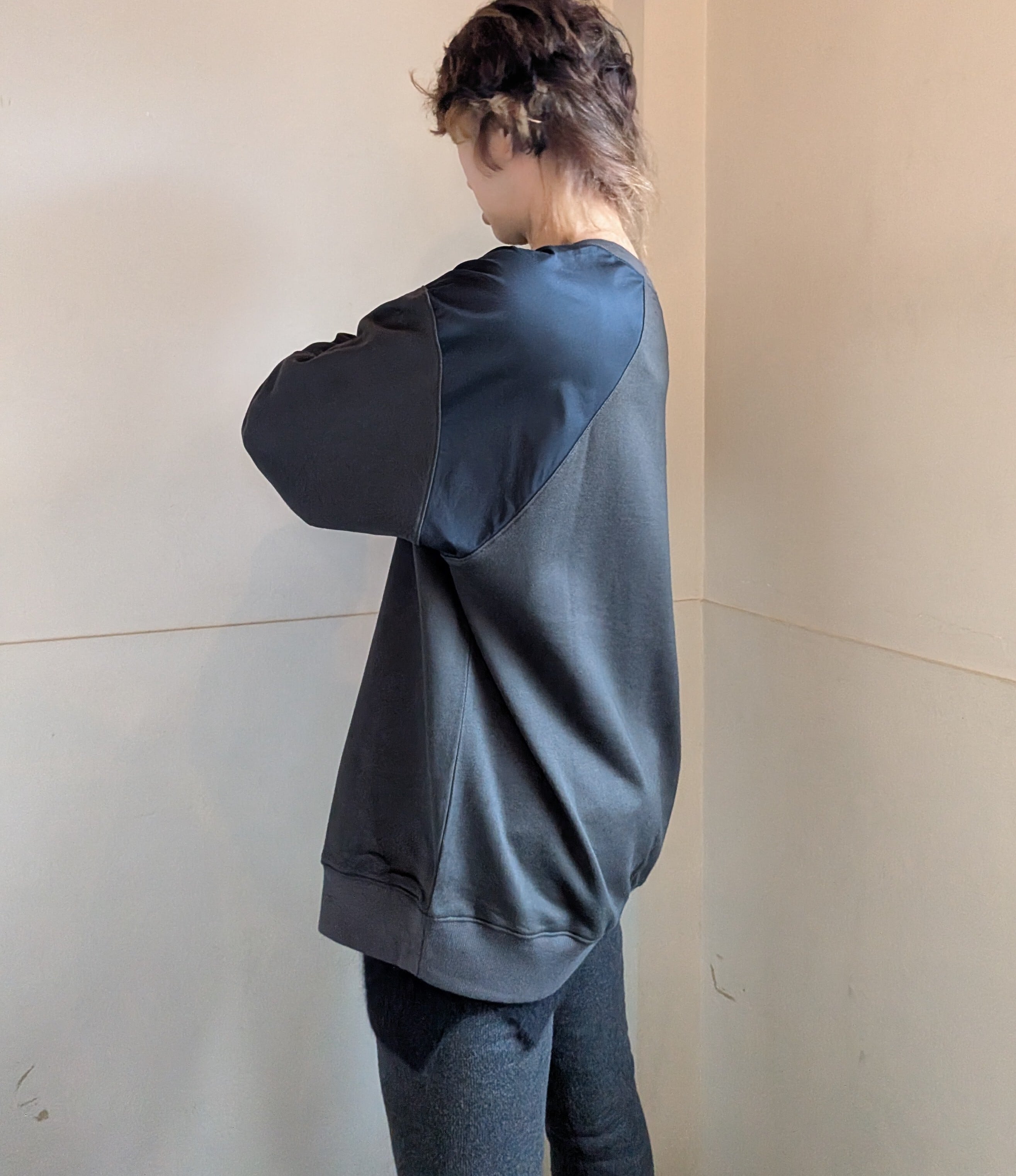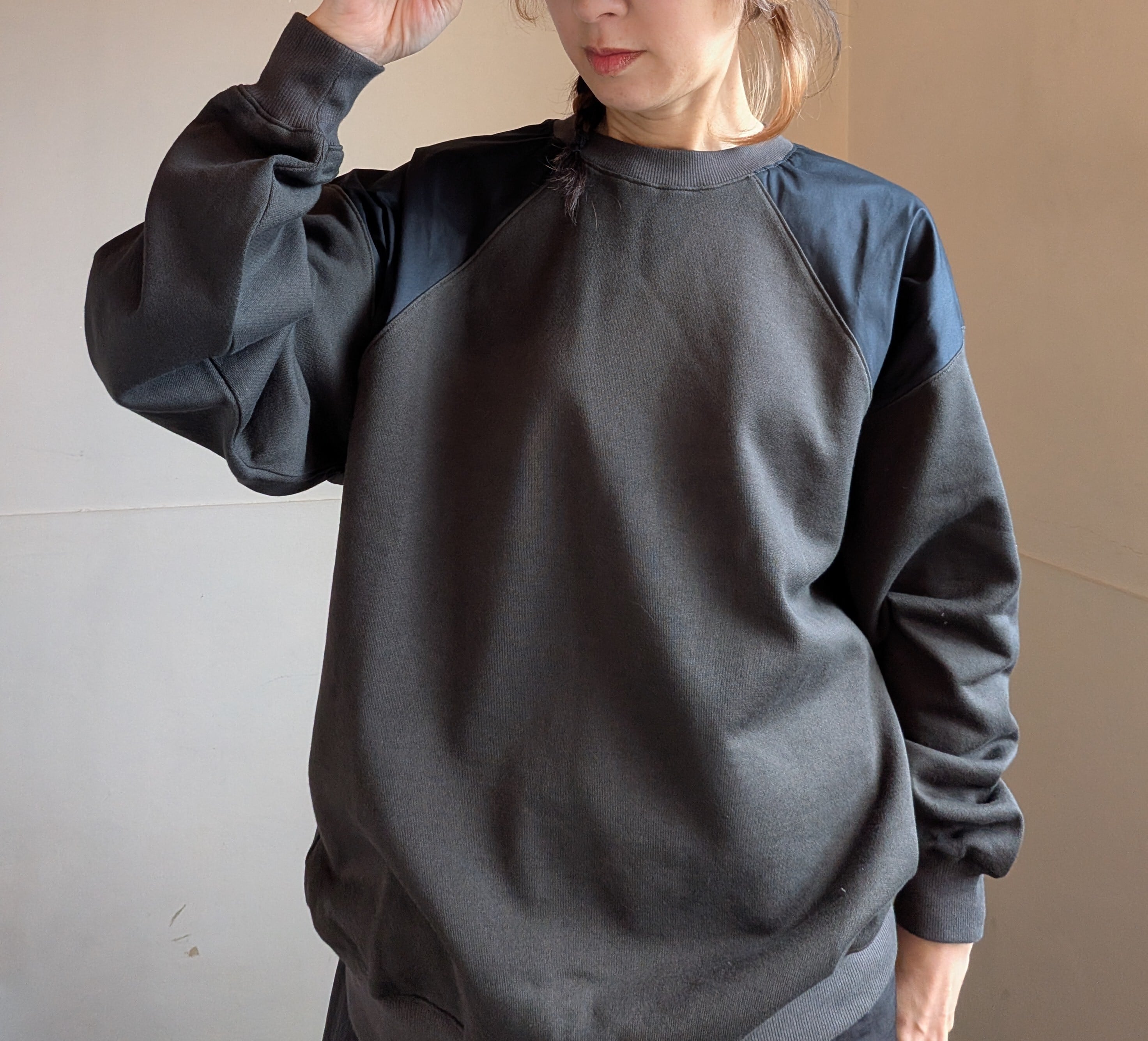 [ oto ]オト / 裏毛布帛切替プルオーバー / チャコール