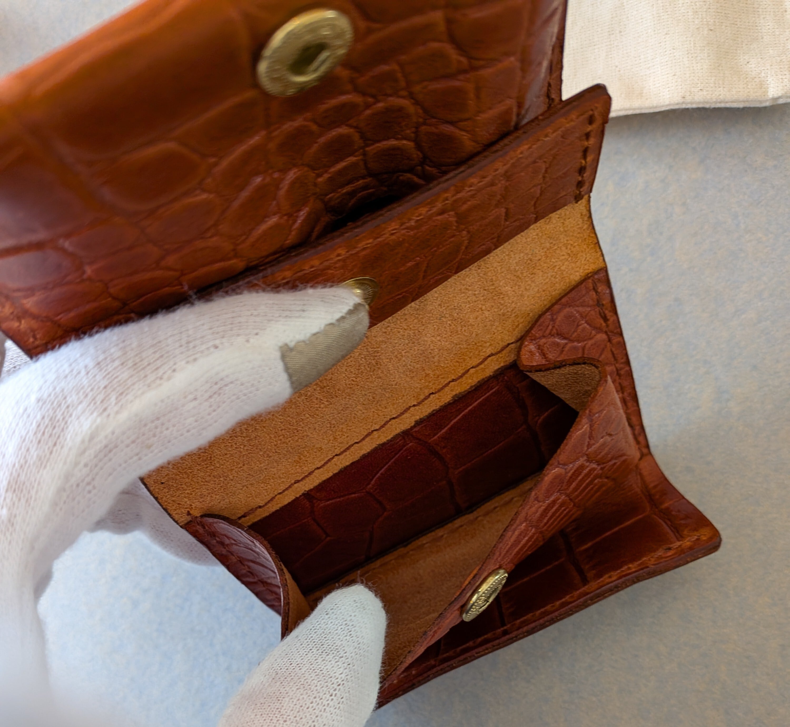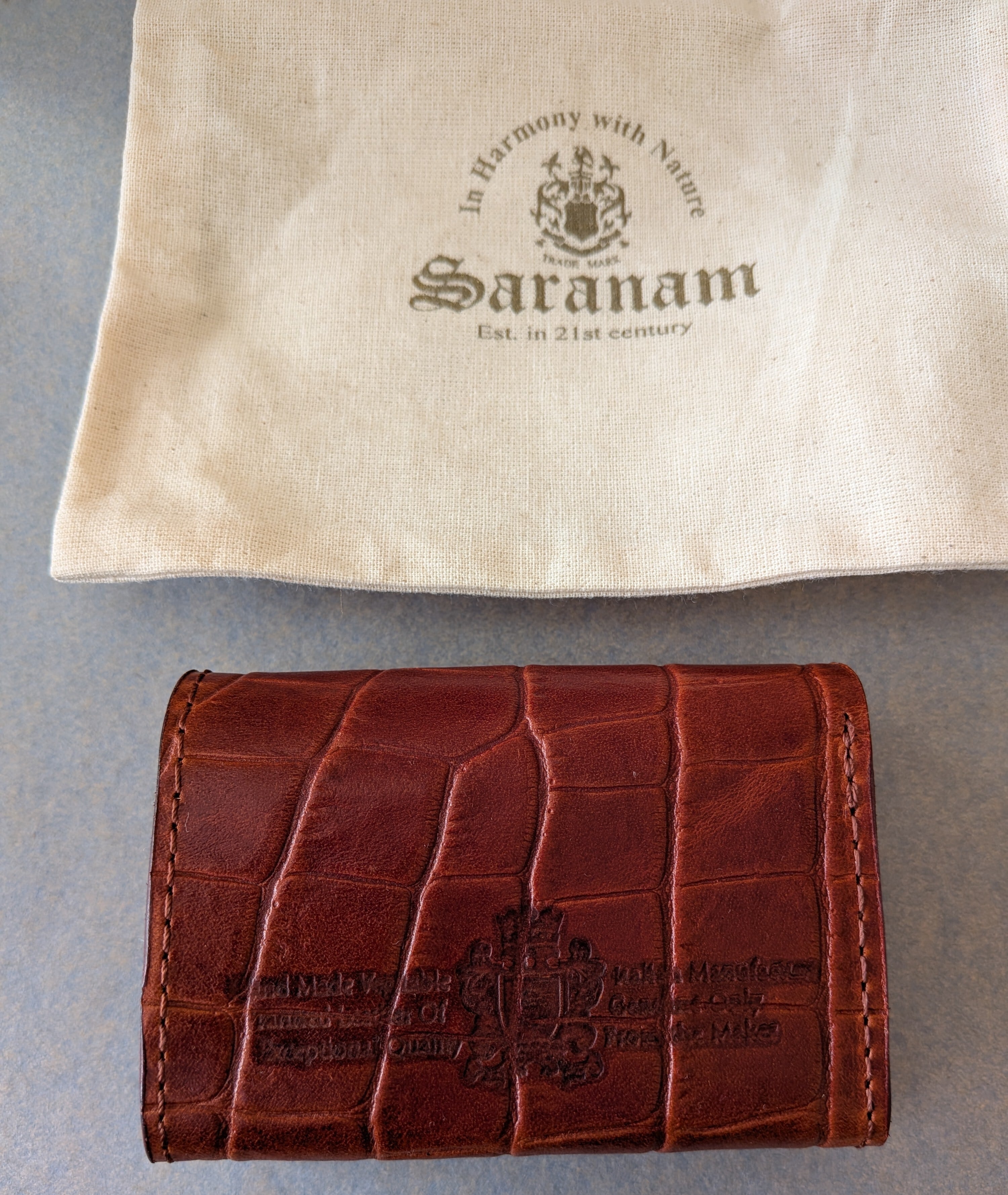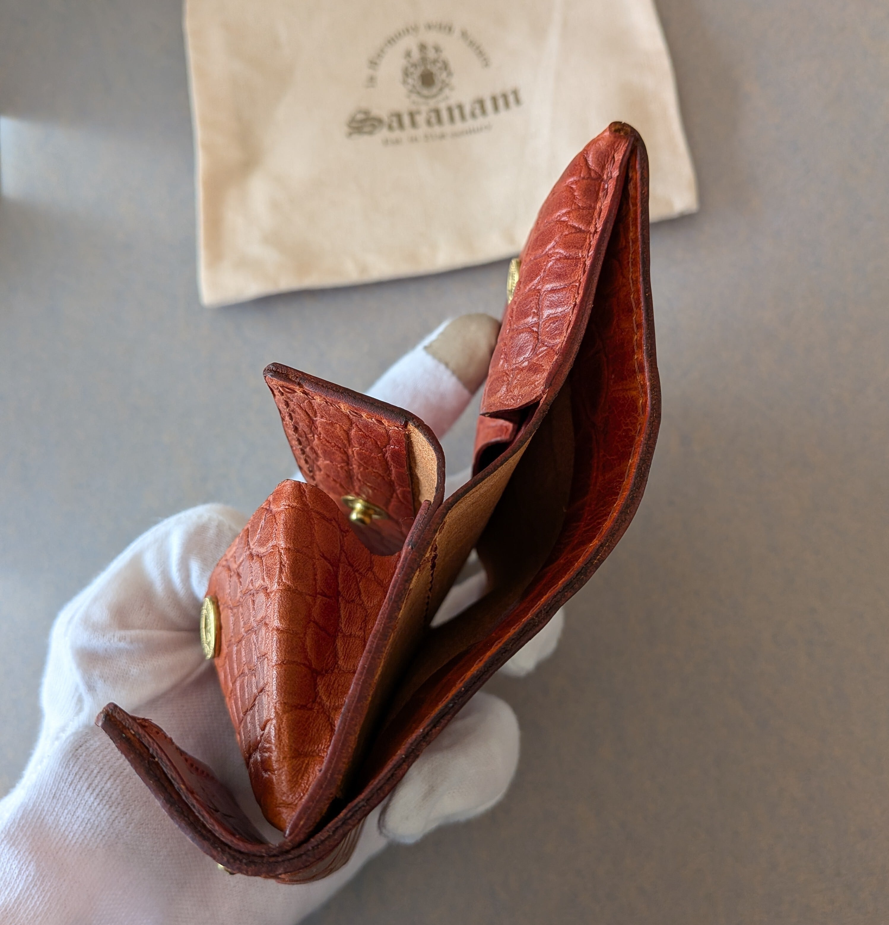 ☆別注革☆[ saranam ]サラナン / トリニティーミニ財布 / クロコダイル型押し / BROWN