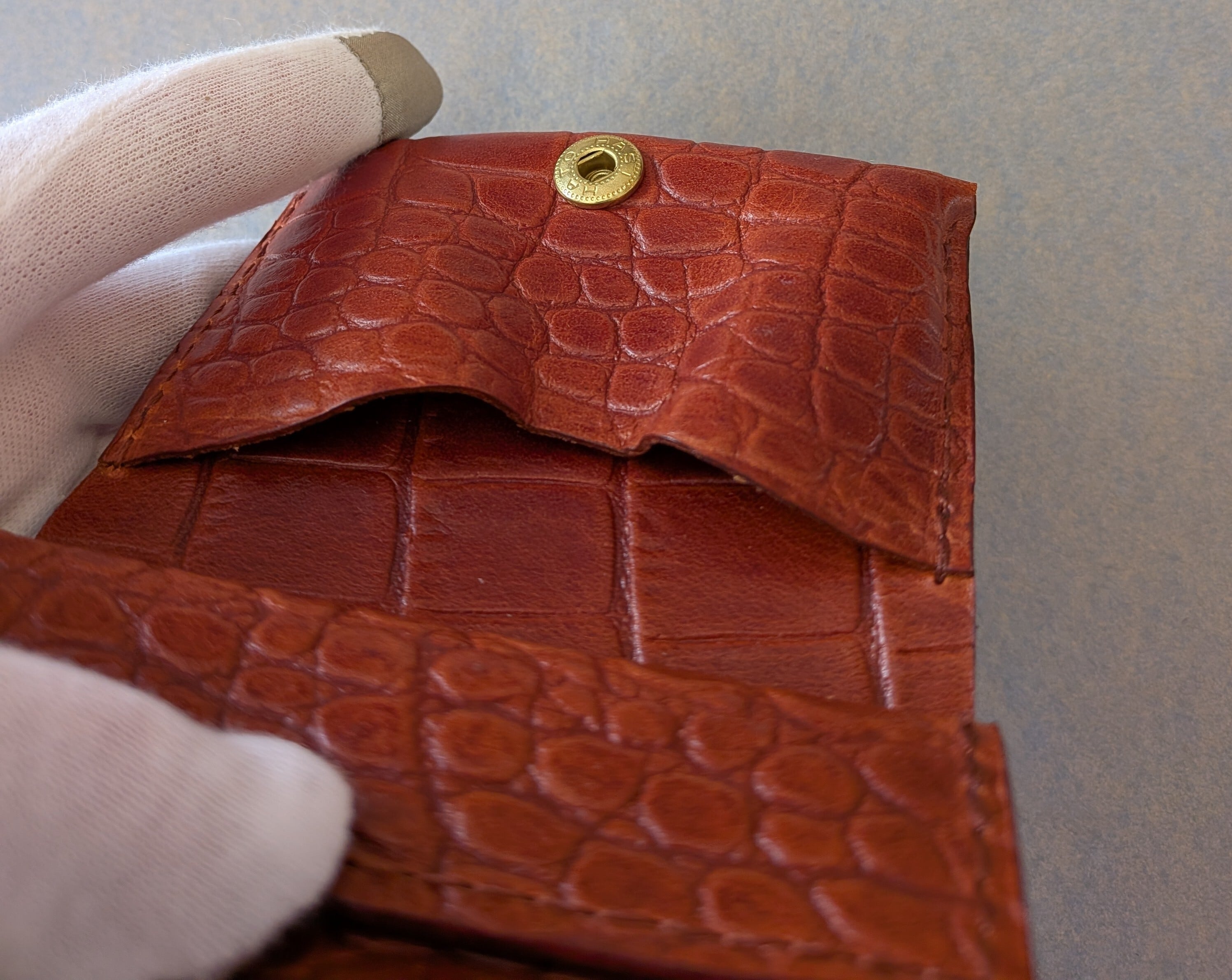 牛革に型押しのクロコダイル柄を使用しています。