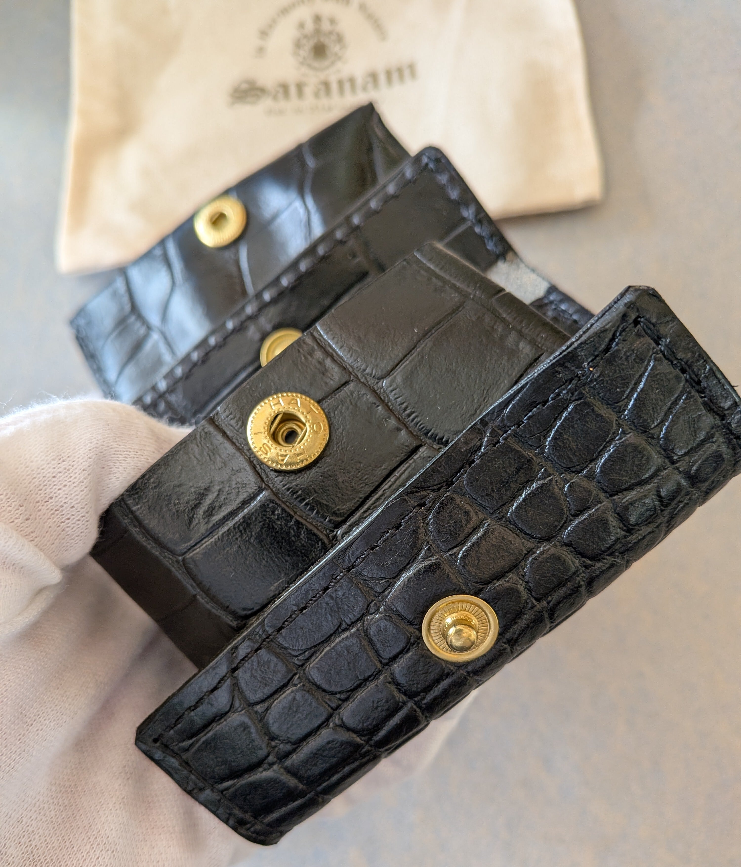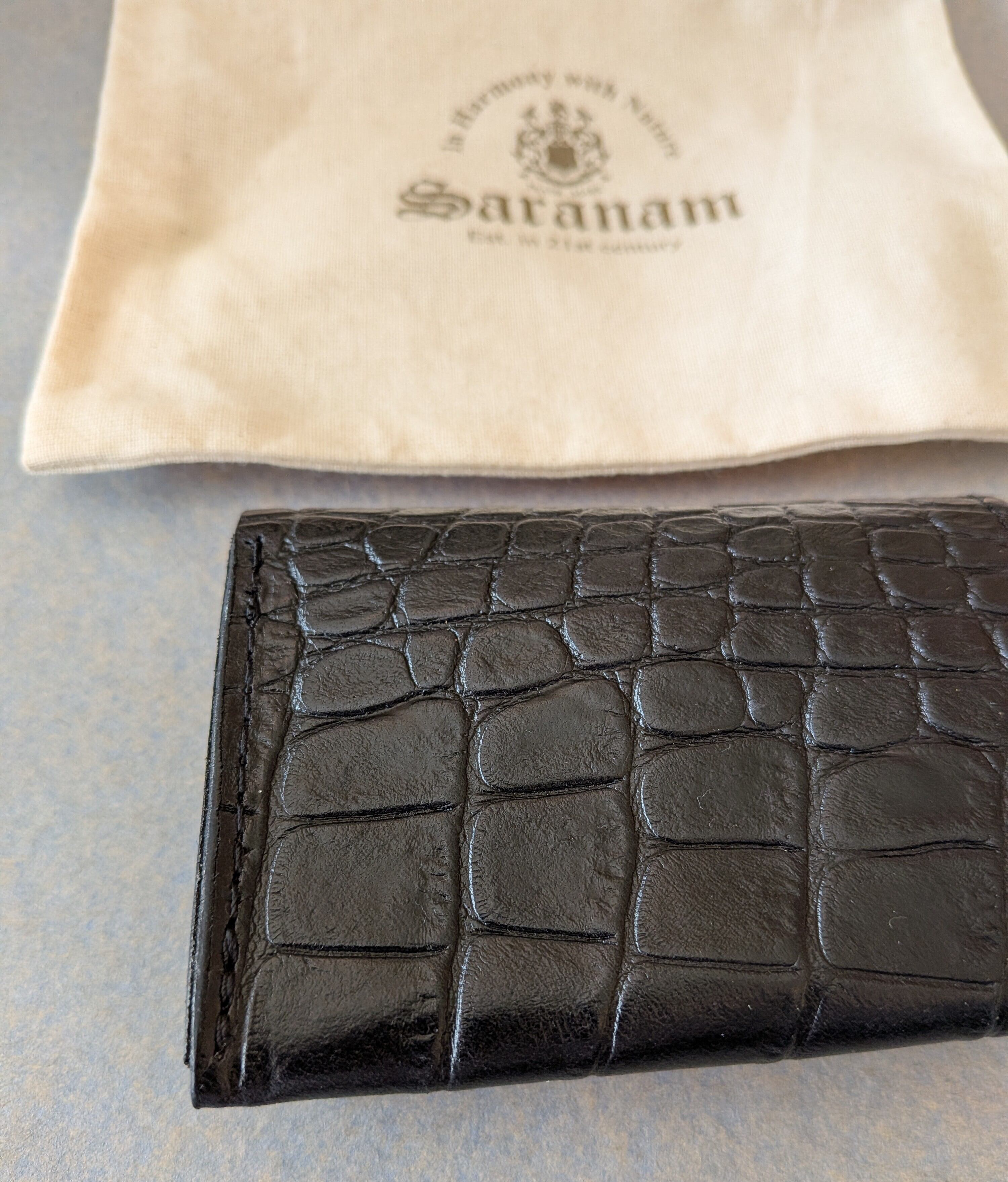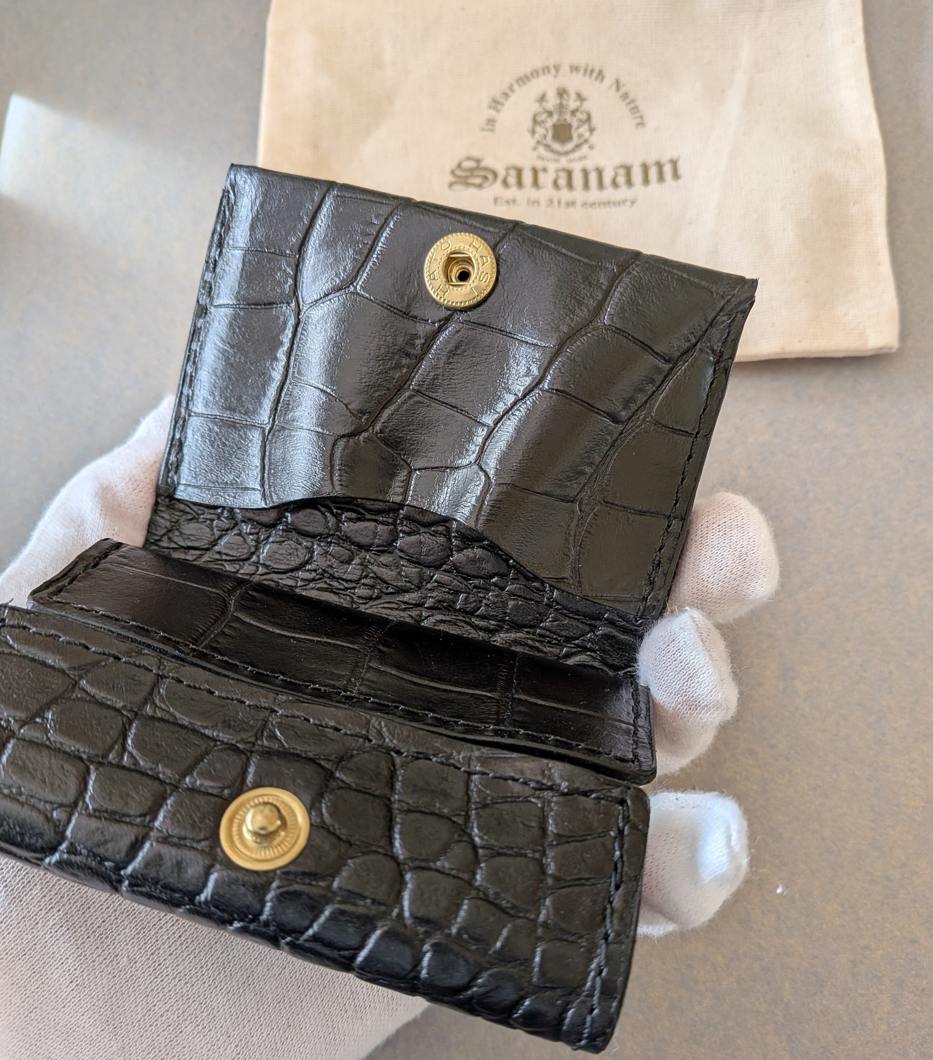 ☆別注革☆[ saranam ]サラナン / トリニティーミニ財布 / クロコダイル型押し / BLACK