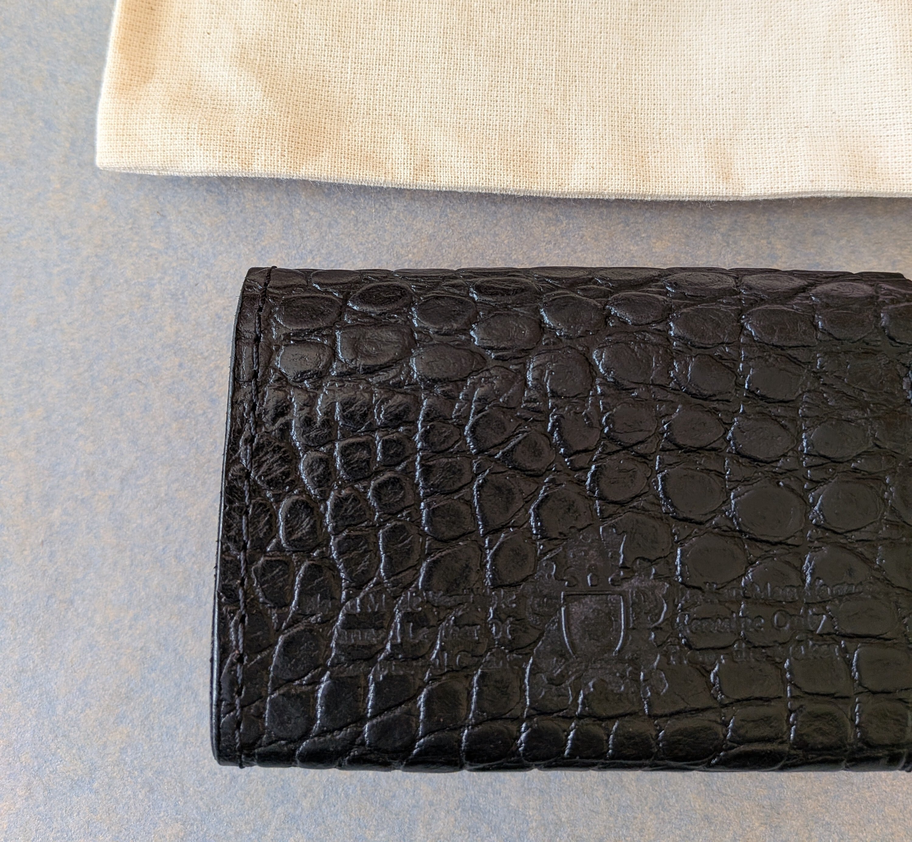 牛革に型押しのクロコダイル柄を使用しています。