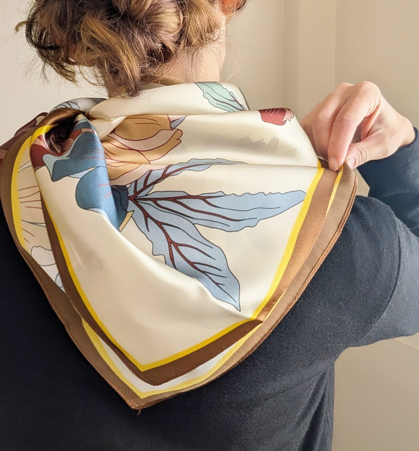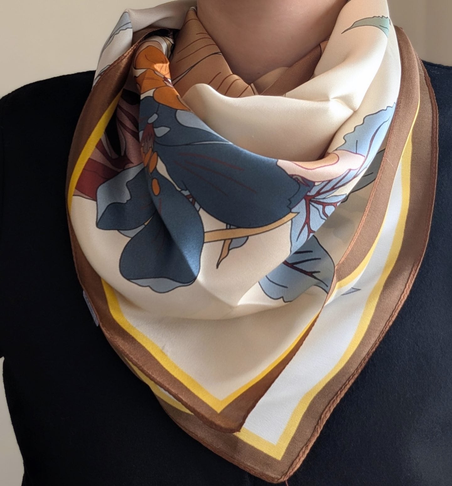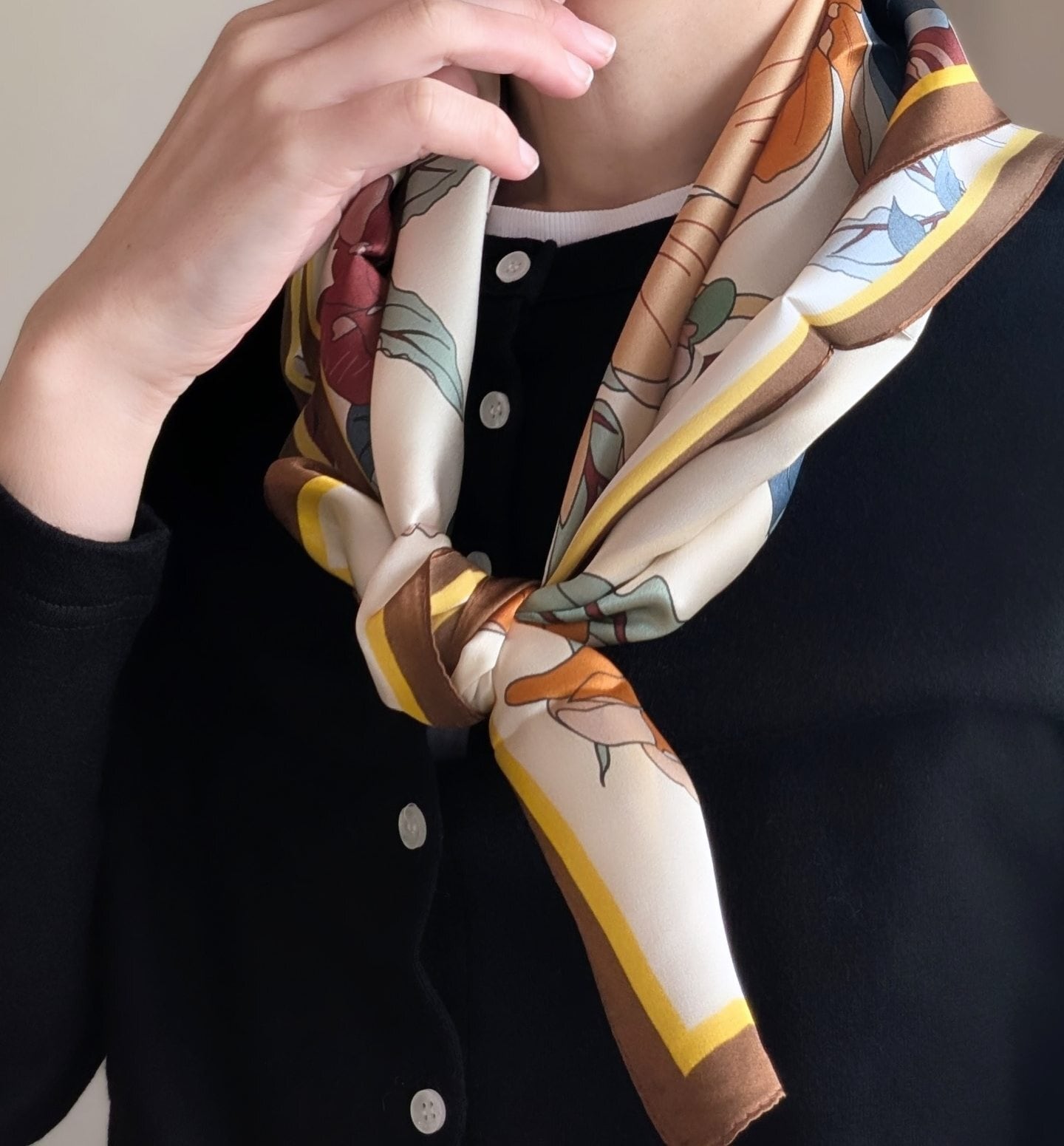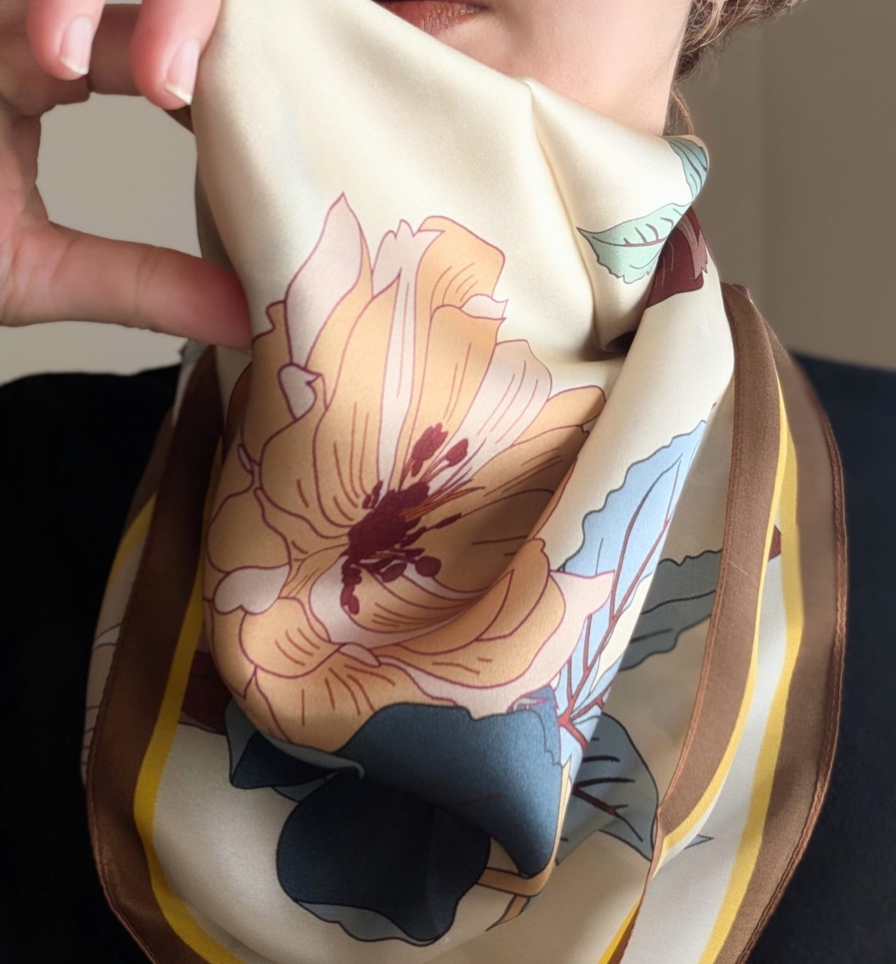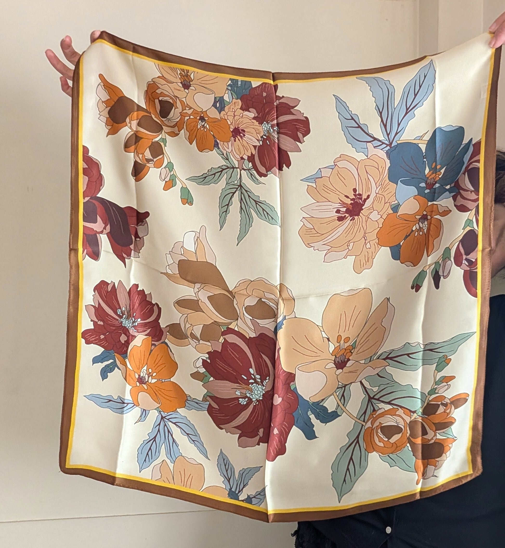 シルクスカーフ / クリーム地に大花柄 / 65×65cm