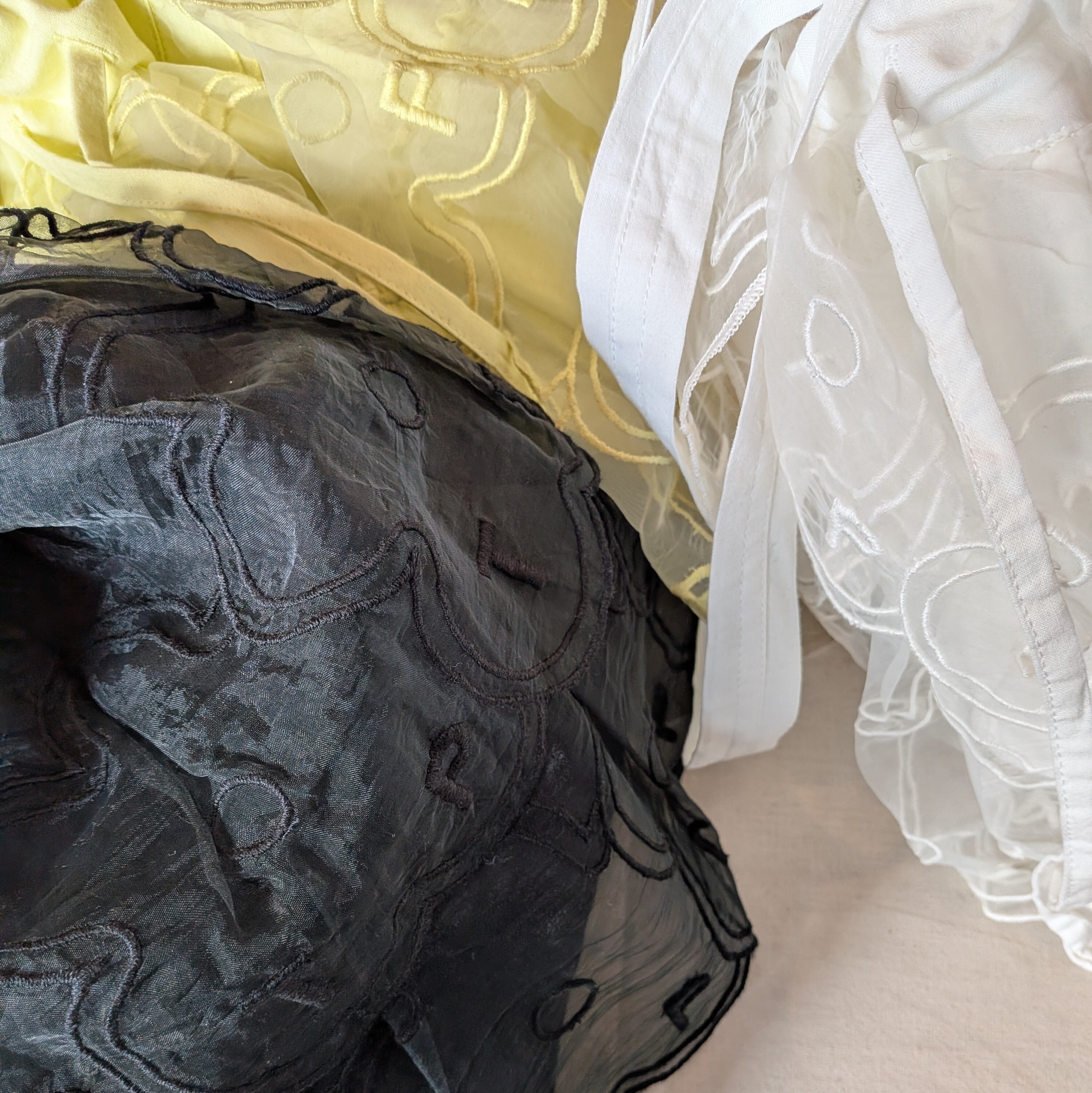 オーガンジー素材のフラワーモチーフが