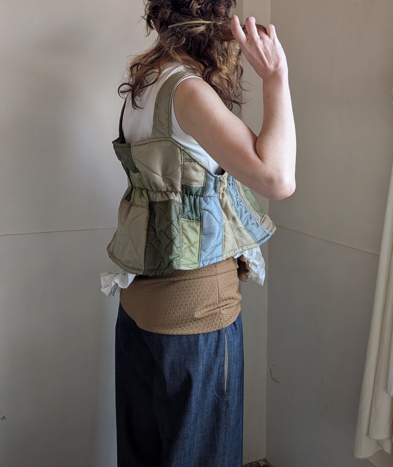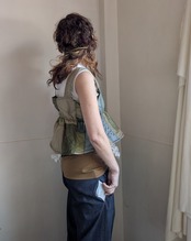 端切れを細かくパッチワークし、キャミソールに