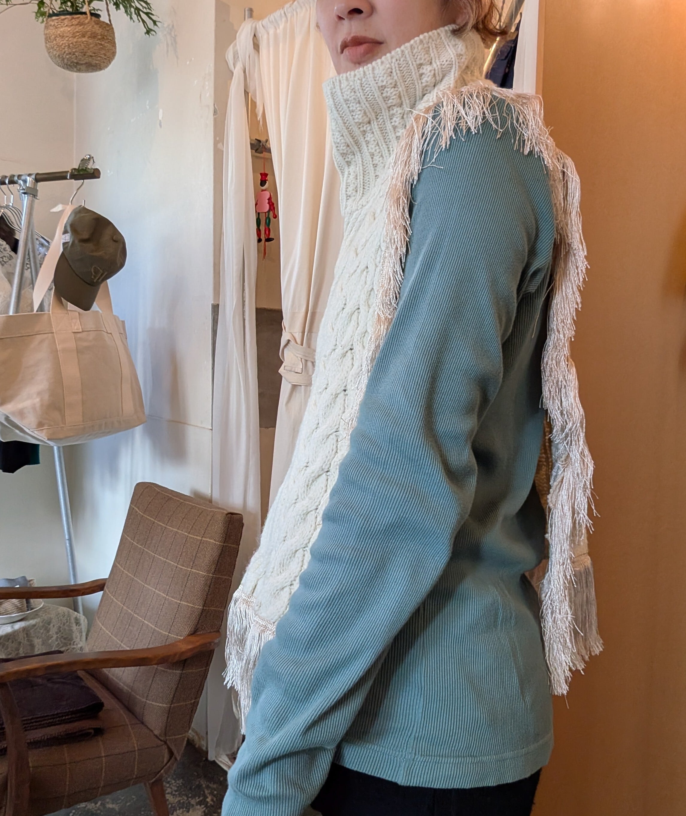 様々な古着のニットで作られたアイテム。