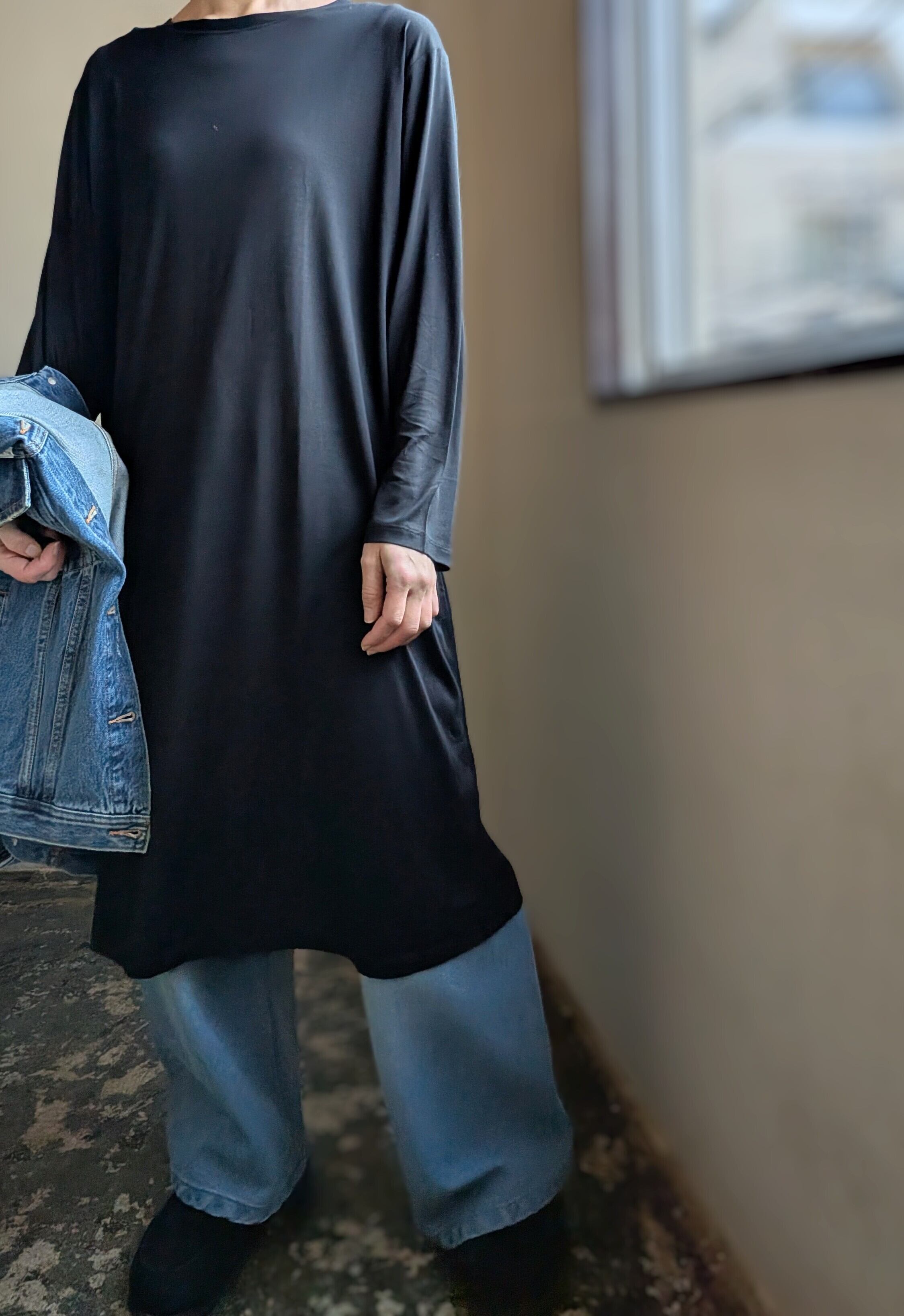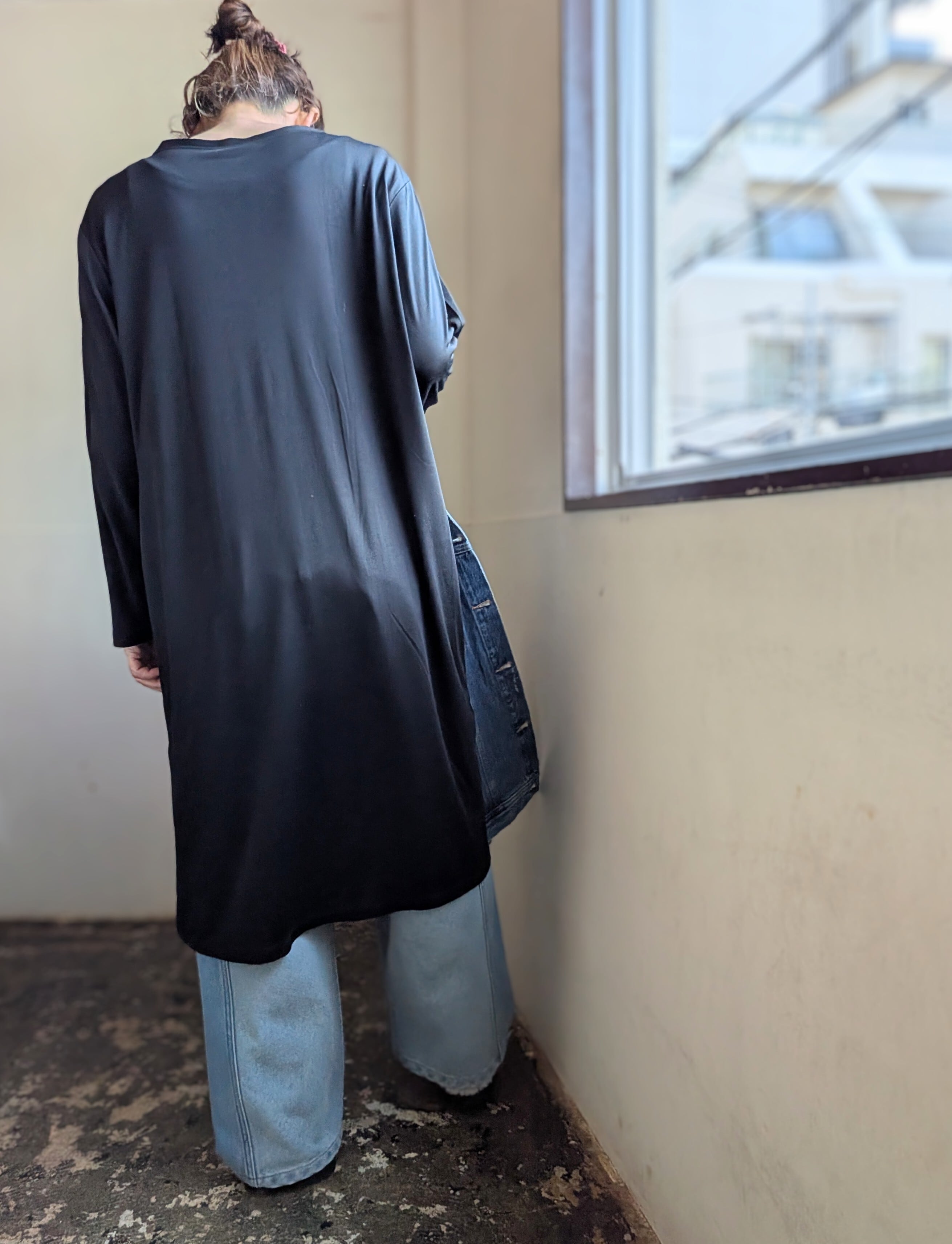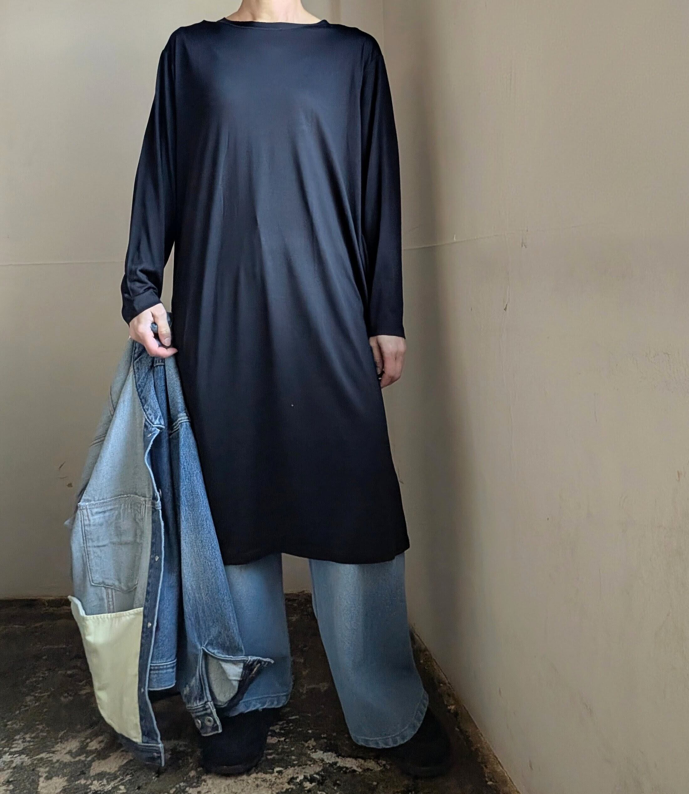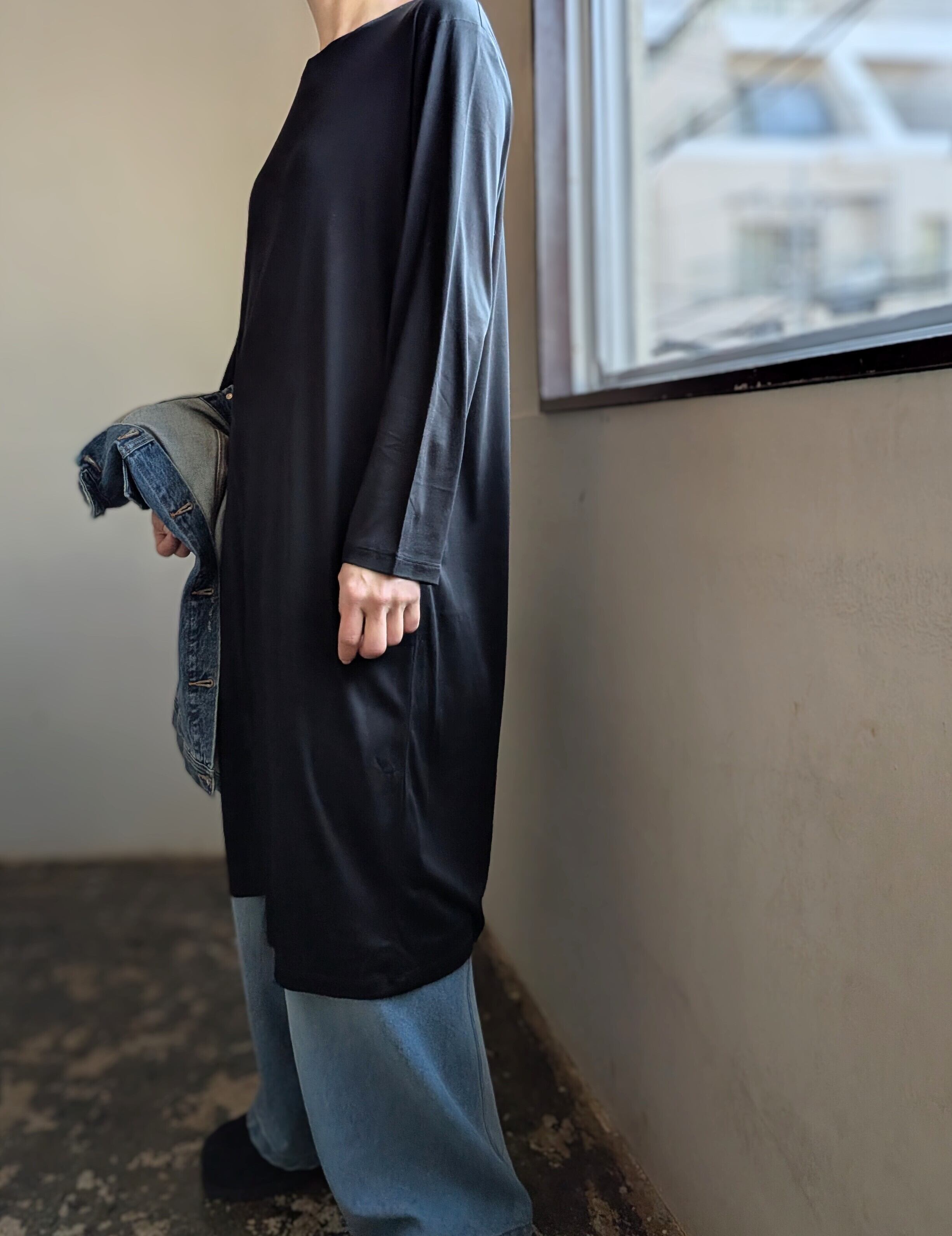 シルクニット杢長袖ワンピース / BLACK / SILK100%