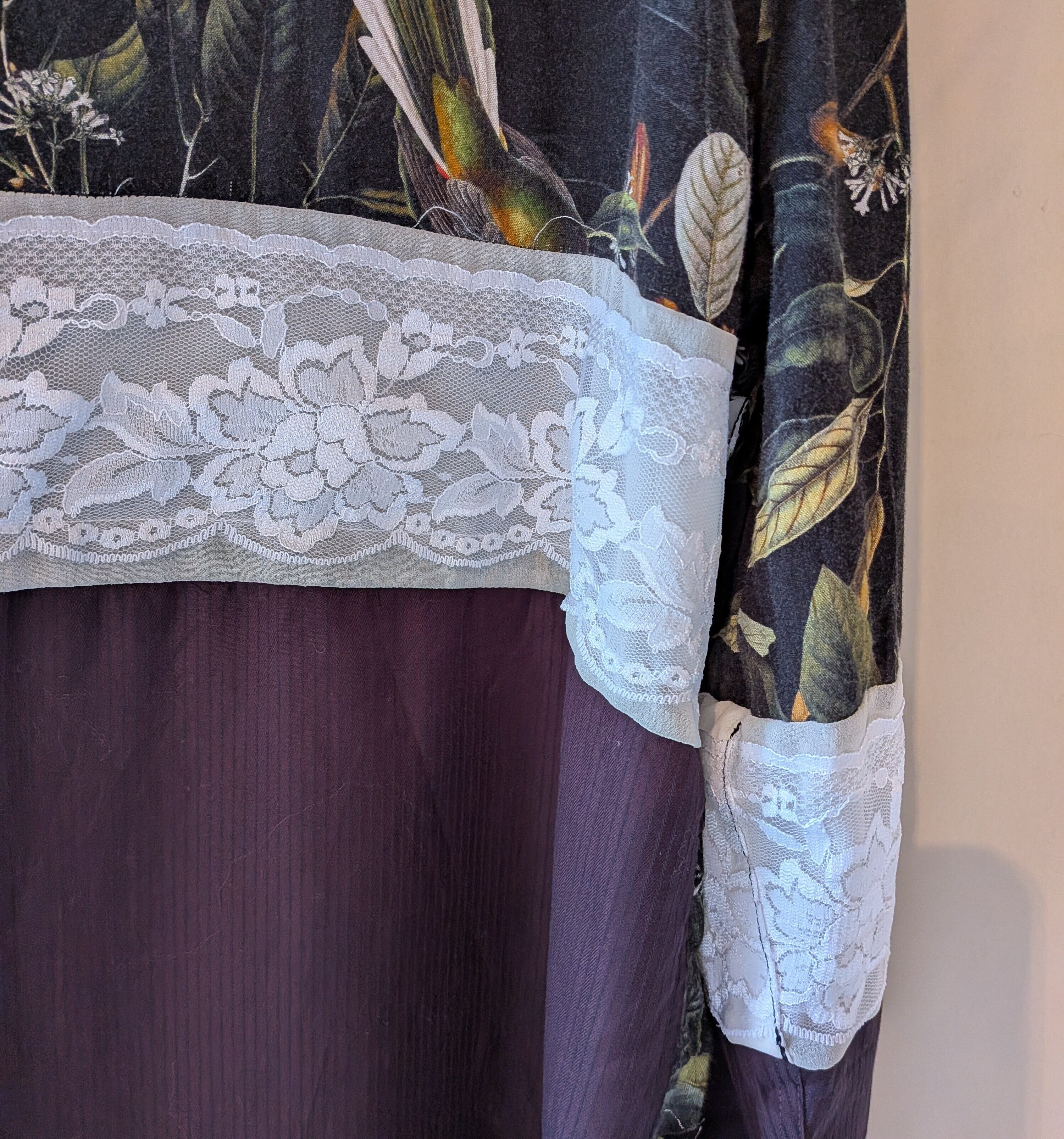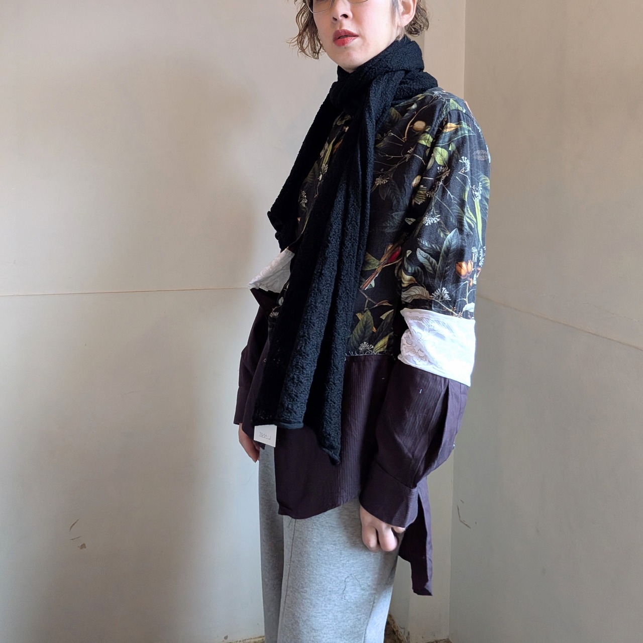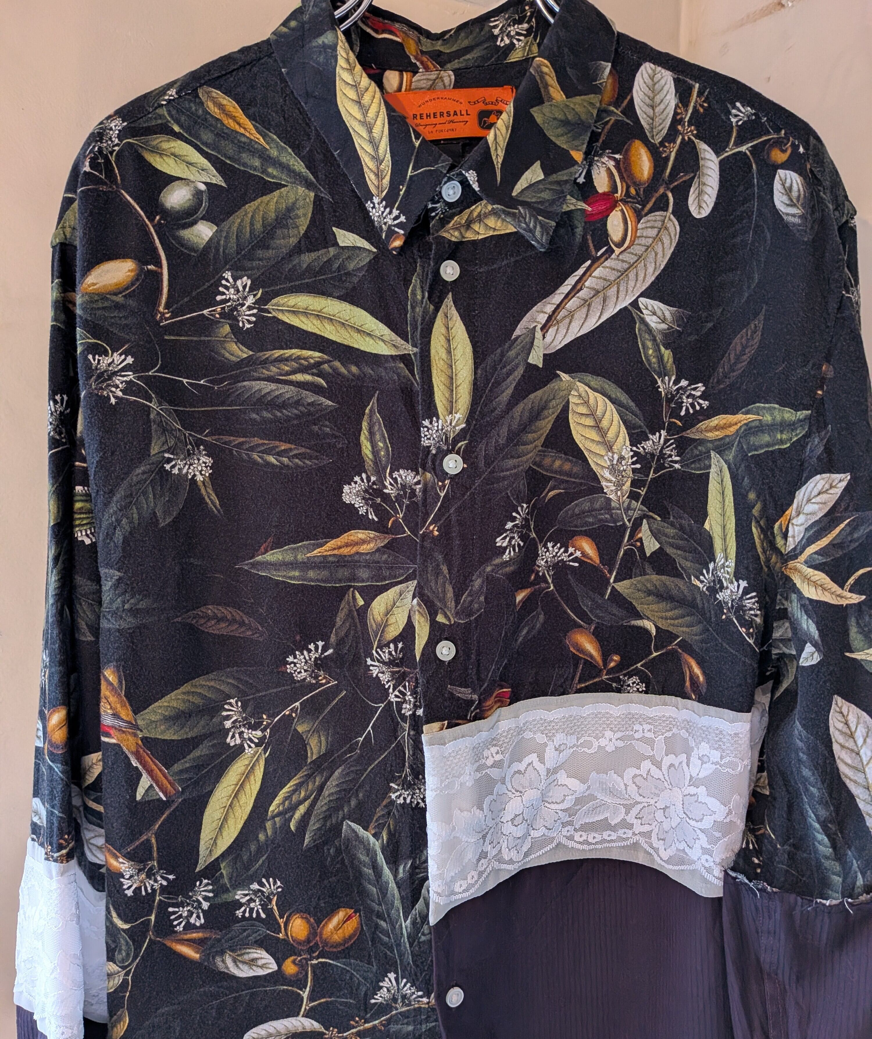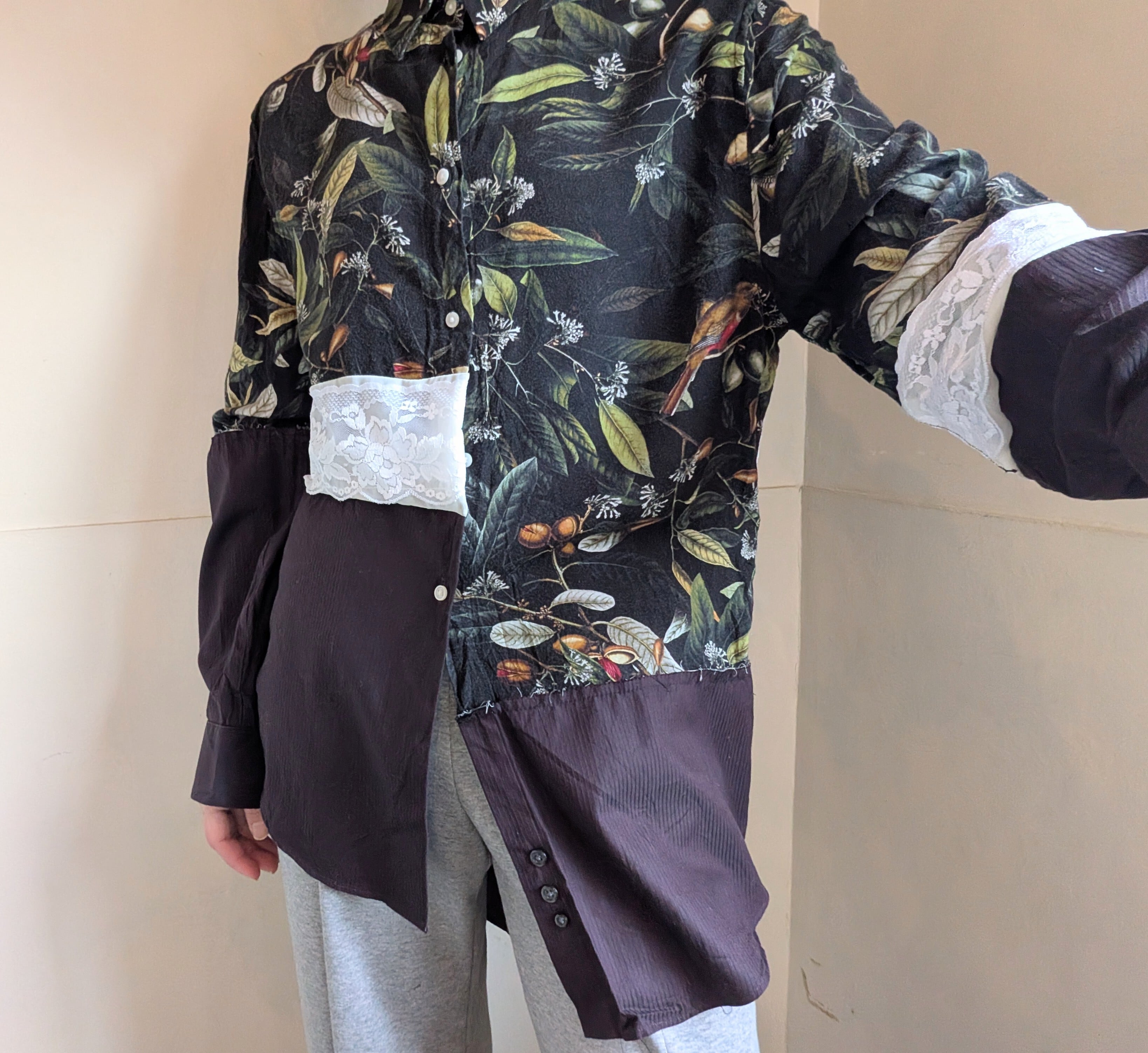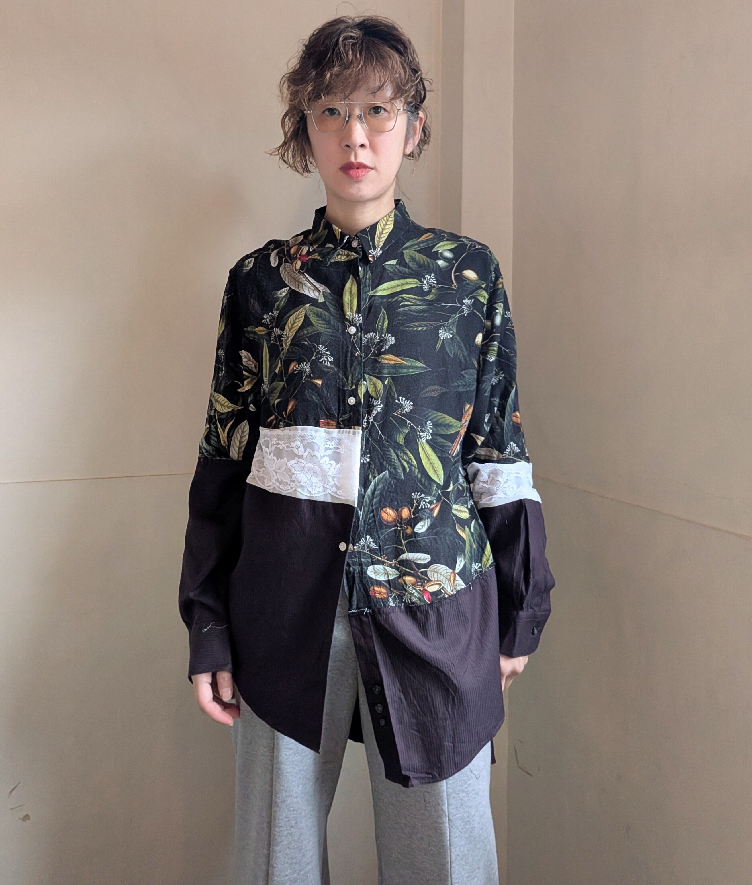 植物と鳥の柄シャツと