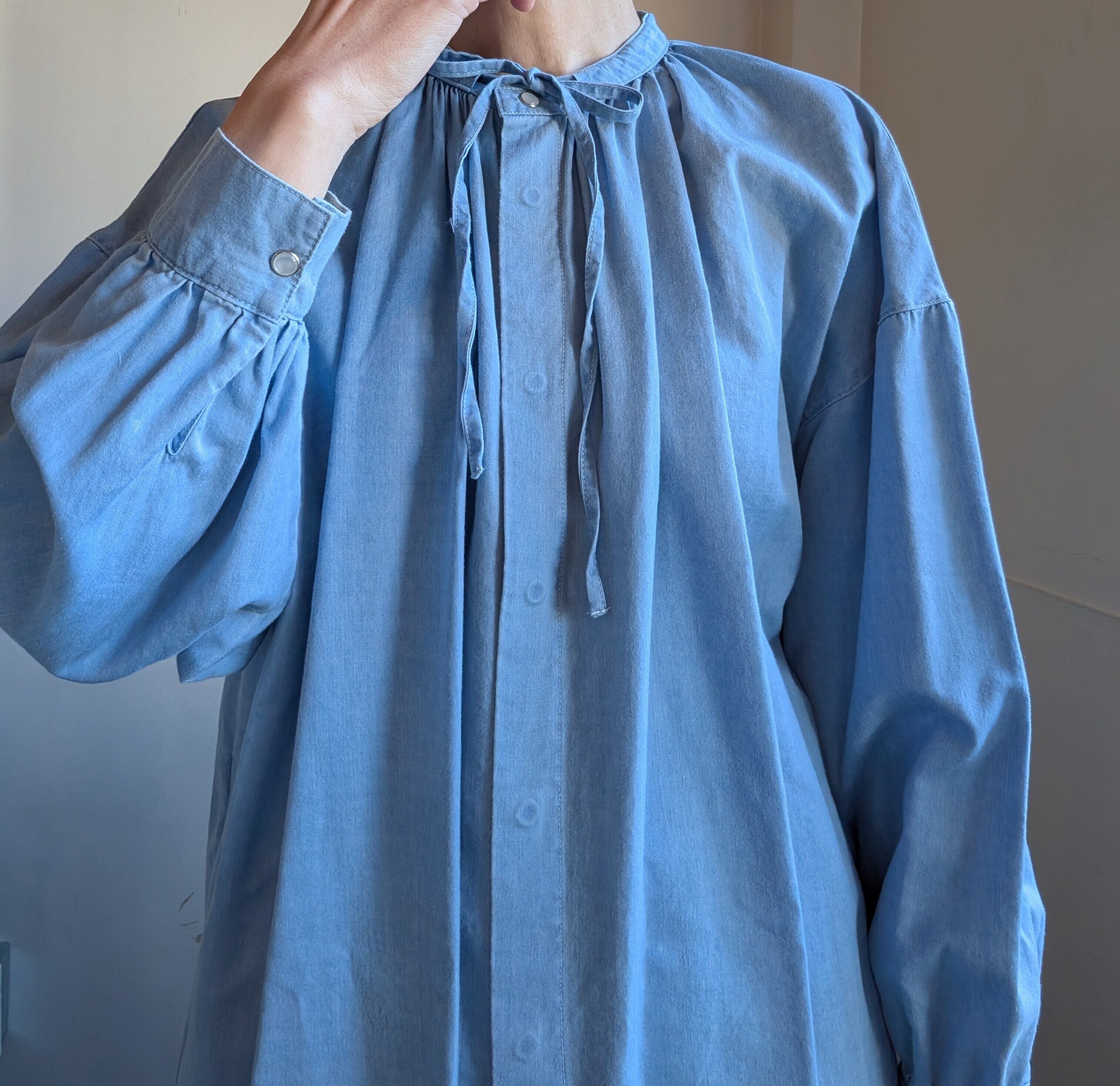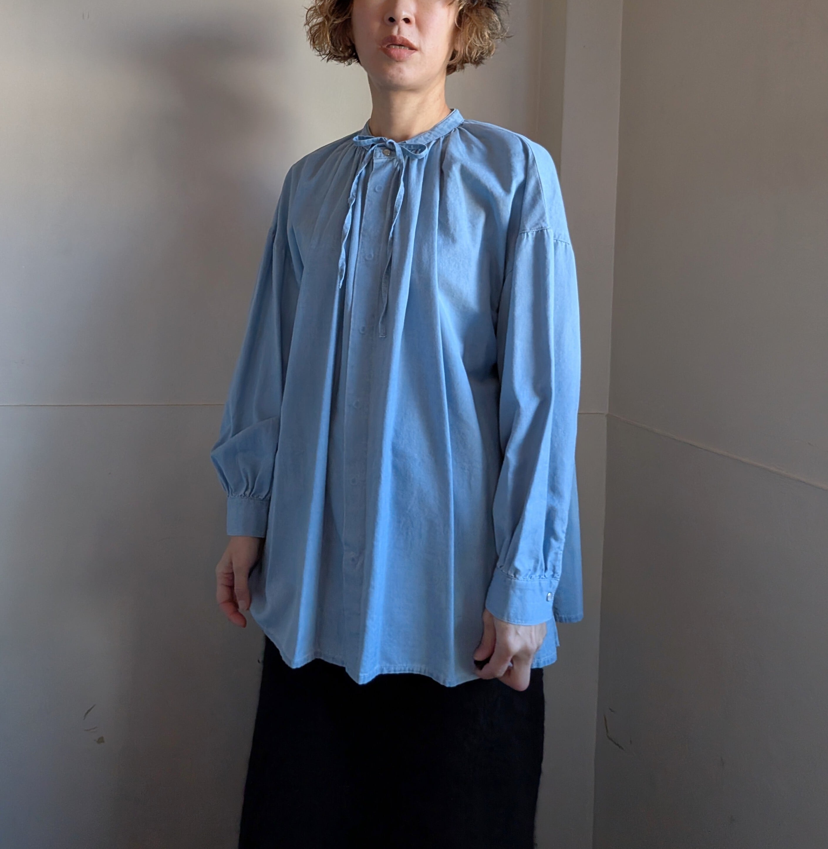 リボン付きダンガリーシャツ / ブリーチ