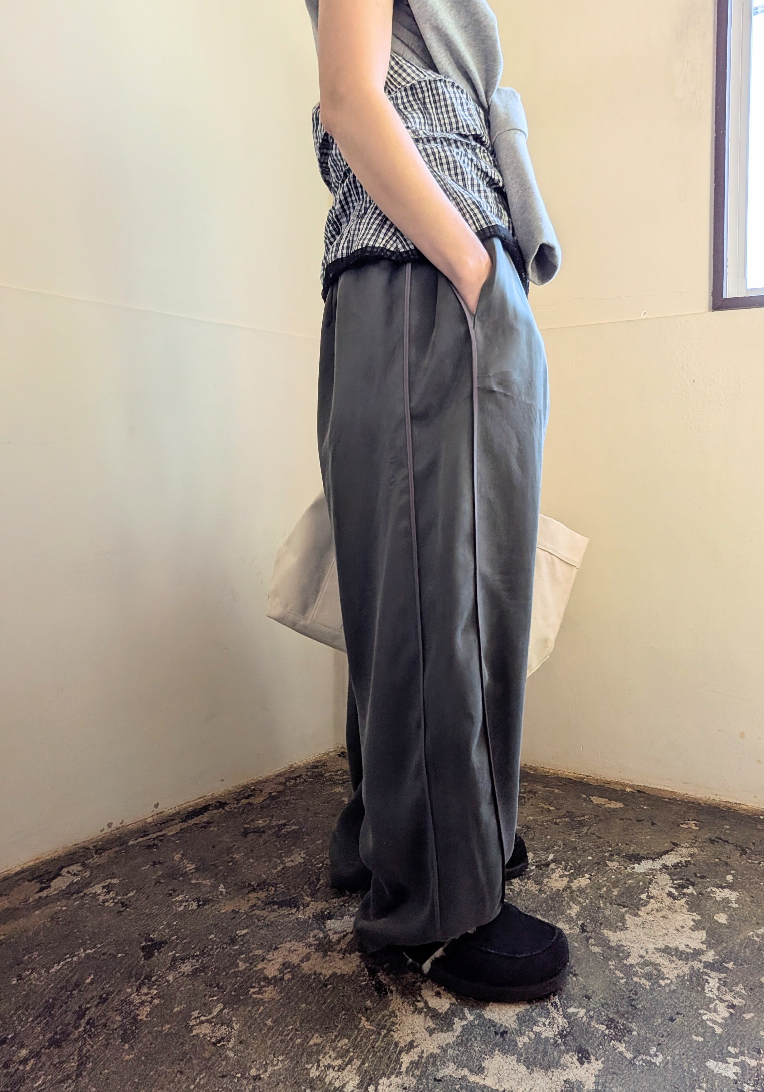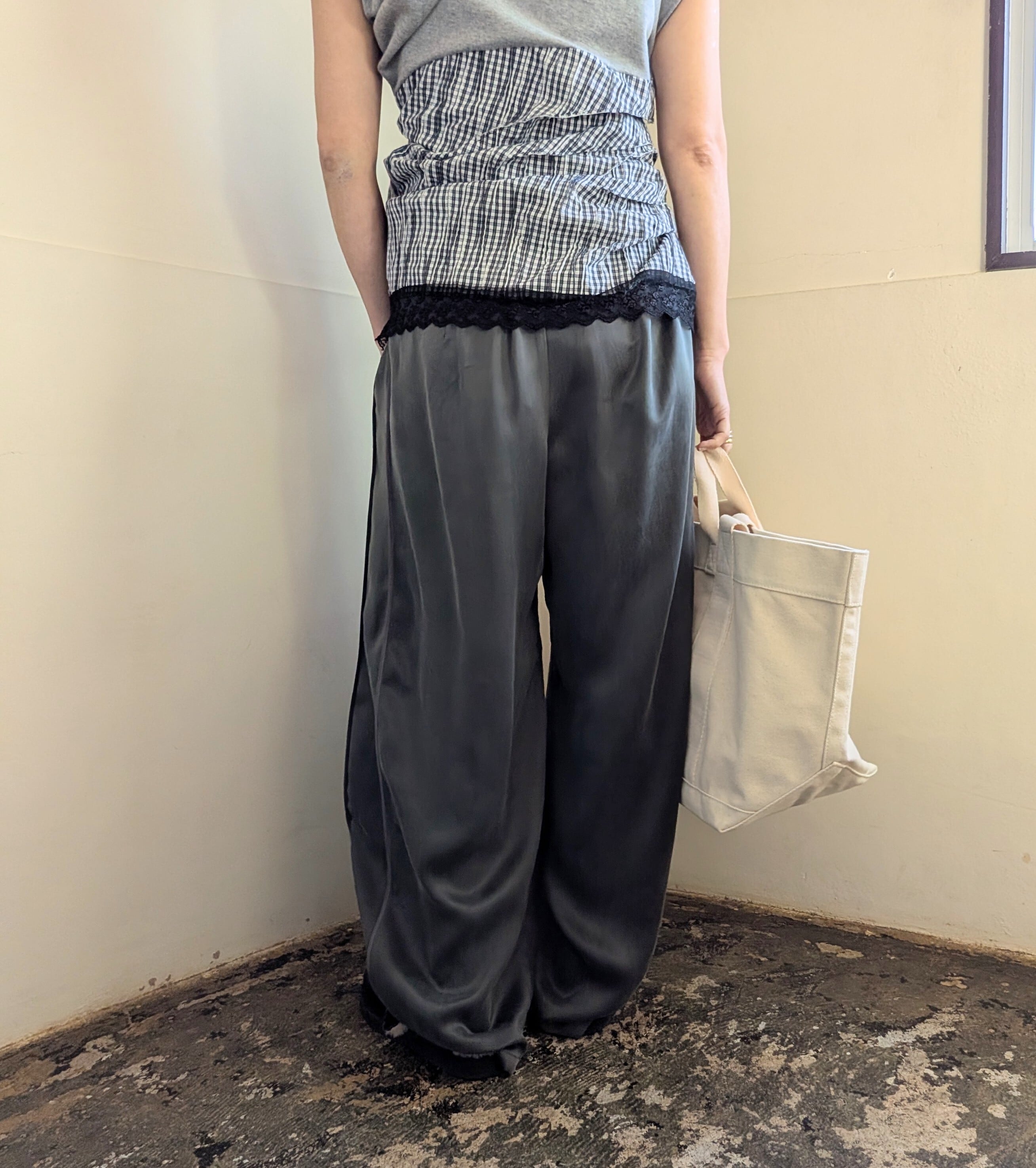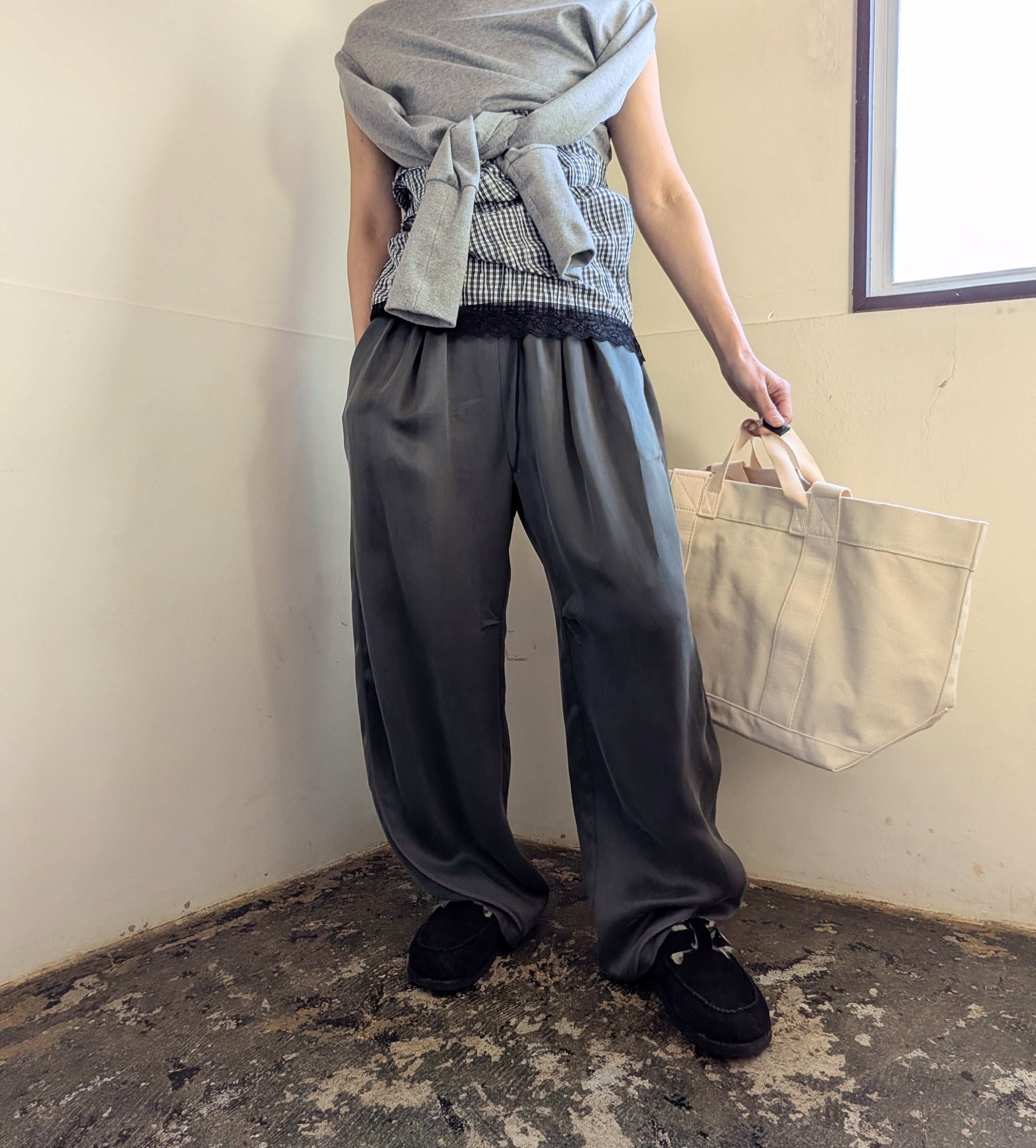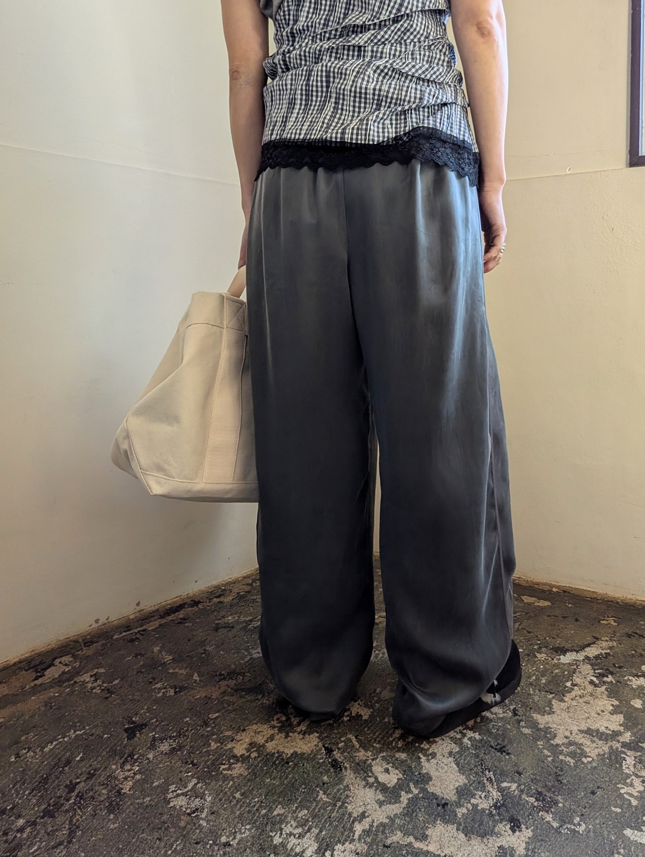 キュプラ素材のイージーパンツが