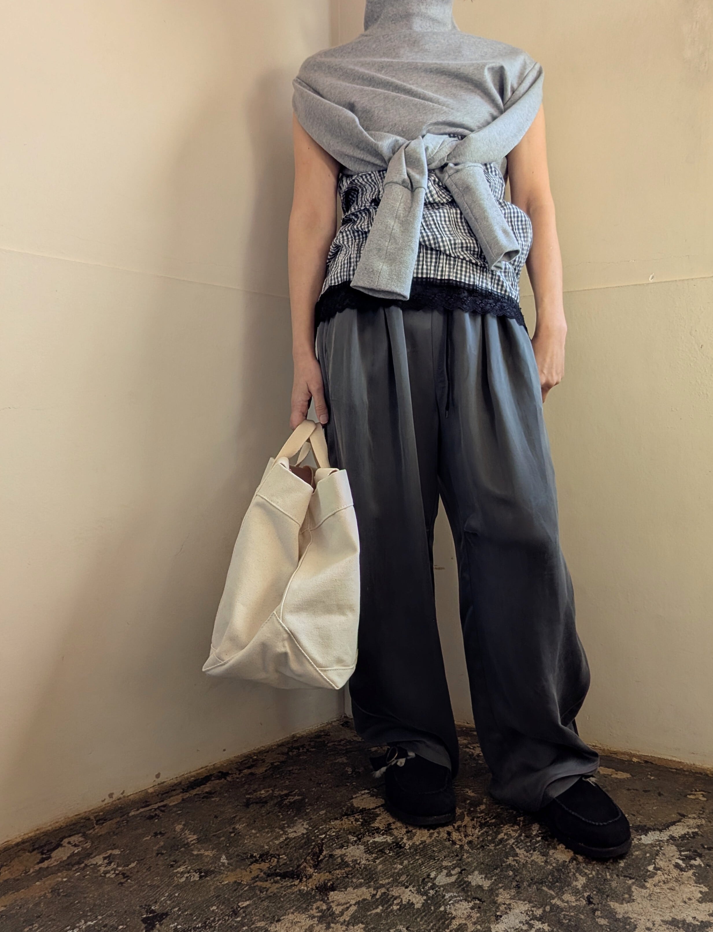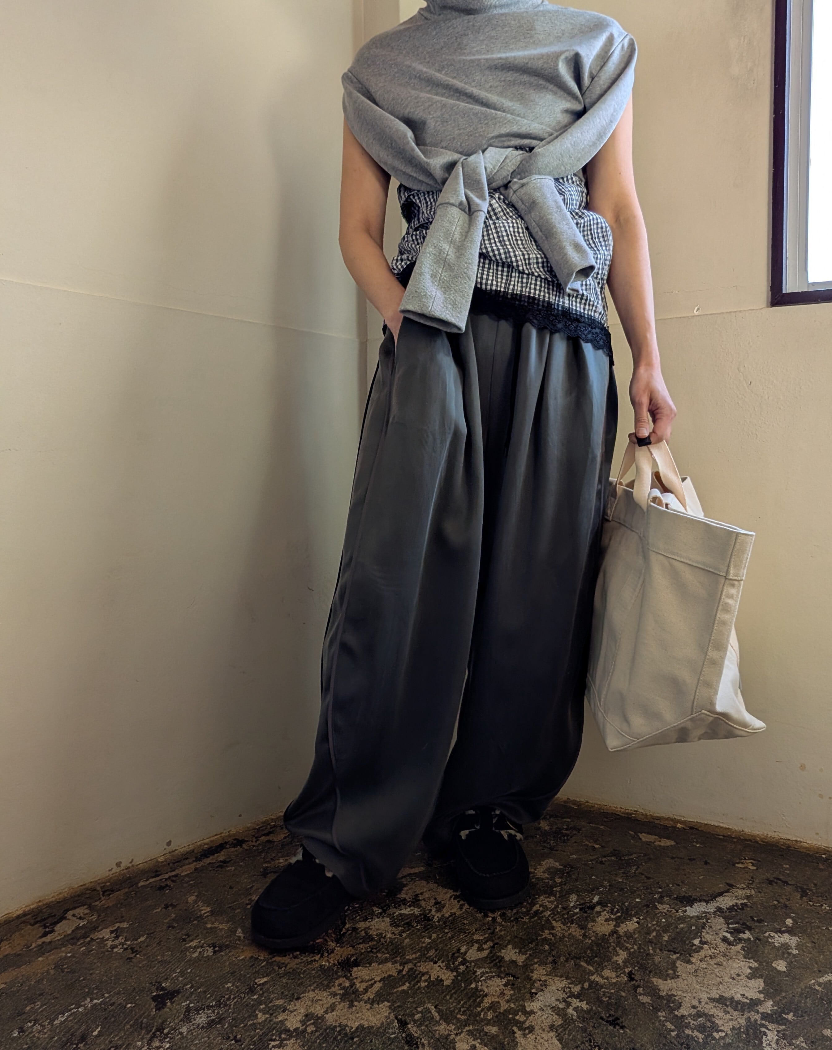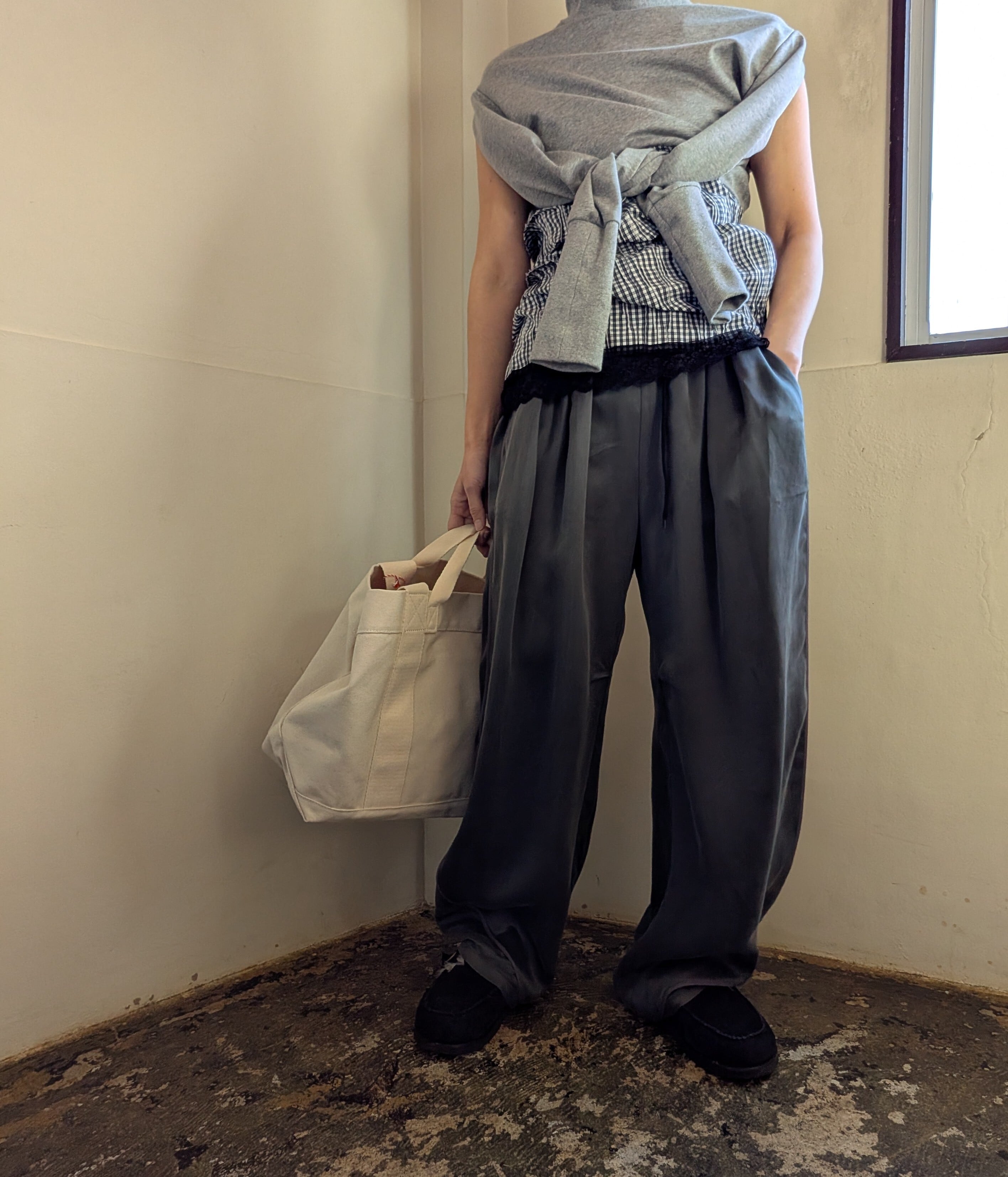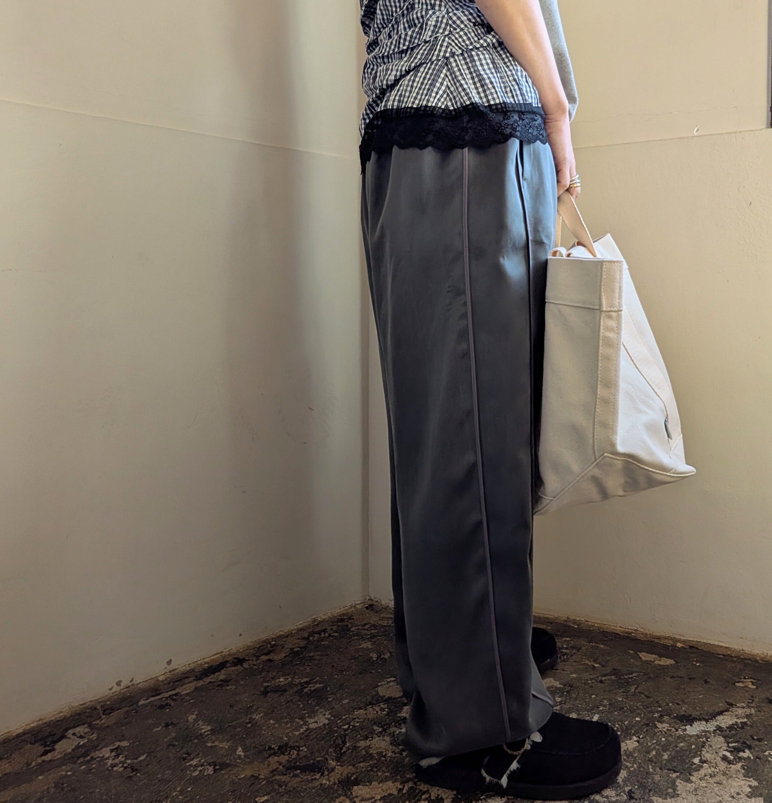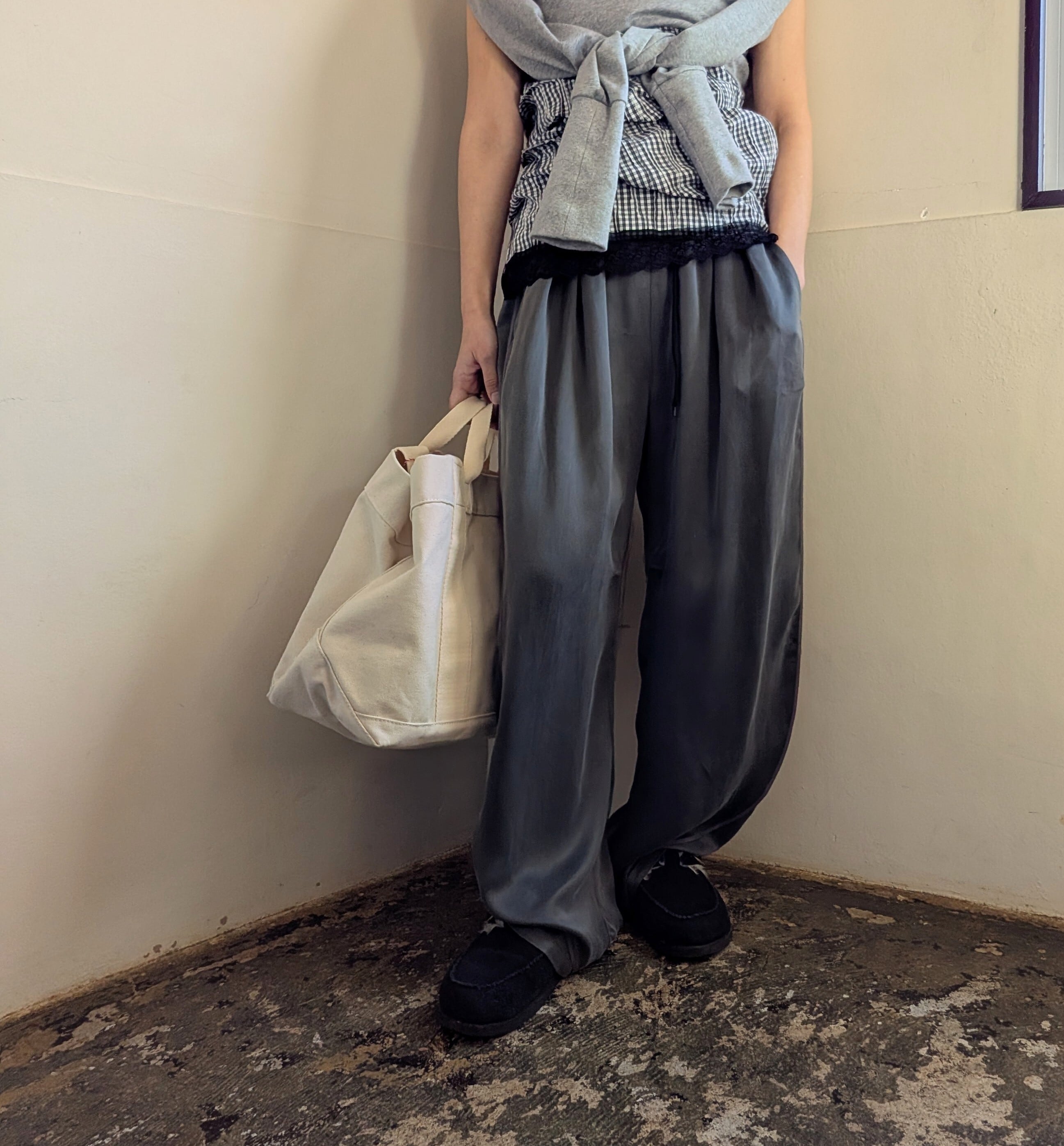 キュプラ素材のイージーパンツが
