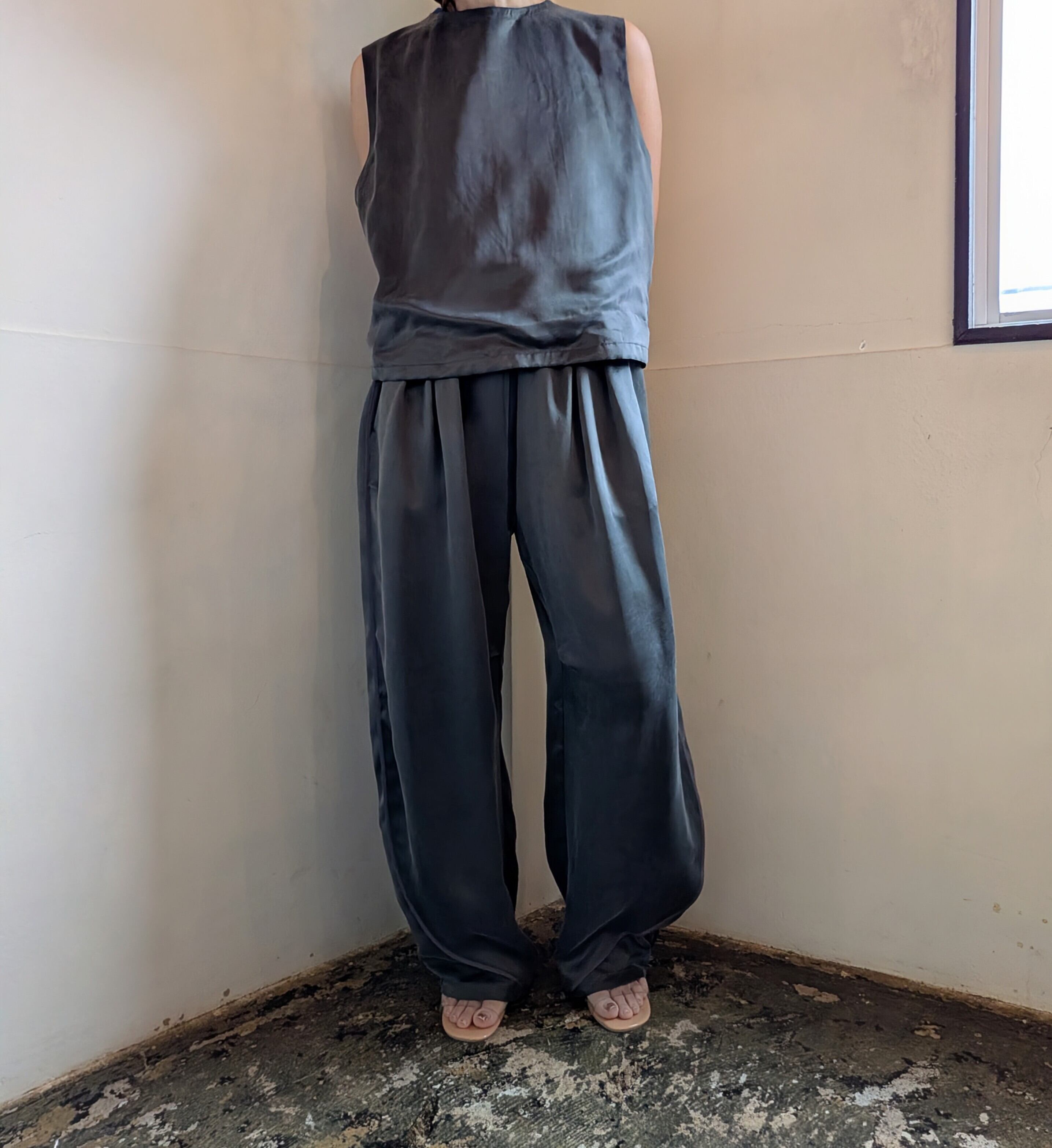 同素材のパンツとセットアップでも