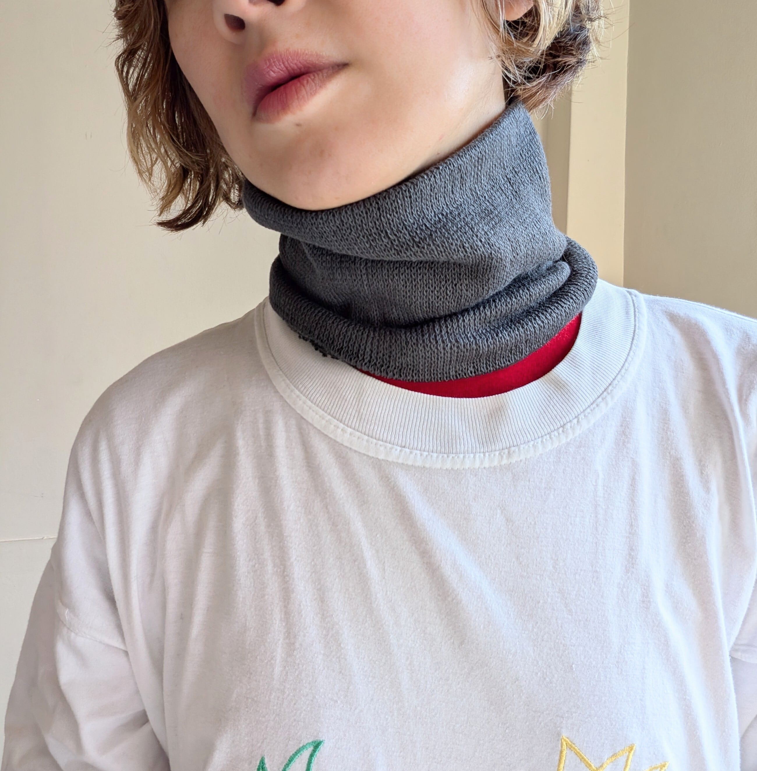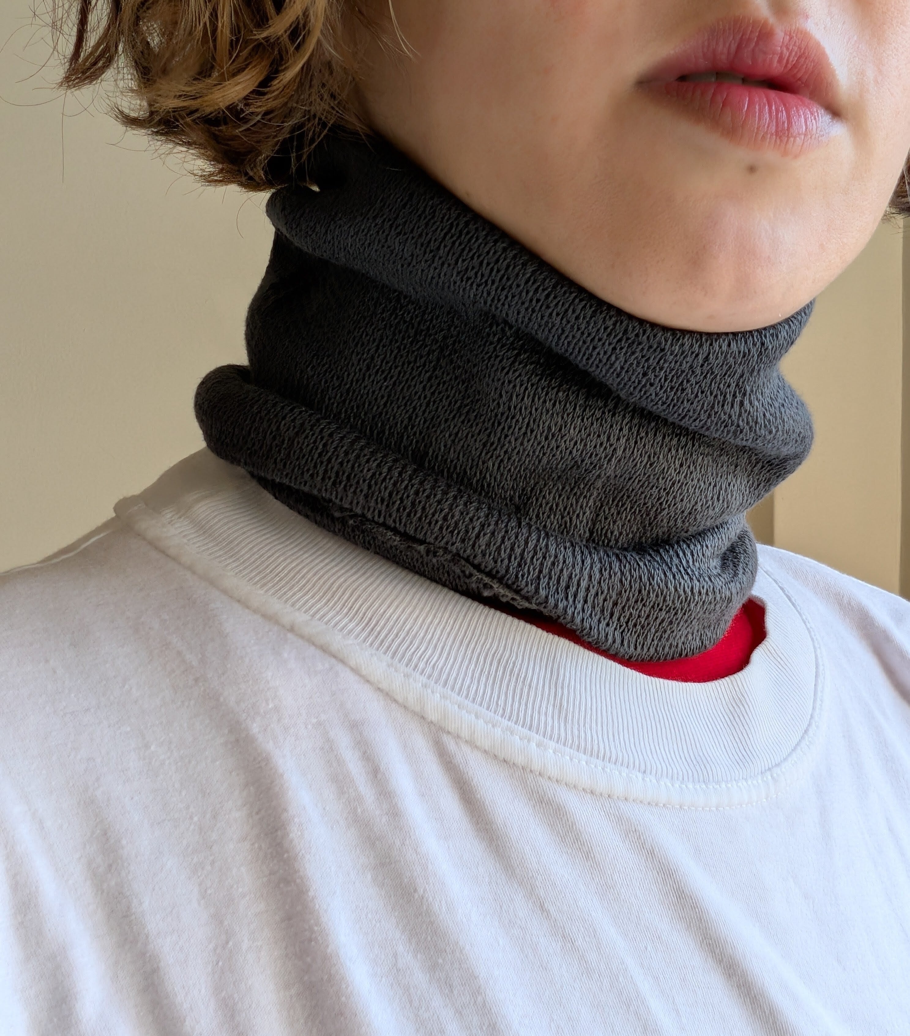 靴下編機から作られたネックバンド兼