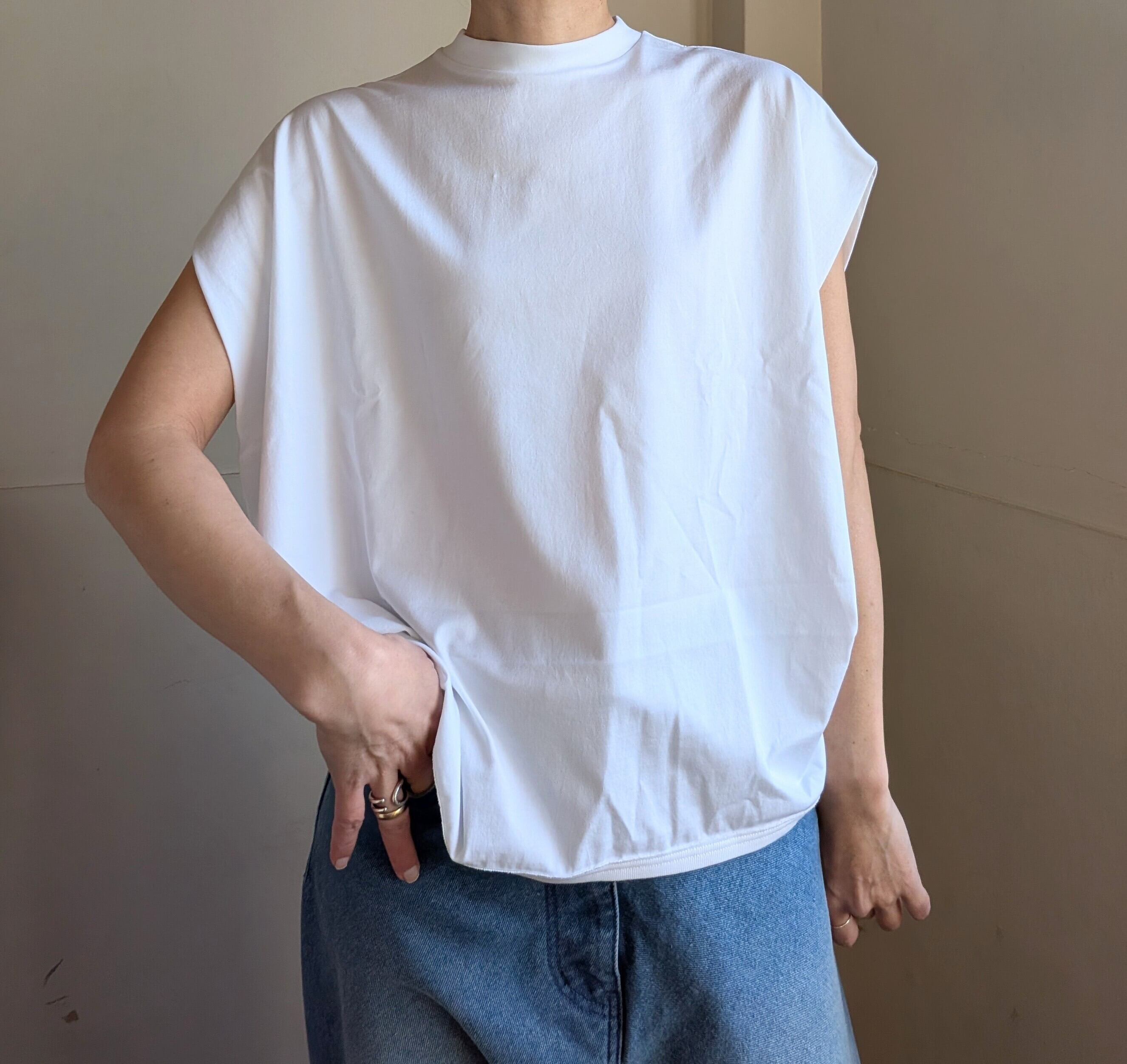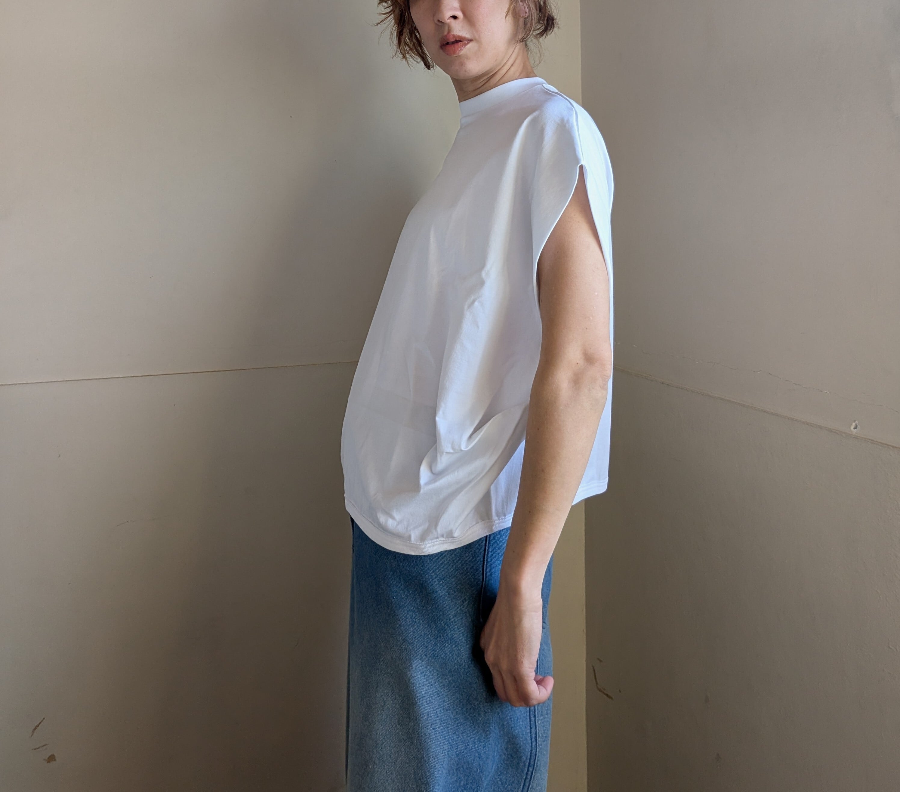 [ oto ]オト / スーピマコットンノースリーブトップス / White