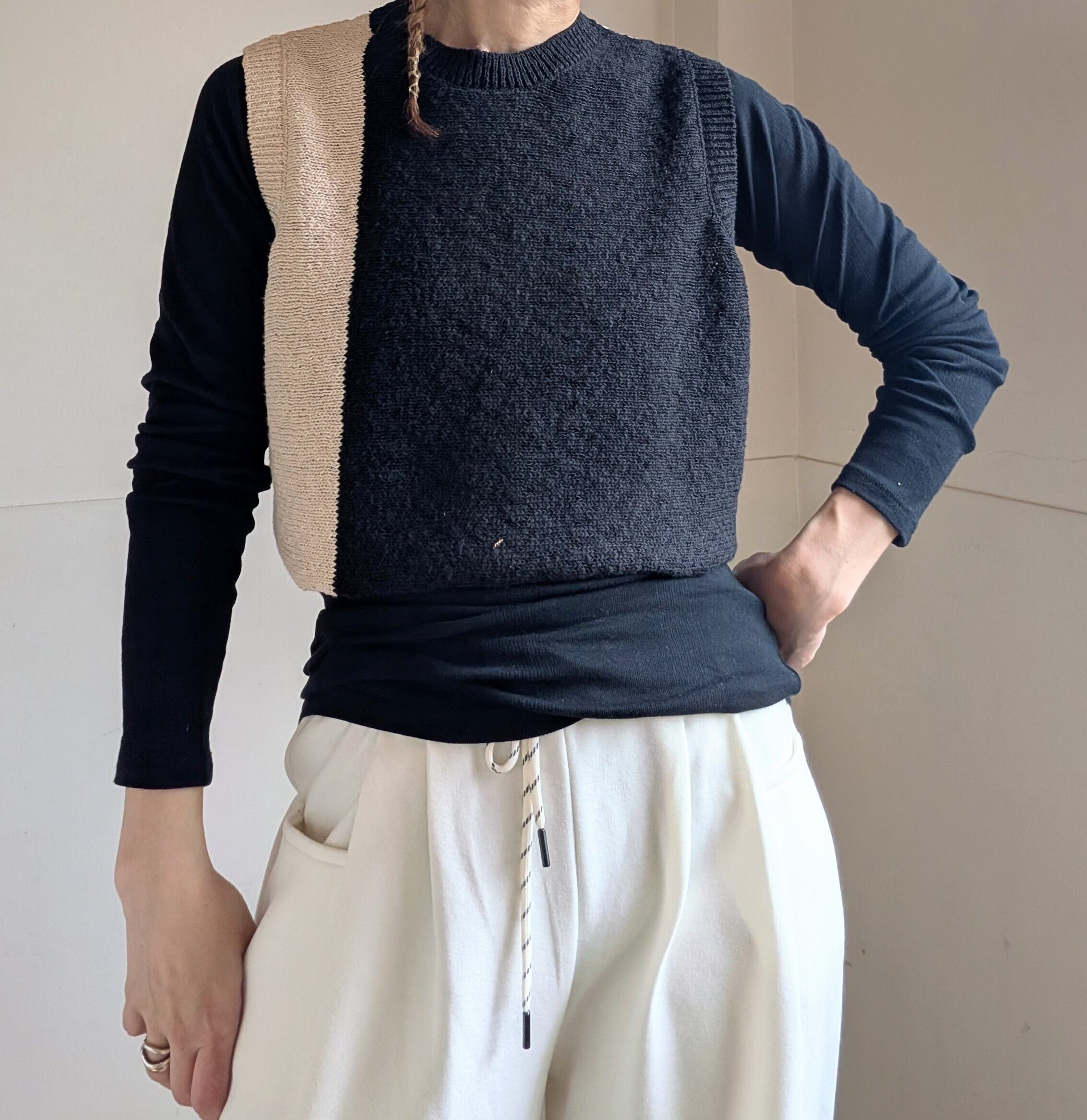 [ 1 001 ]イチゼロゼロイチ / COTTON KNIT VEST / IVORYBLACK