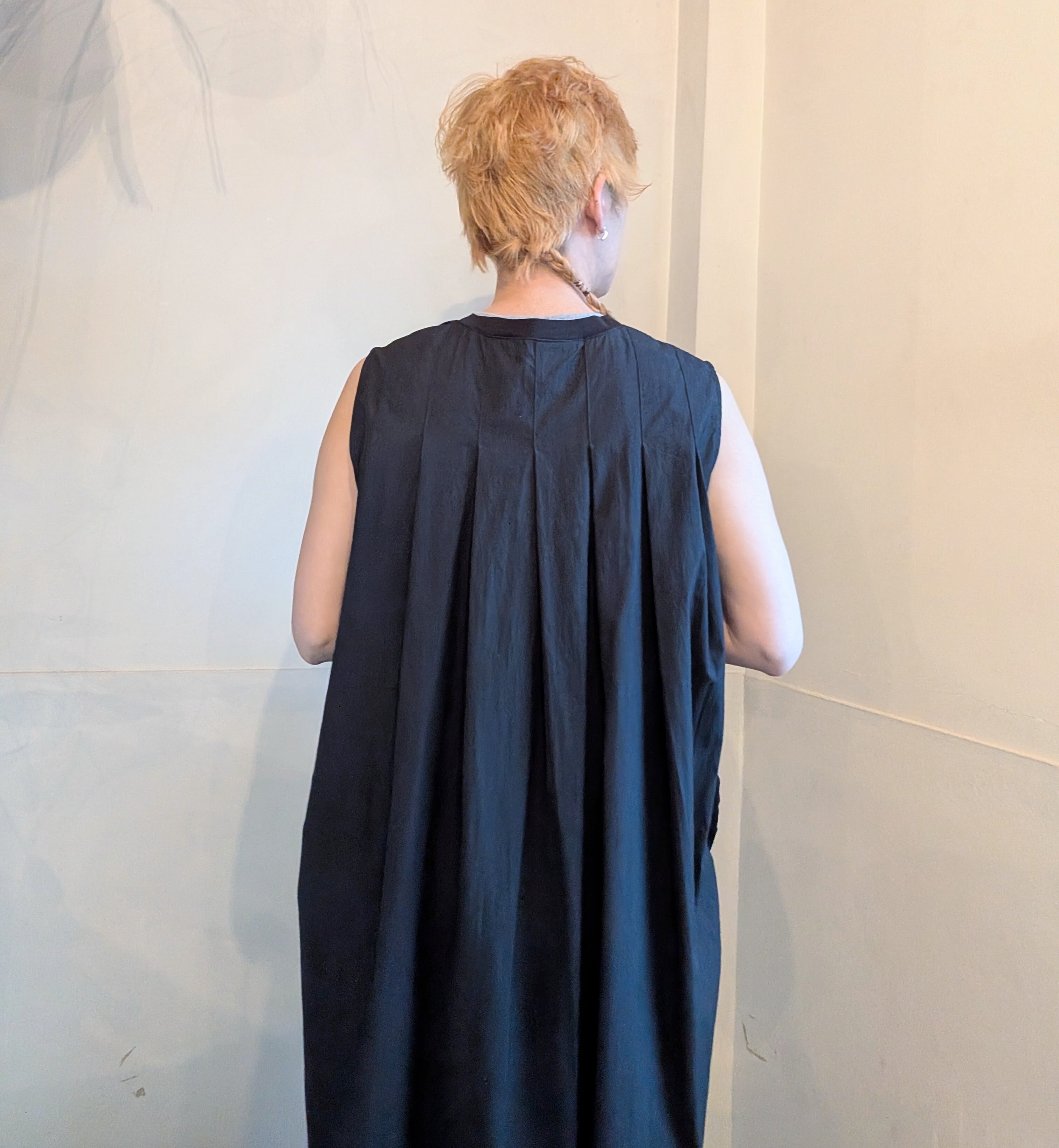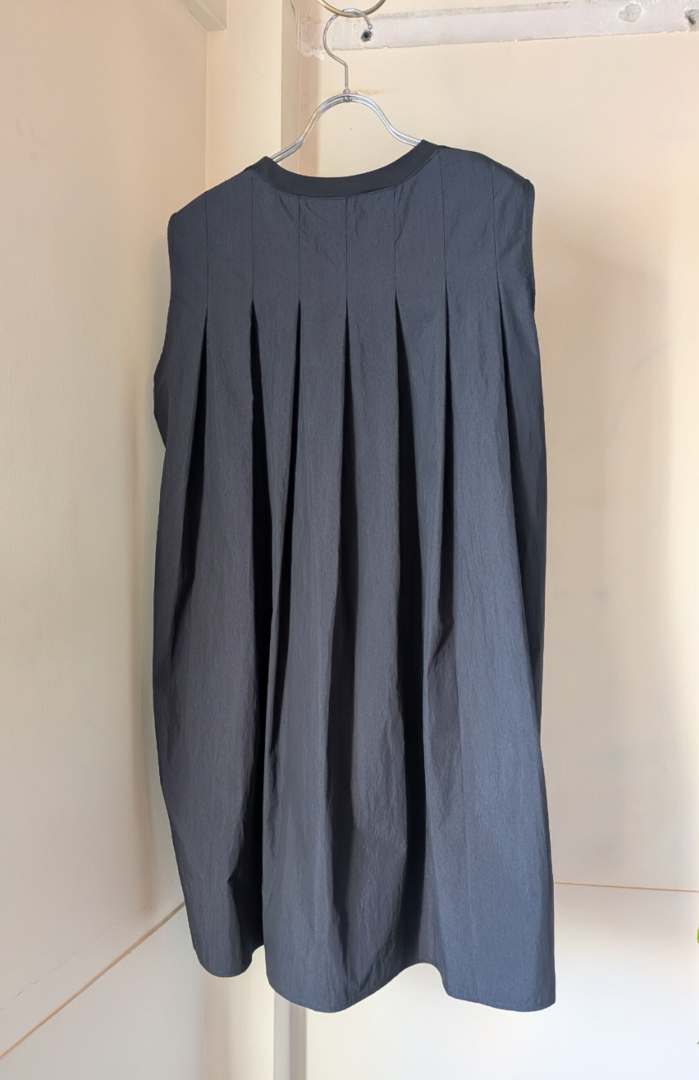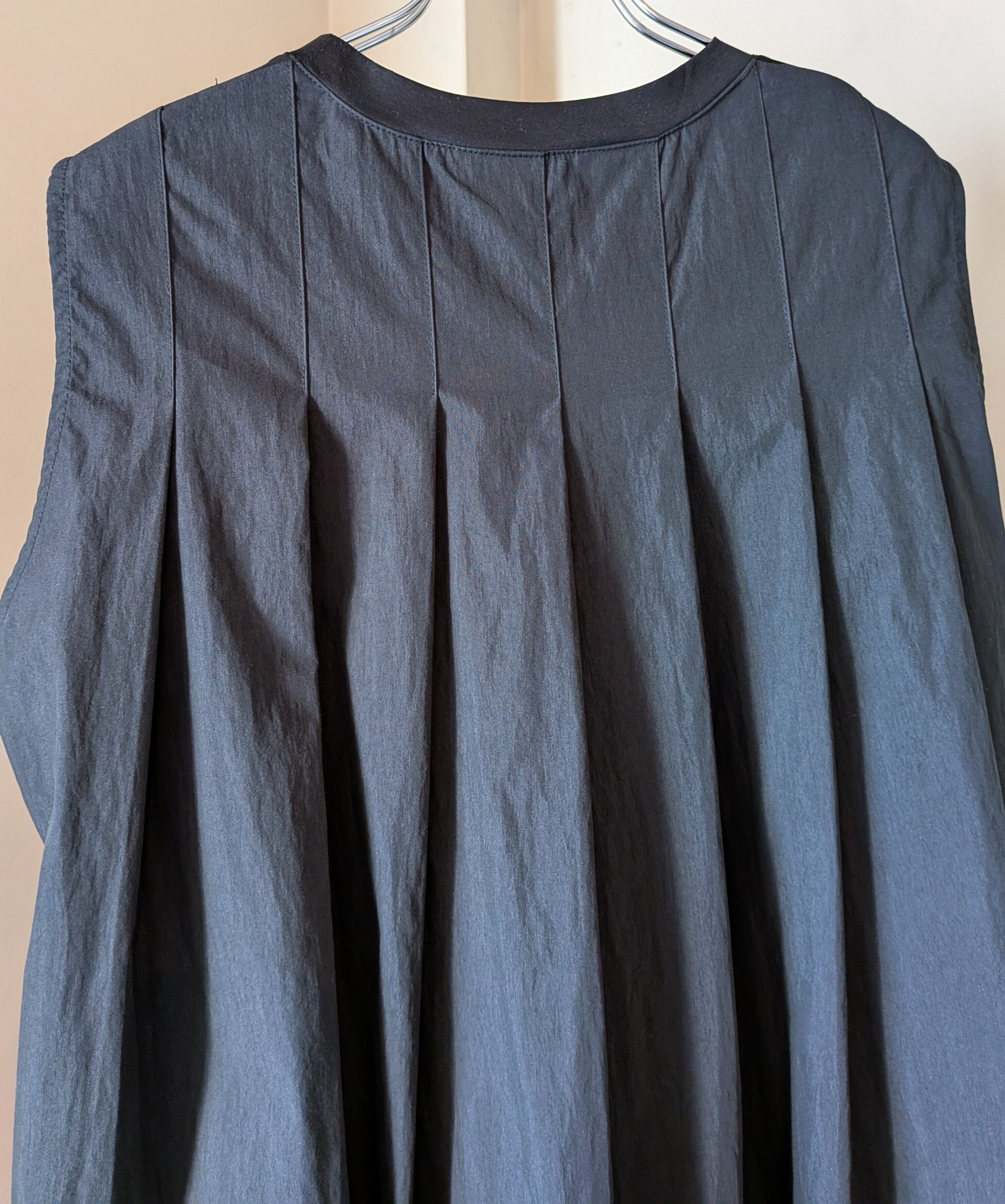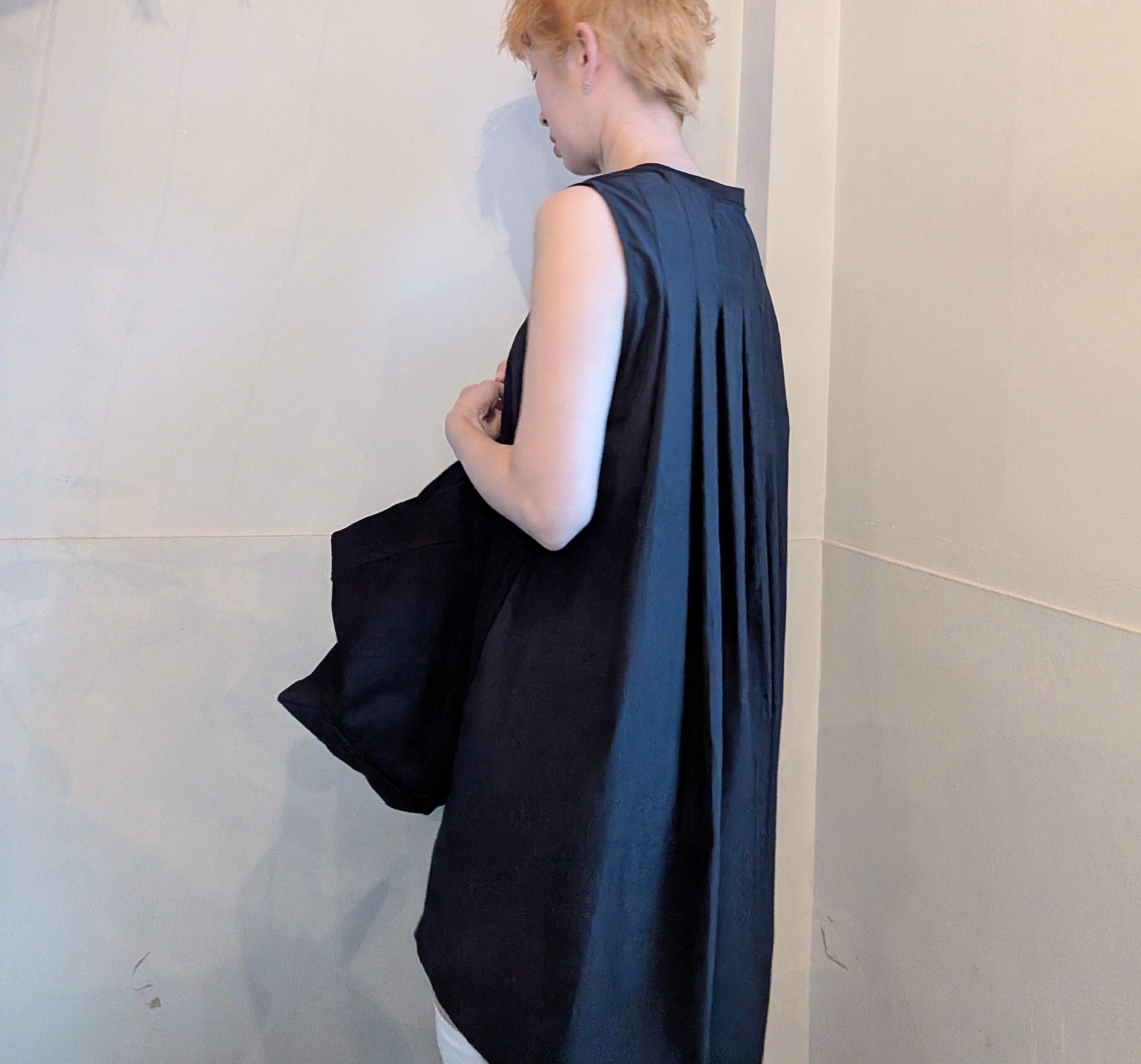 後ろのタックから作られるプリーツデザインも