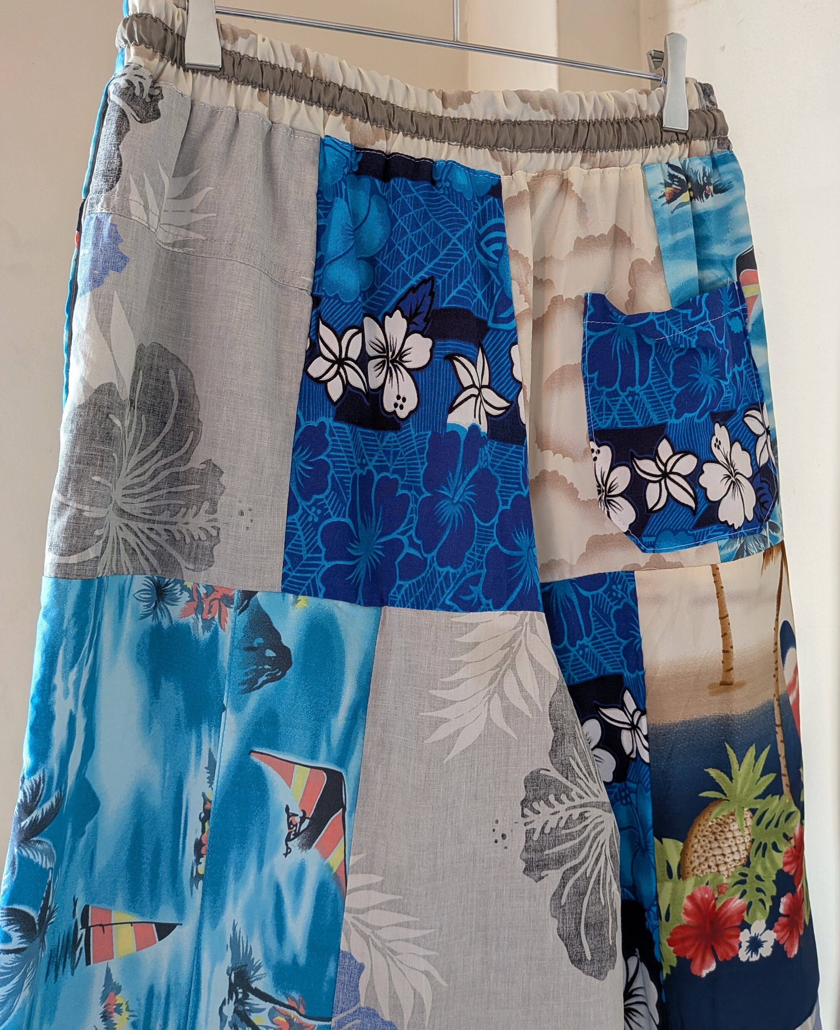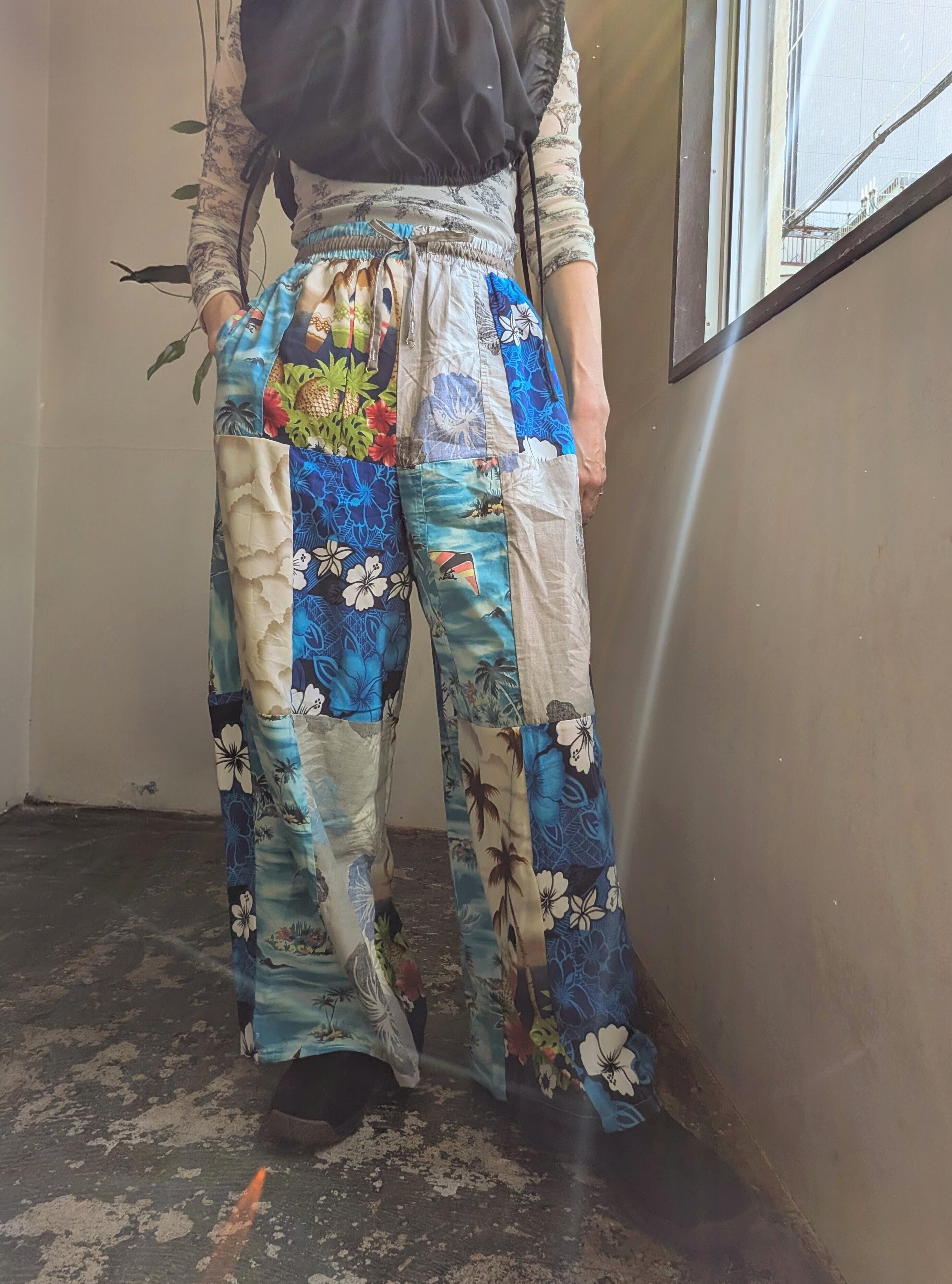 [ REHERSALL ]リハーズオール / リメイク一点物 / アロハパッチワイドパンツ