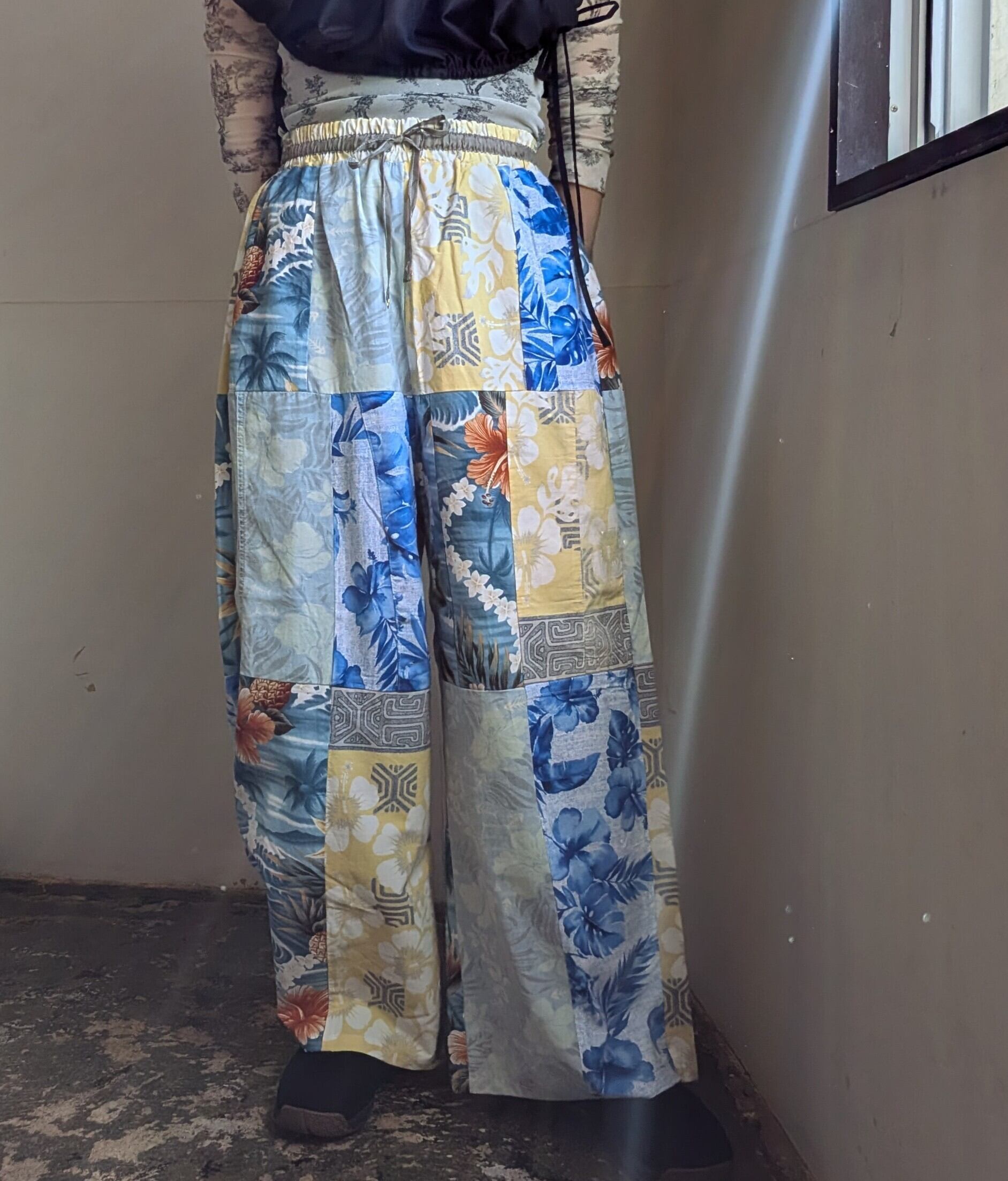 [ REHERSALL ]リハーズオール / リメイク一点物 / アロハパッチワイドパンツ