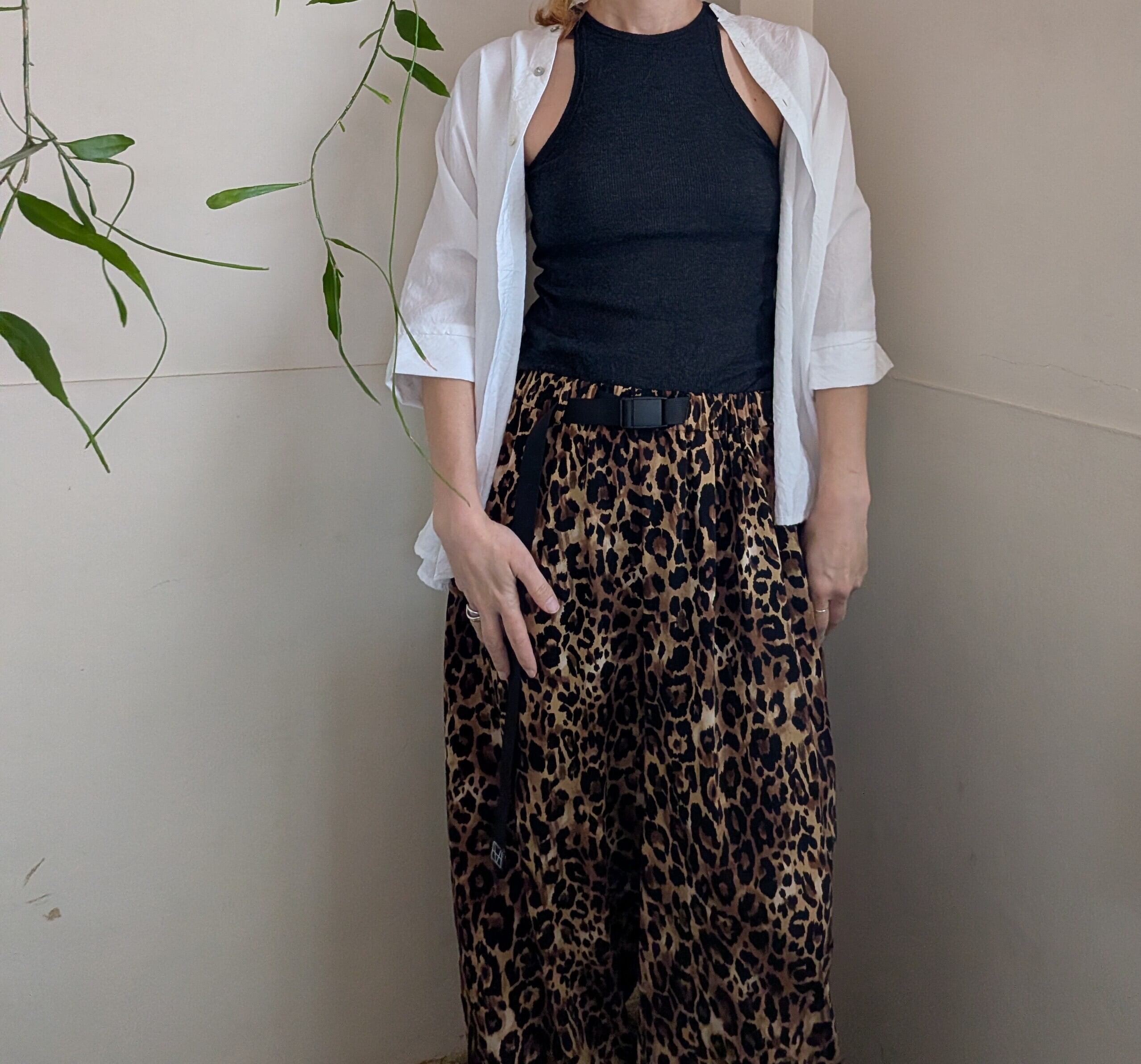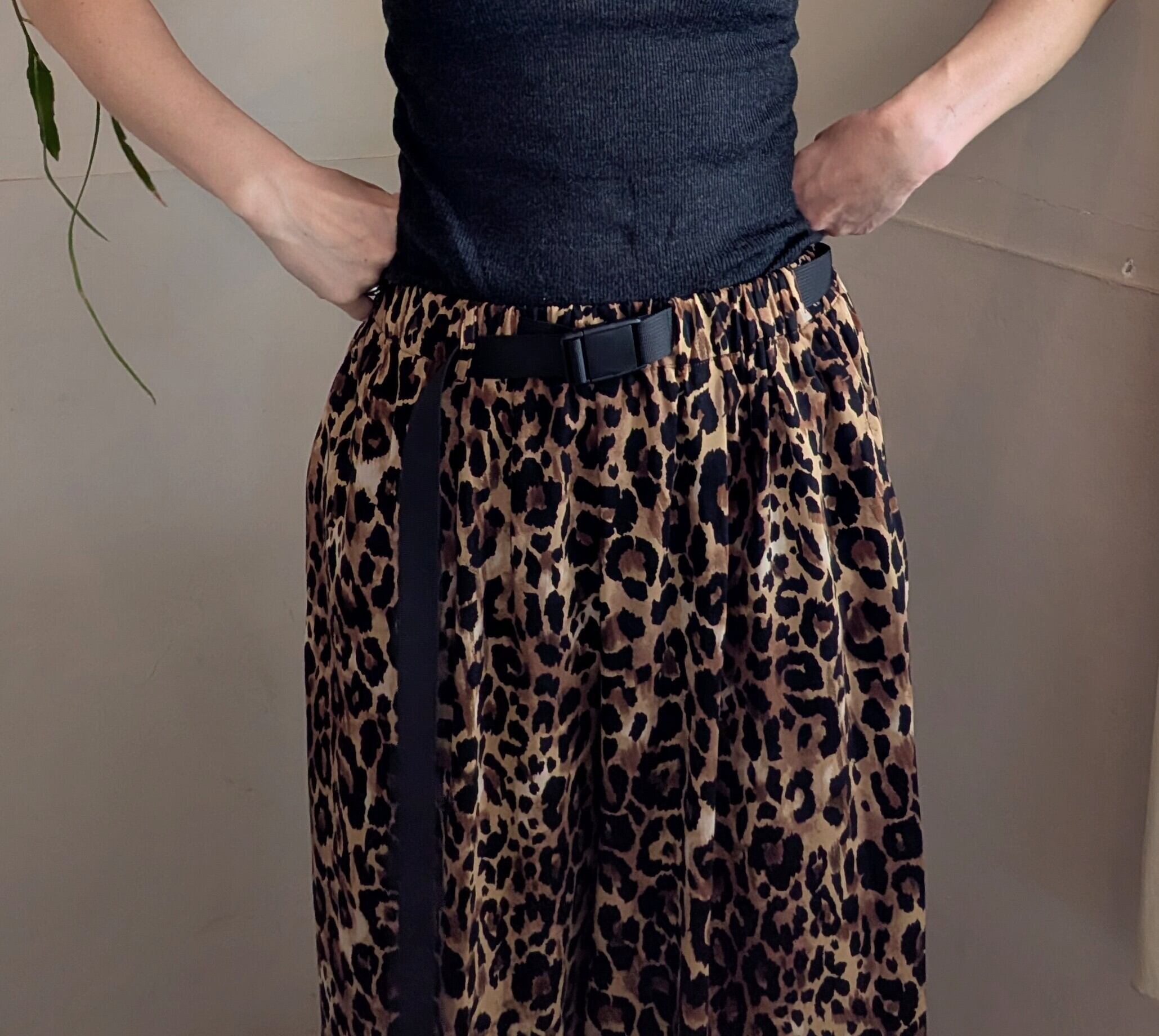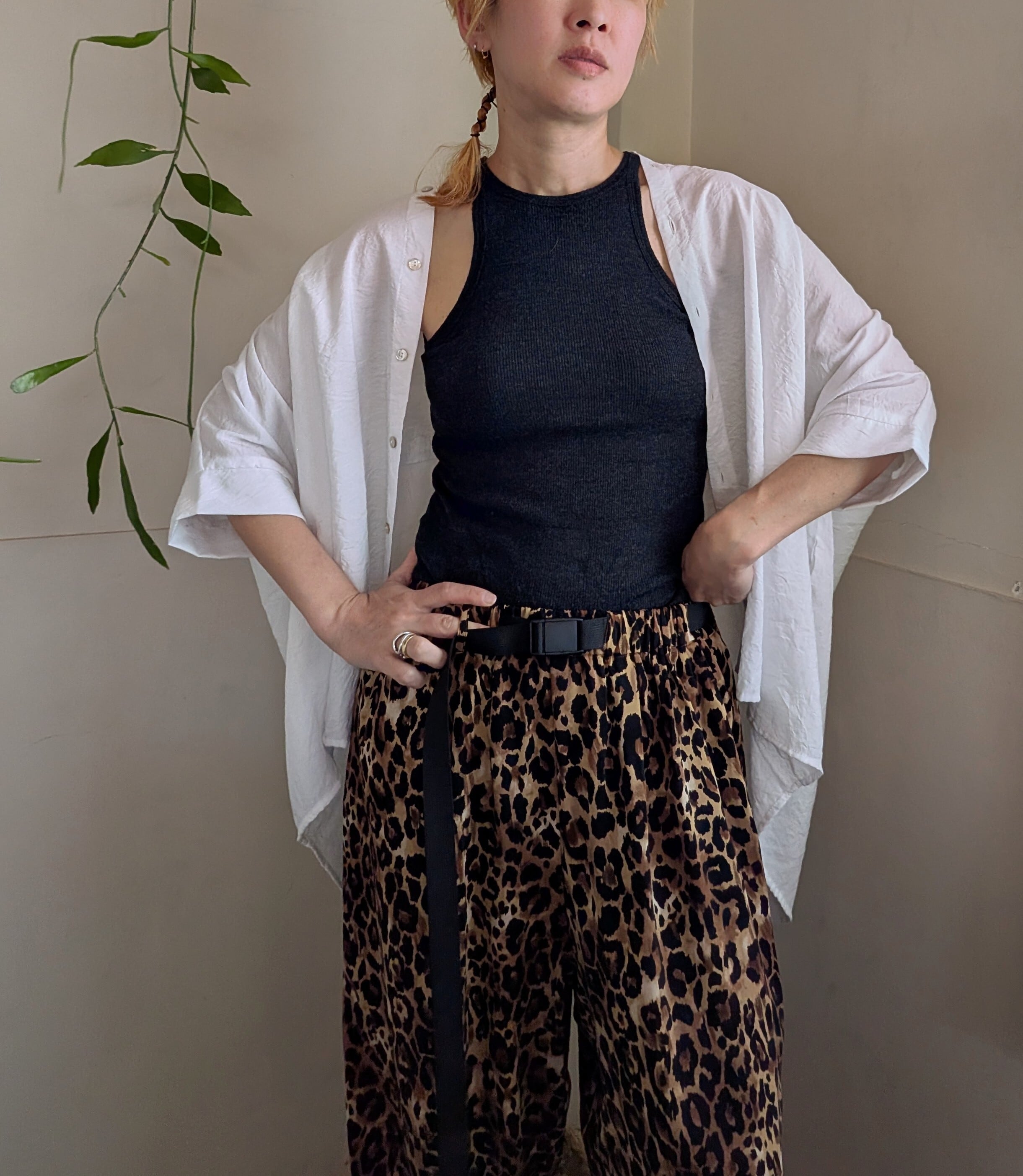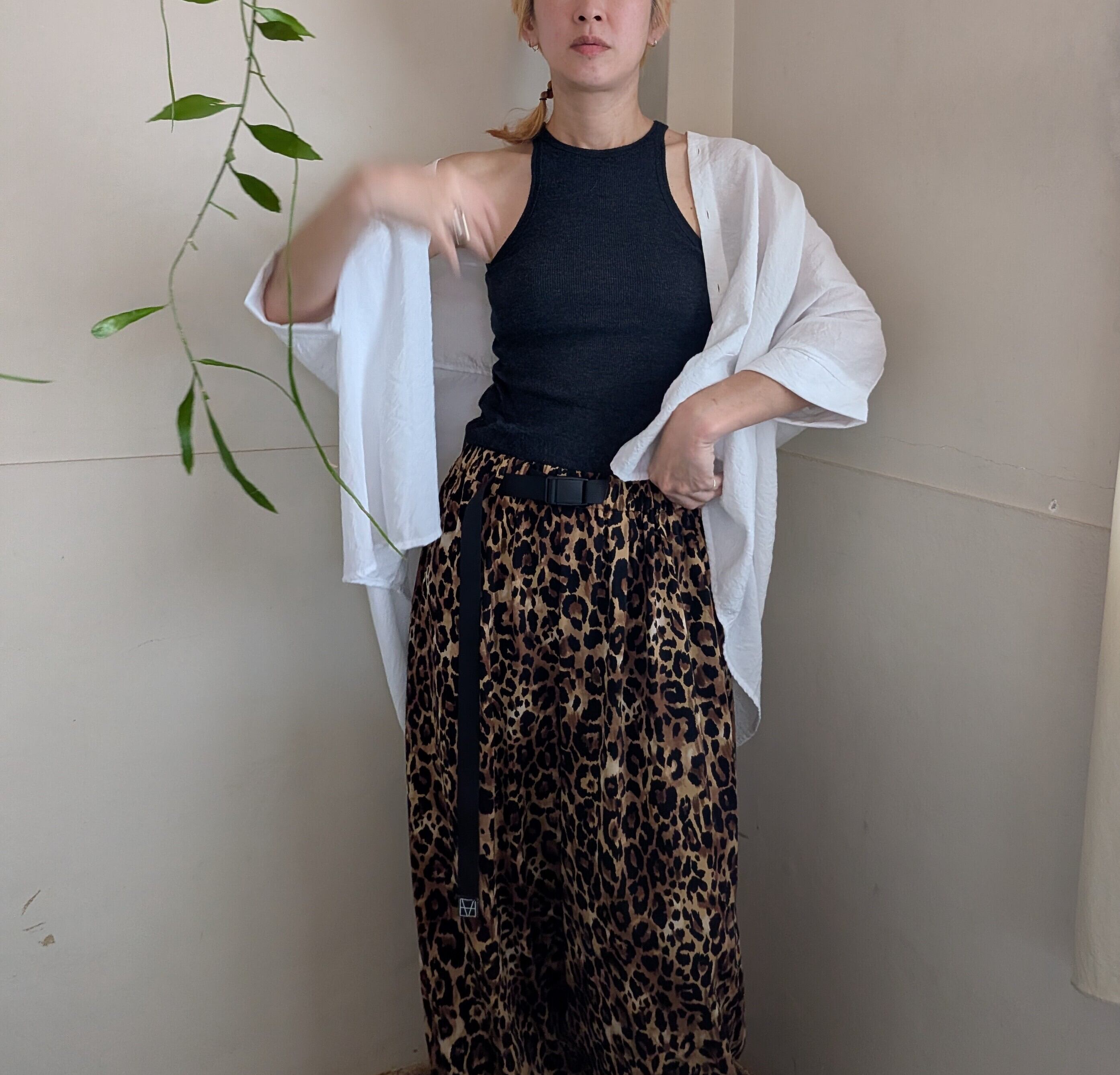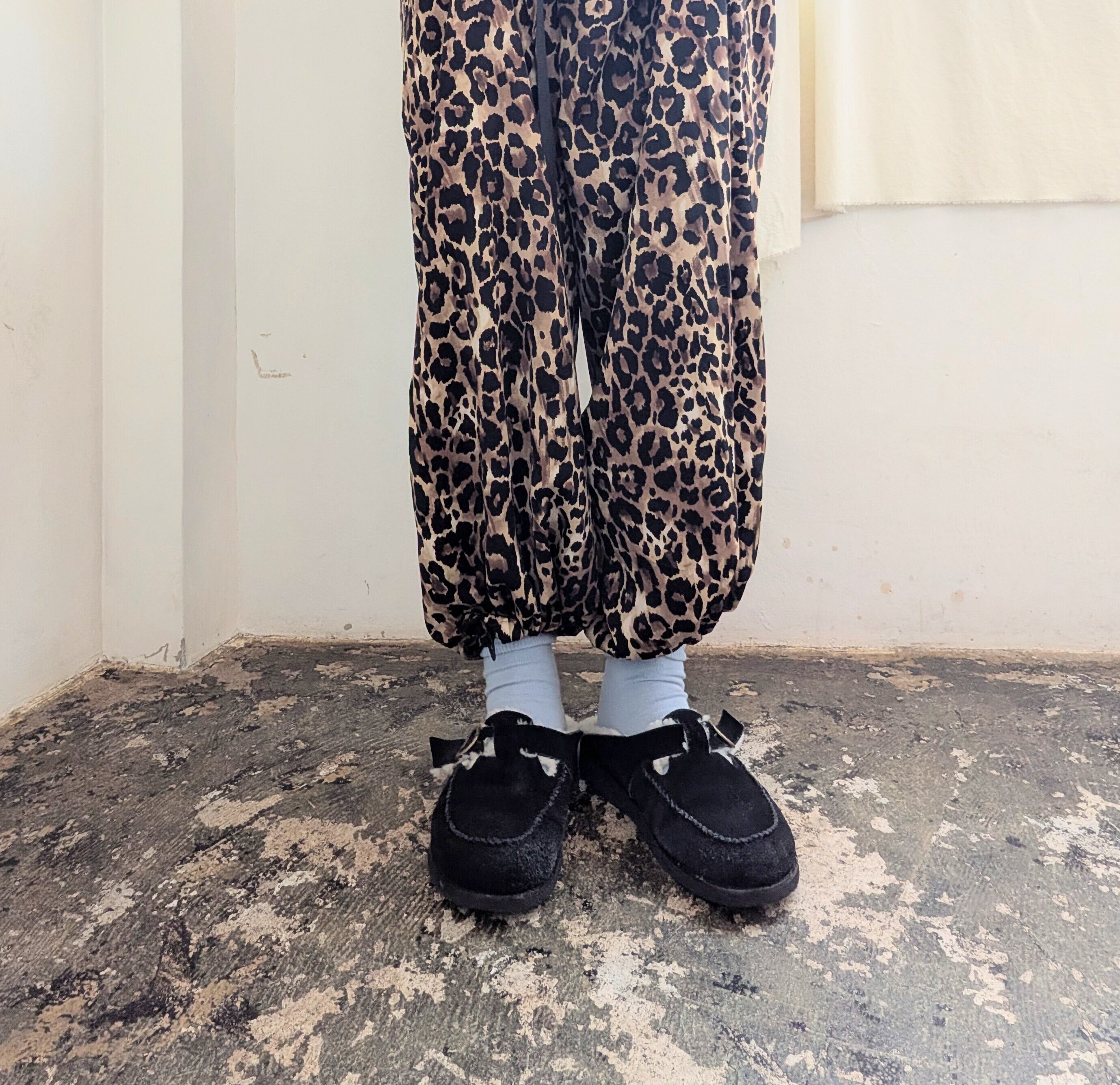 [ M53. ]エムゴーサン / BELTED LEOPARD PANTS / BROWN